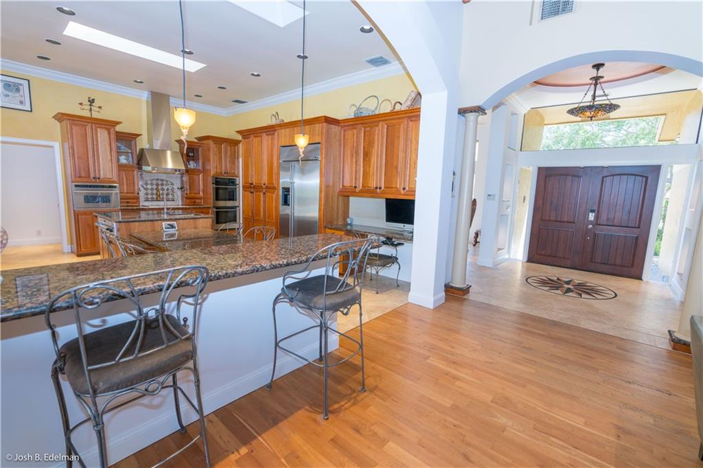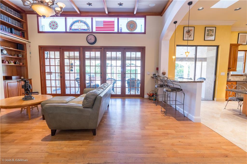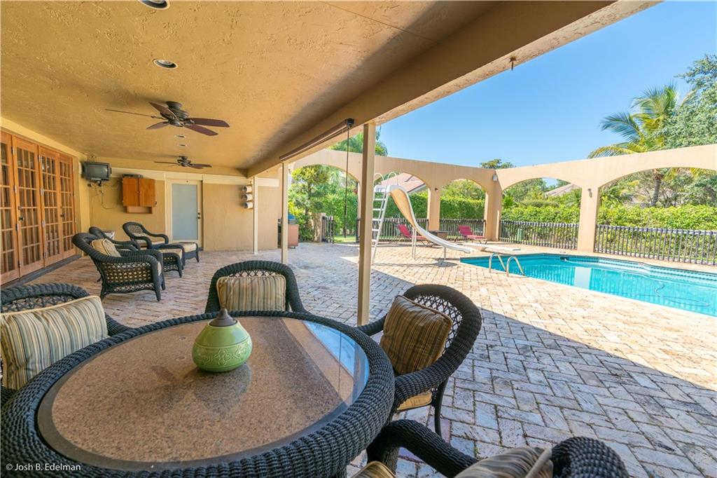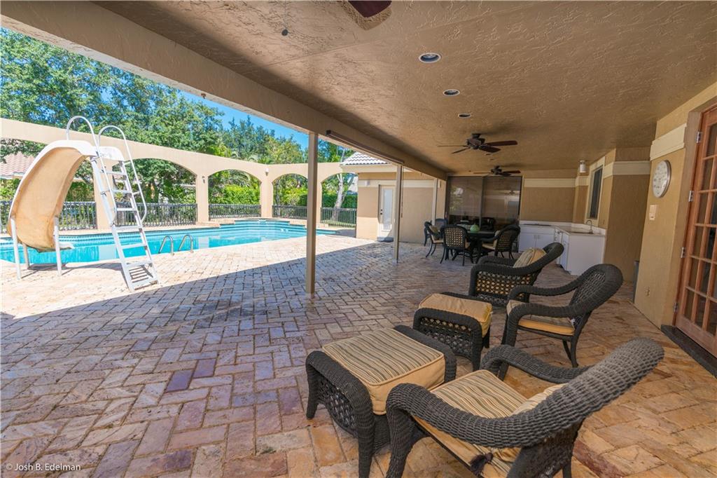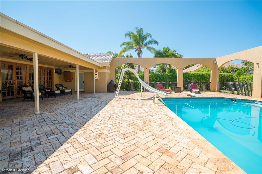 Welcome HOME to Eagle Trace Country Club (non-equity community). Stunning pool home in the desirable custom Estates section ~ over 4700 square feet featuring marble flooring with inlays & hardwood floors. Luxury Master suite complete with custom closet & dressing room complete with wine/coffee bar. One story design with split bedroom plan affords privacy & access for all ages. Gourmet Kitchen with 36" cooktop, Viking food warmer, dual wall ovens, breakfast bar & eat-in kitchen. Entertaining patio is spacious & perfect for any party & BBQ (large roofed area so you can use it even during rain showers; tropical swimming pool & sliding board is sure to make Florida summers more enjoyable! Many custom built-ins: family room bookcases, dining room wine closet/cellar & more! Must see!