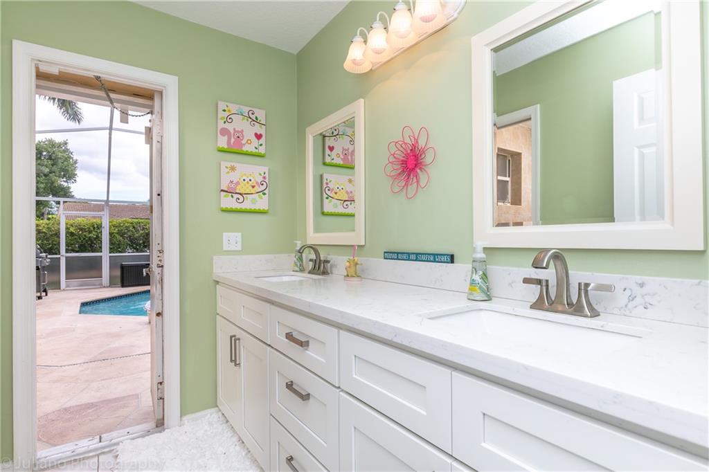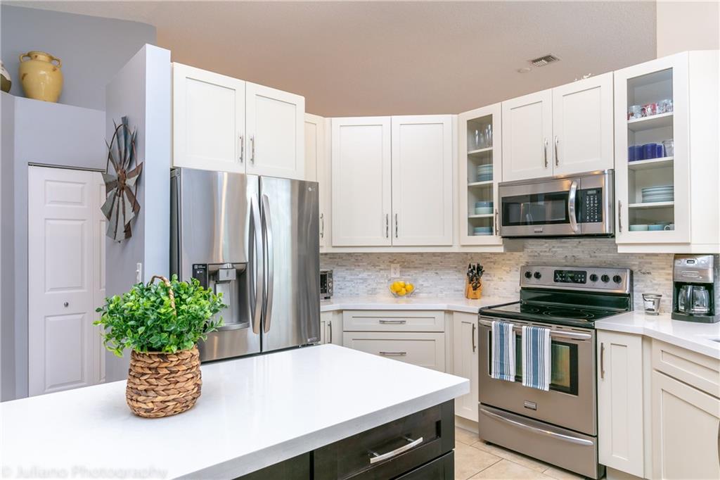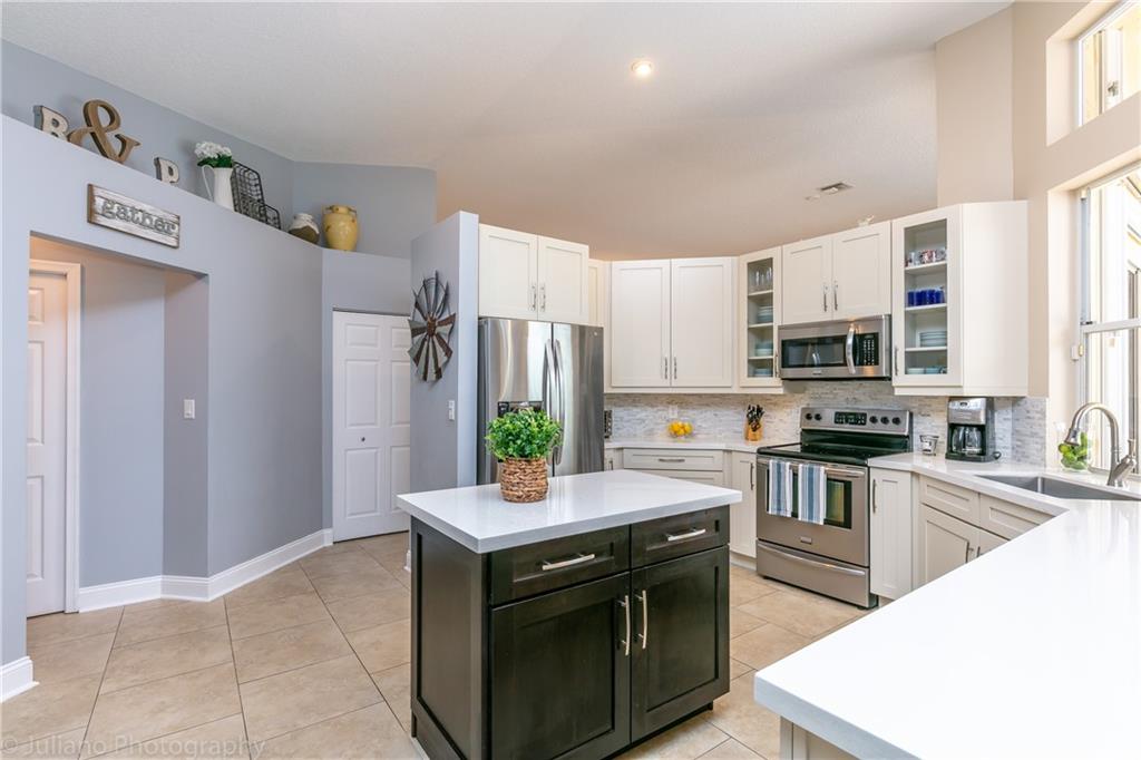 NEW ROOF MAY 2019! COMPLETELY REMODELED KITCHEN! .24 ACRE PRIVATE CORNER LOT LOCATED IN A CUL DE SAC! PLENTY OF PARKING ON YOUR CIRCULAR DRIVEWAY! From the moment you enter you will be greeted w/ the volume ceilings throughout the living area. Large open kitchen completely remodeled in 2015 w/ all new soft close cabinets, quartz countertops, stainless steel appliances, Calcutta marble backsplash. Put the swim trunks on & enjoy the summer in your private screened in pool w/ large covered patio area. New pool heater installed May 2019. The 2nd bathroom has been remodeled w/ new cabinetry, quartz countertops, sinks, & fixtures. Other features include A/C 2016, water heater 2019, new Eurotile patio deck, crown molding, wainscoting & accordion hurricane shutters. Don't miss out on this one!