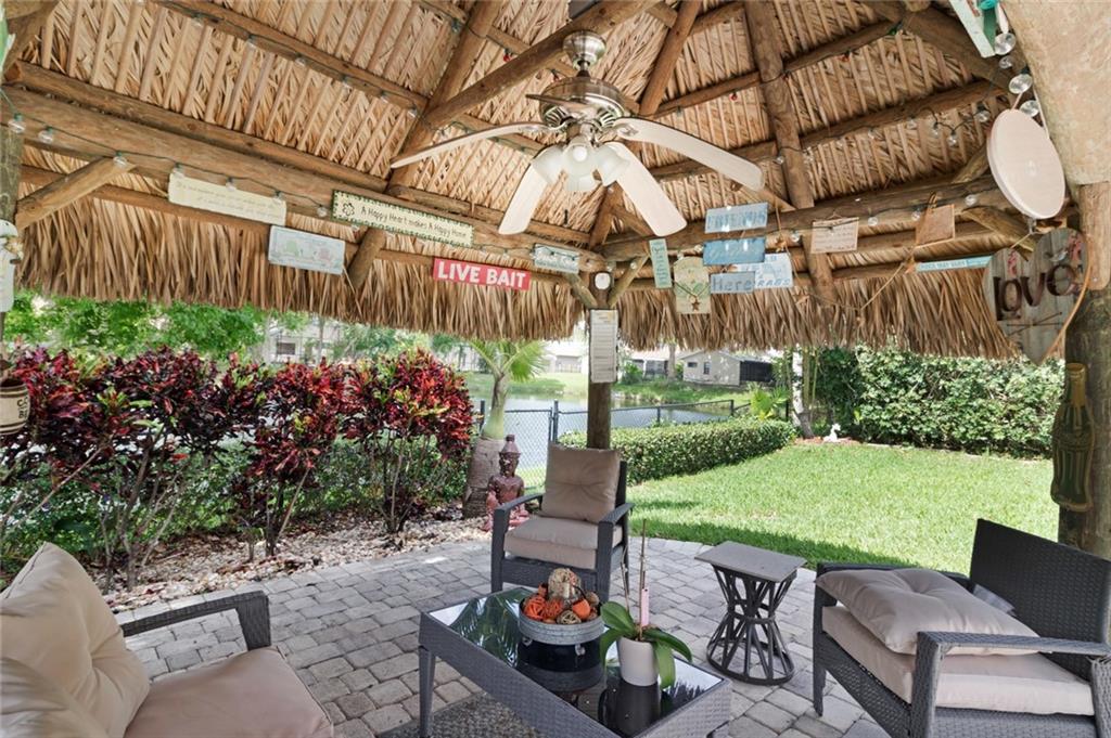 Your eyes will say thank you. Enjoy the comfort of this zen-like modern sanctuary on the Lake. This 3bed/2bath home has been completely remodeled from floor to ceiling. Gorgeous driftwood grey-like laminate vinyl flooring throughout. Extra special wall treatment of reclaimed wood paneling is a statement piece. White Kitchen cabinets with S/S appliances and granite counters with coordinating glass backsplash Double Basin Farmhouse Kitchen Sink with high end spring coil pull down kitchen faucet. Extra large refrigerator with water dispenser door and extra storage, Ceilings fans in each room, including the Tiki HUT. Enclosed tiled Lanai with pet access door and TV included. Privacy galore with fence and landscaping. Accordian Shutters, Remodeled bathrooms.