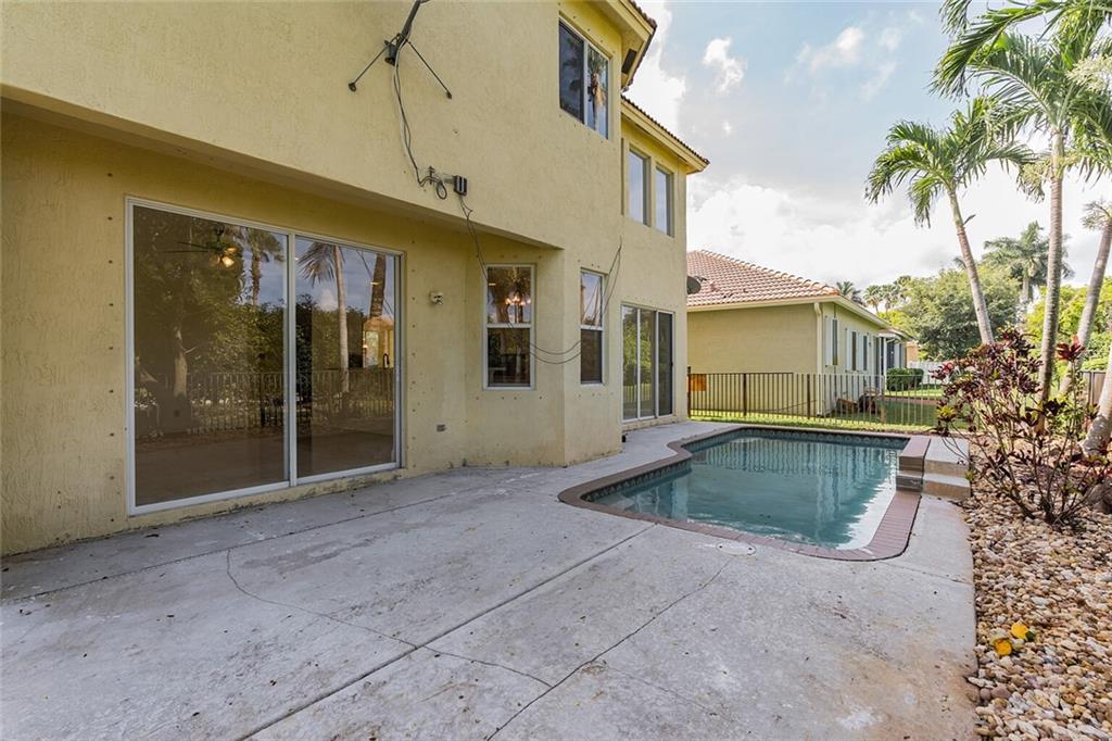 Immaculate 5 bedrooms 3 full bathroom single family home with 3 car garage located in the prestige gated community of Monarch Lakes in Miramar. This 2,895 sq. ft. property features marble floors, cathedral ceiling, brand new upgraded elegant kitchen with granite countertops, white wooden cabinetry, and the most up-to-date stainless steel appliances. This model has 1 bedroom on the first floor and 4 bedrooms on the second floor, with a loft area. All bedrooms include wood flooring and bathrooms are completely remodeled with porcelain tile. Master suite features soaking tub, separate shower, and walk in closet. The exterior features a fenced-in backyard with pool and room for entertainment.