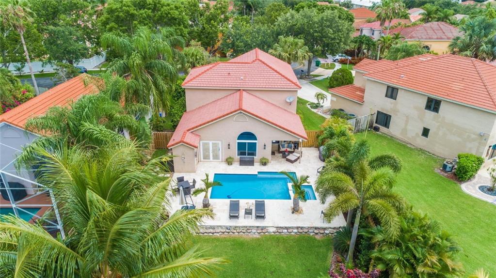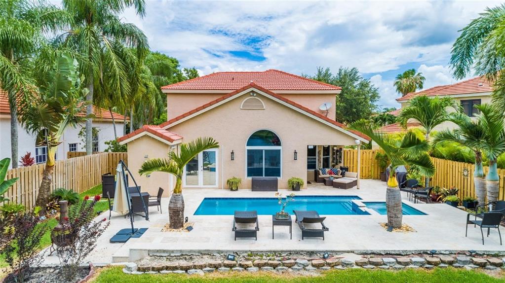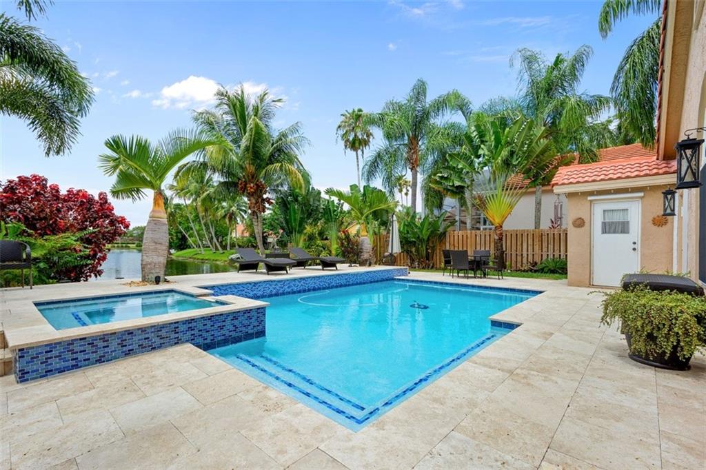 Pool, Lake View and Impact Windows are just some of the features in this Embassy Lakes home. Totally updated with beautiful pool and marble paver patio, open kitchen with wood cabinets, stainless steel appliances and granite countertops, master bedroom on first floor with wood look tile flooring and updated master bath with huge shower, updated second bathroom upstairs, updated half bathroom room and a second half bathroom by the pool with exterior shower, laminate flooring on the stairs and throughout the second floor, three good size bedrooms and a small loft area upstairs. Guard gated community with a clubhouse, gym, community pool, tennis, basketball and racquetball courts, and playground. Great Cooper City schools. This is a home not just a house.