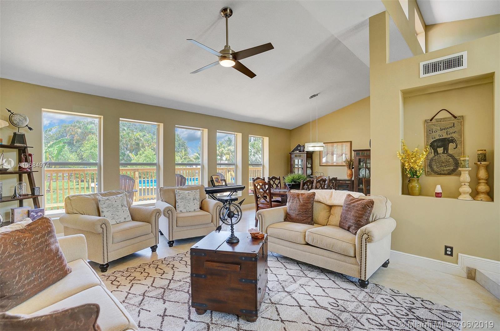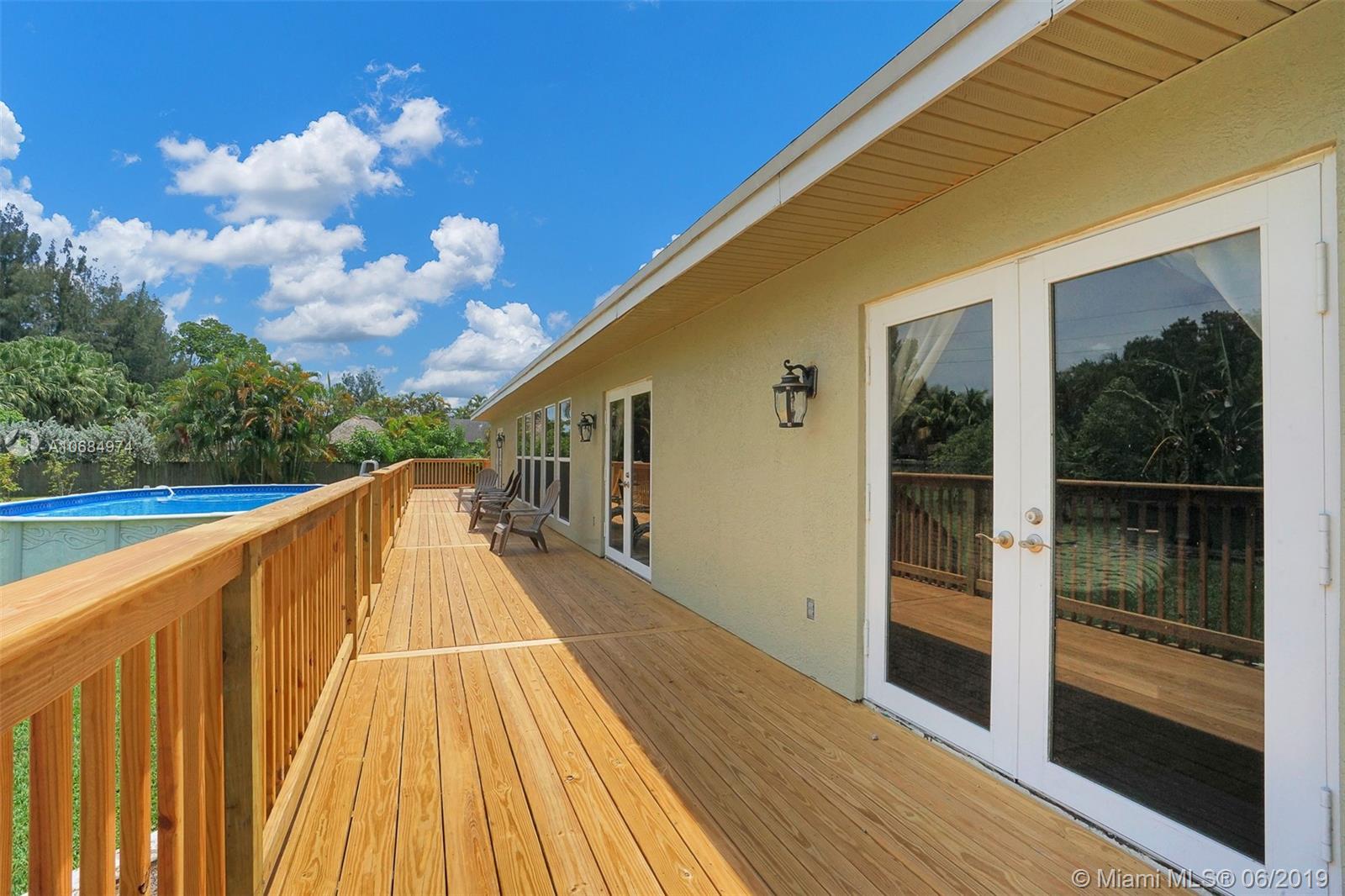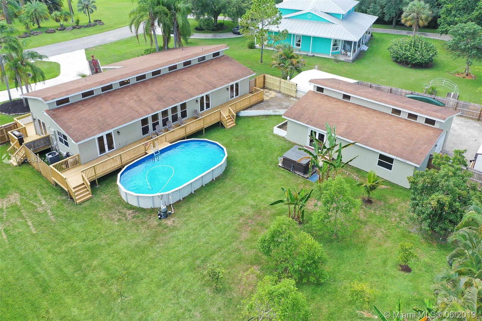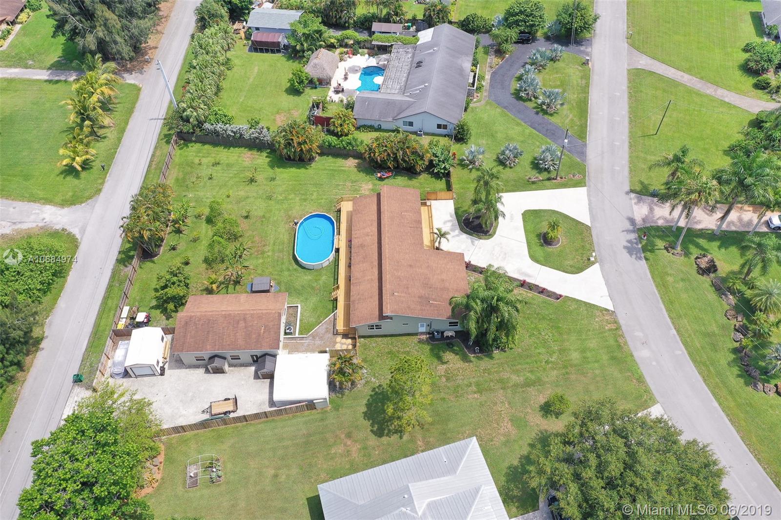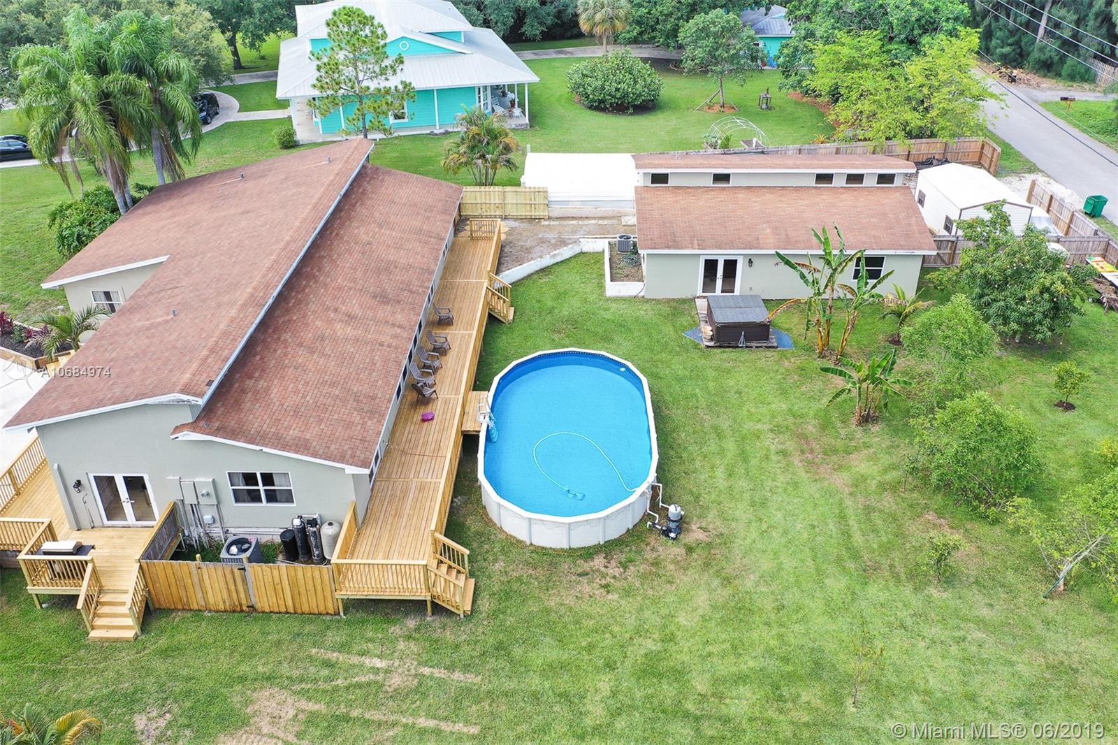 Amazing acre retreat! Main house over 2900 sq. ft. 4/2.5 & was completely redone. Guest is house 1000 sq. ft. 2/1 w/ bonus room/den. Main house has 2 new A/C units (2018), 2 newer water heaters (2014, 2018). Double closets in all bedrooms and master has custom walk in closet. Thomasville kitchen cabinetry. High vaulted ceilings make this home bright and open. Both houses have s/s appliances, granite countertops in kitchen & bath, W/D, new tile, wood & laminate flooring. New roof in 2014. Impact glass on all windows & doors. New deck (2019) built around main house. Enormous pool & fruit trees still don't fill this entirely fenced in yard with additional 400 workshop with metal roof. Guest house has separate entrance for privacy. Great rental income. Room for RV, boat and more!