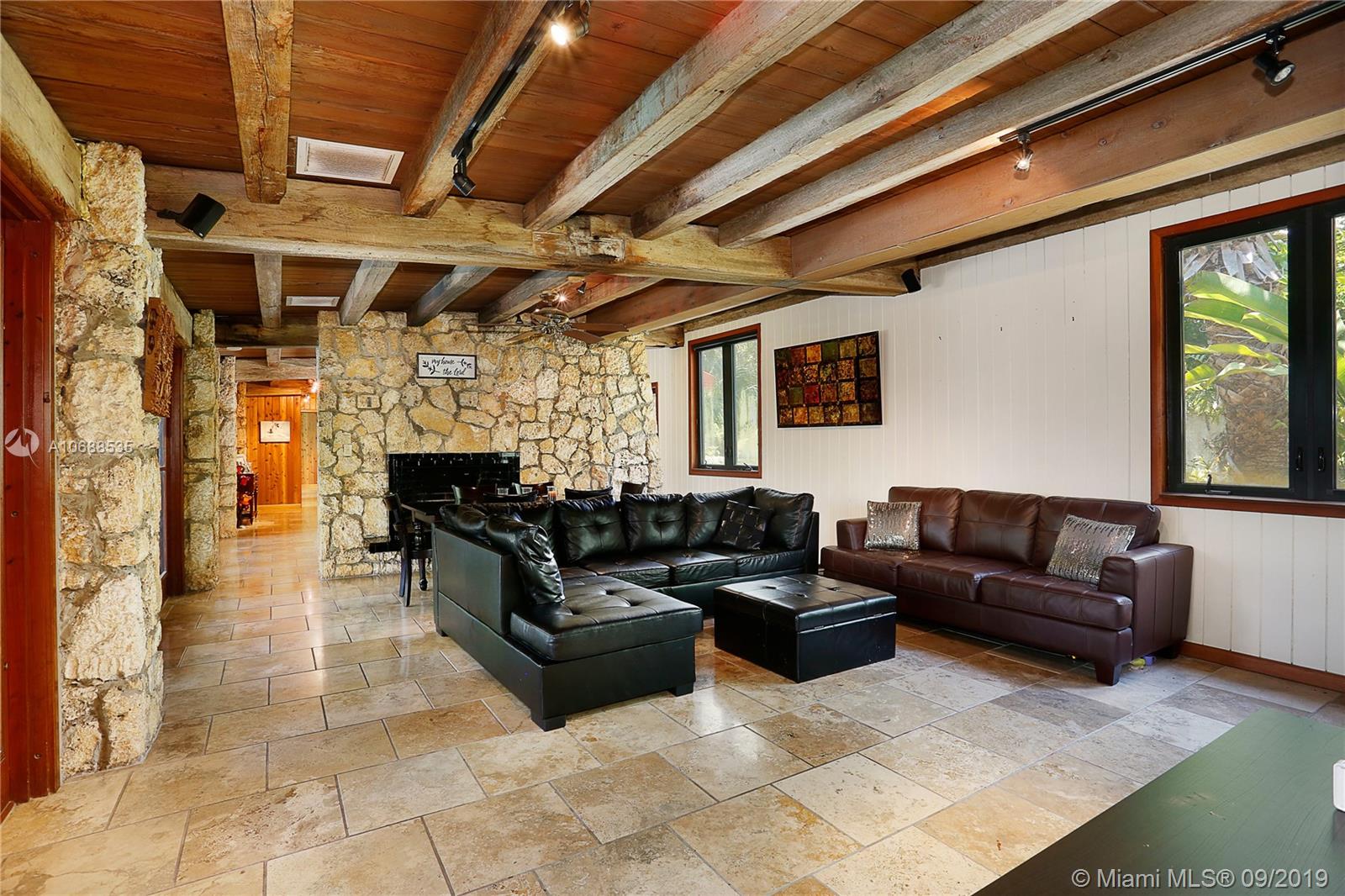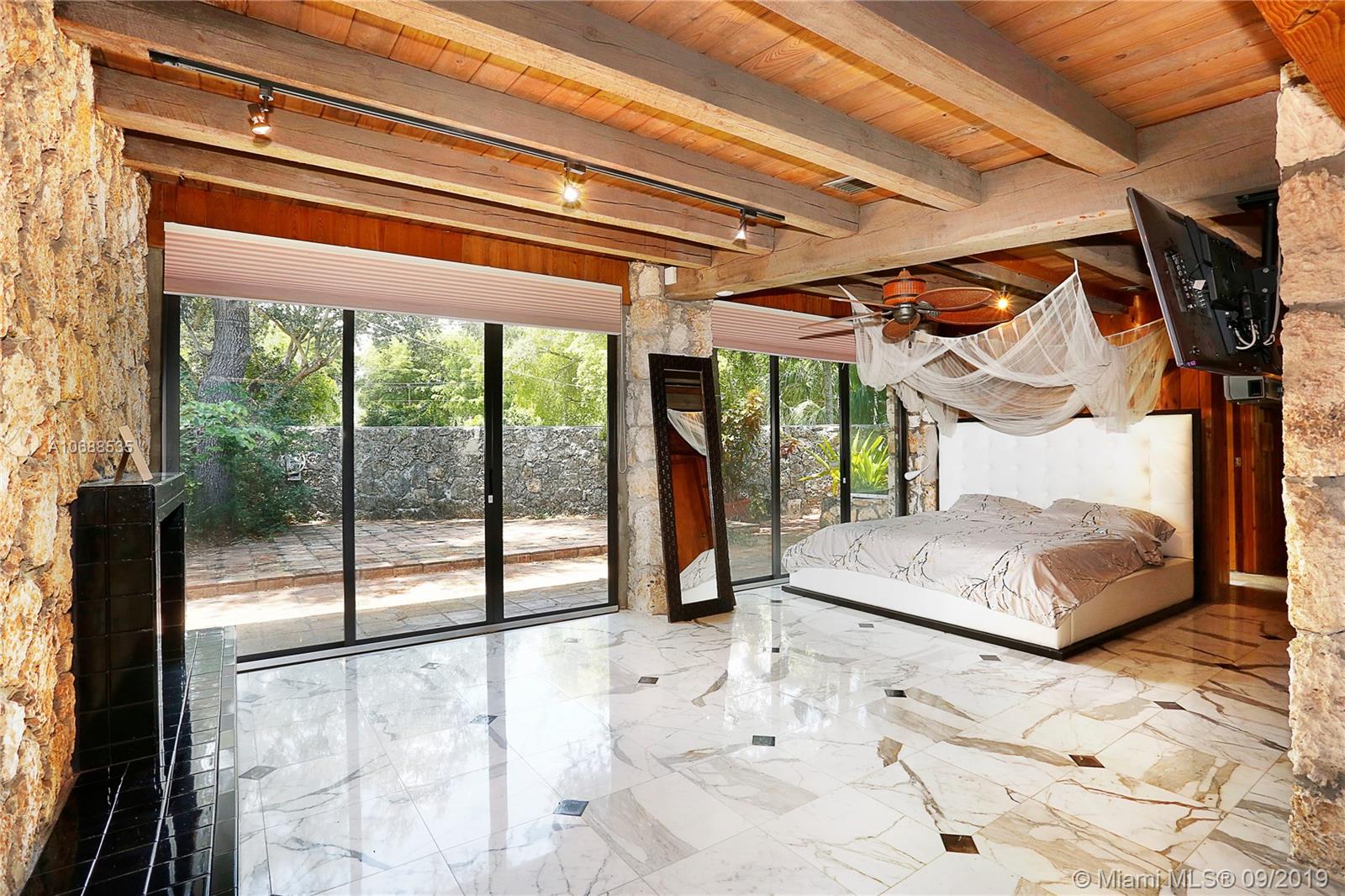 One Acre on excellent block of North Pinecrest near Gulliver!!Walled-in & gated 42,906 SQ FT LOT this 5/4 home offers seclusion & privacy like no other.Features beautiful & comforting wood beam ceilings,coral rock details,travertine marble flooring,impact windows,office/den,2 new A/C's,updated eat-in kitchen w/wood cabinets & s/s appliances, LARGE & oversized screened-in pool & patio w/built in grill that opens up to formal family & dining rooms, excellent for entertaining! Master bedroom offers beautifully & naturally lit up room & bathroom w/own private patio surrounded by coral rock & landscaping, private morning/evening oasis.House was recently tented! Built by world famous architect Alfred Browning Parker this home offers one of a kind features & personalized finishes.Truly a classic!