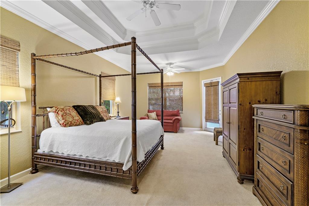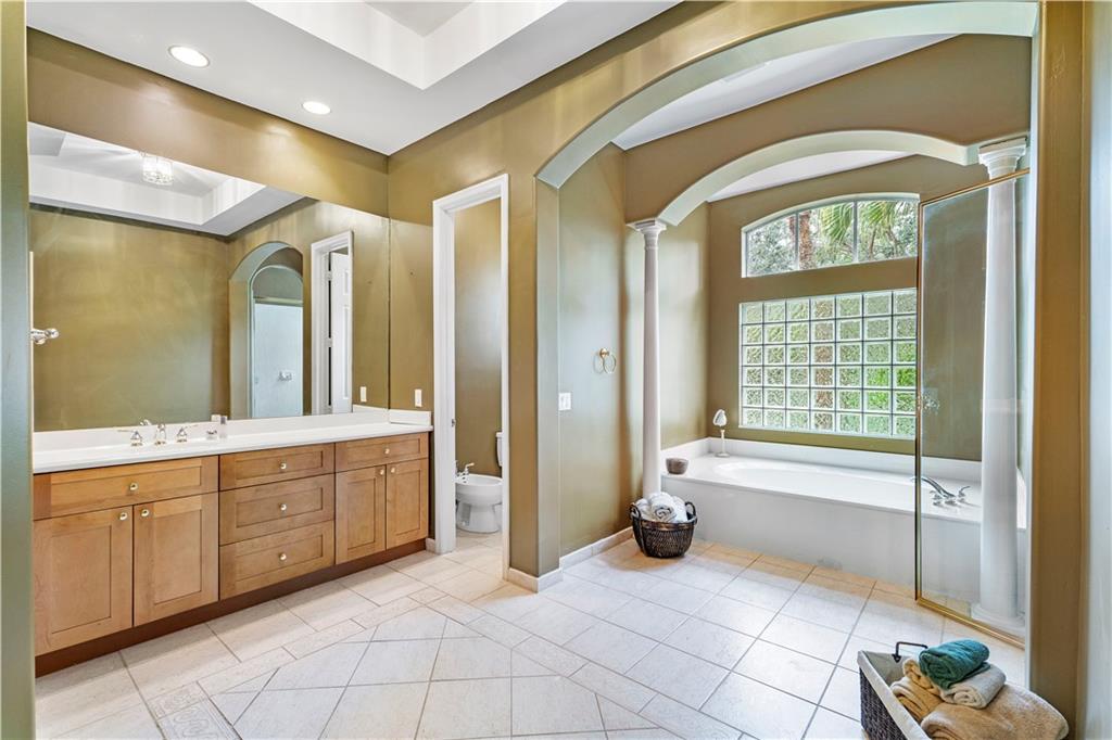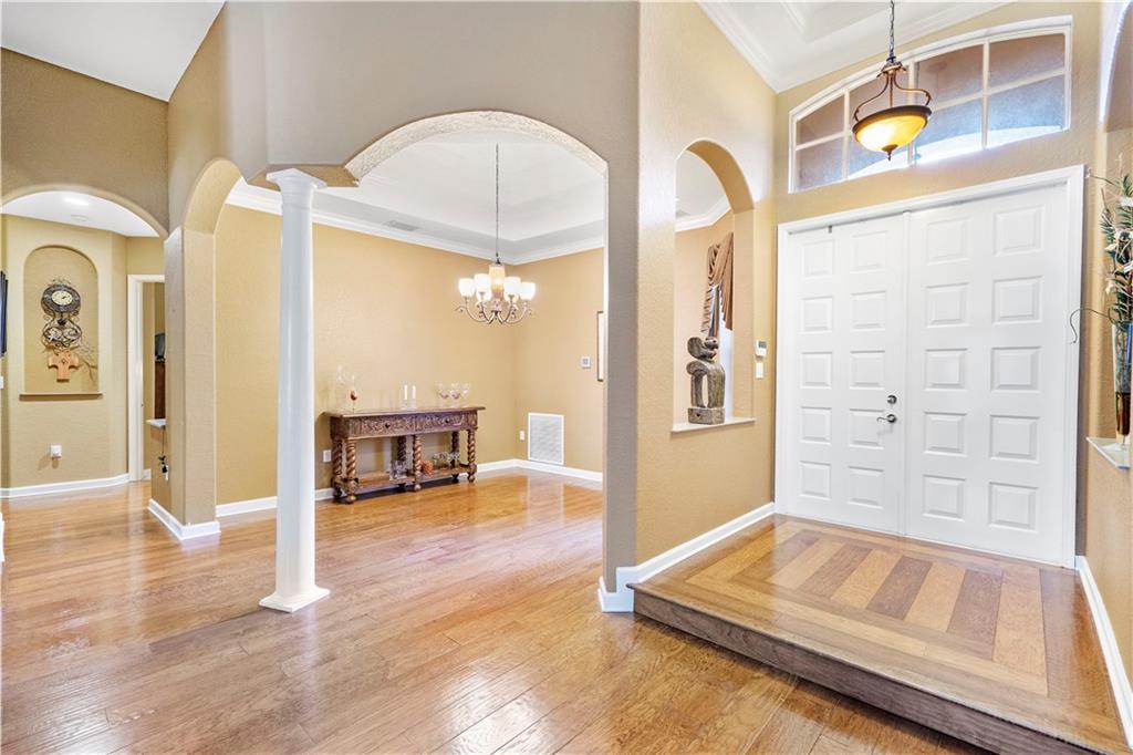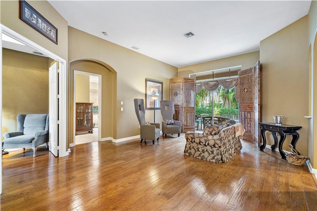 Lovely pool home in the sought after community of Venetian Isles. Dramatic foyer entry featuring beautiful hardwood floors in Living Room and Formal Dining Room. Triple split floorplan with office (5th bedroom) and large, private Master Suite with sitting area, his and hers baths, Bidet and Roman Tub. Kitchen has wood cabinets, double wall ovens and island with second sink. Built in surround sound in the Family Room and dual zone AC. Monthly HOA fee includes Cable, Internet, Alarm, Landscaping, manned Guard Gate and access to Eagle Trace amenities including tennis and golf.