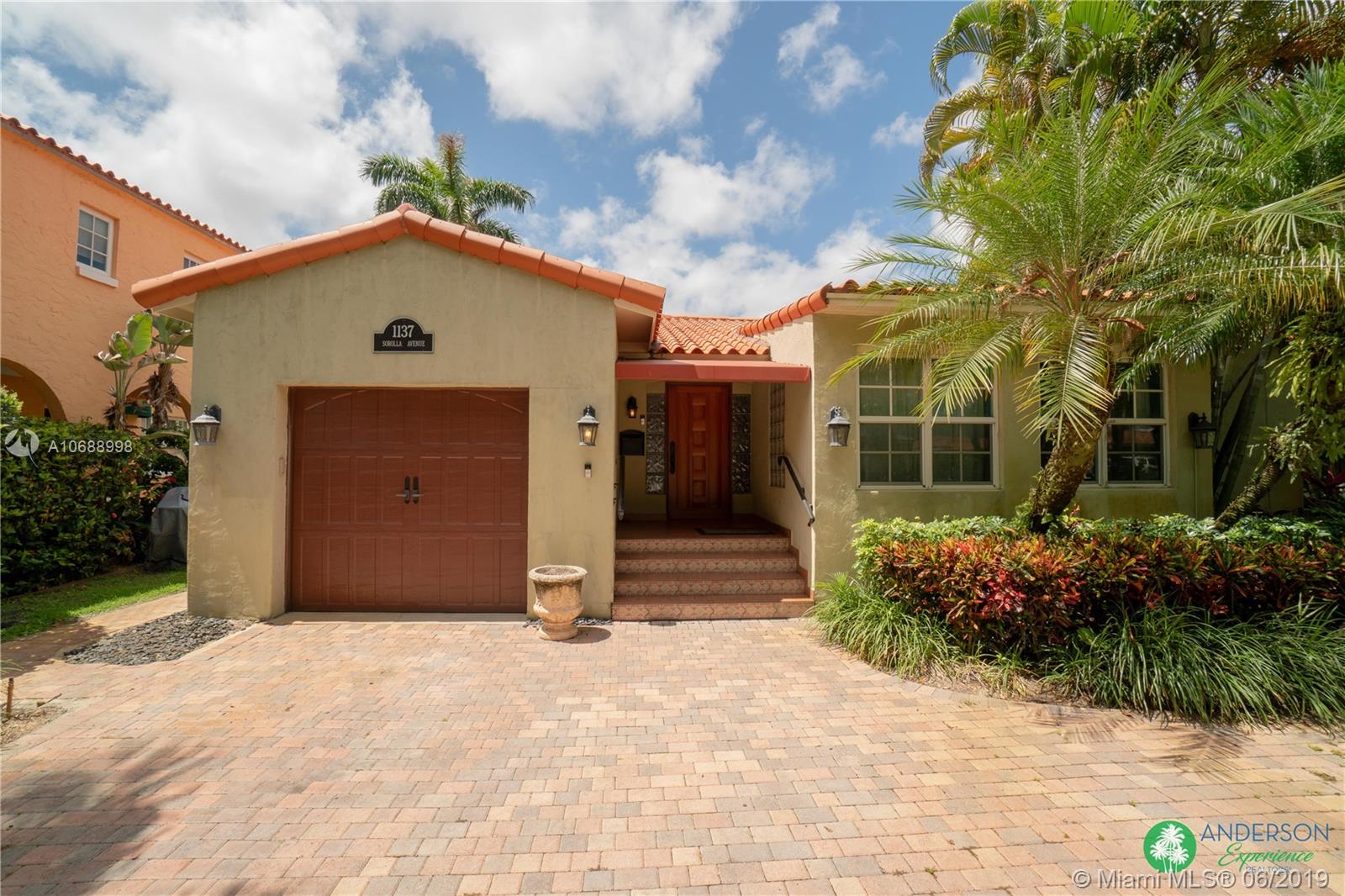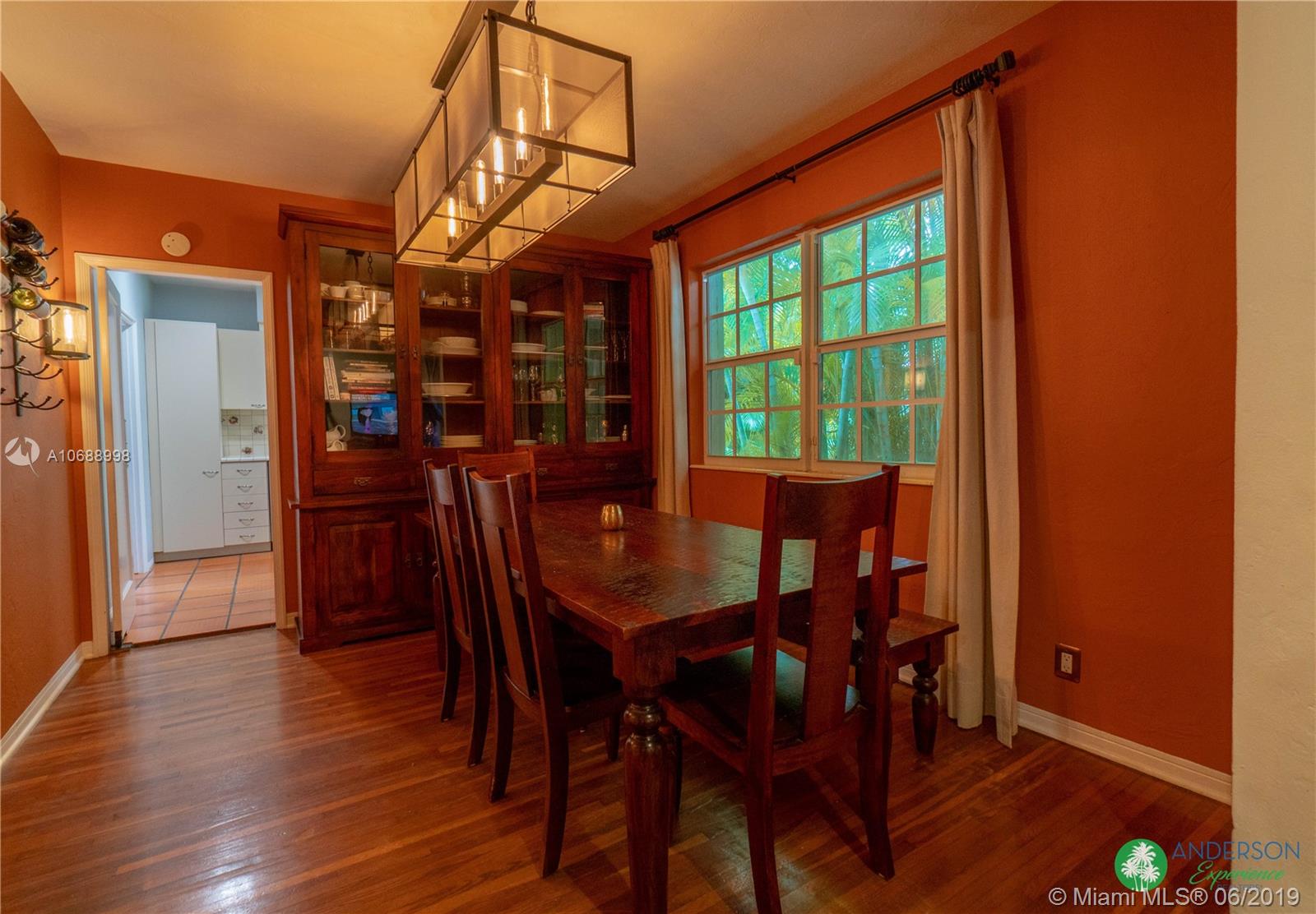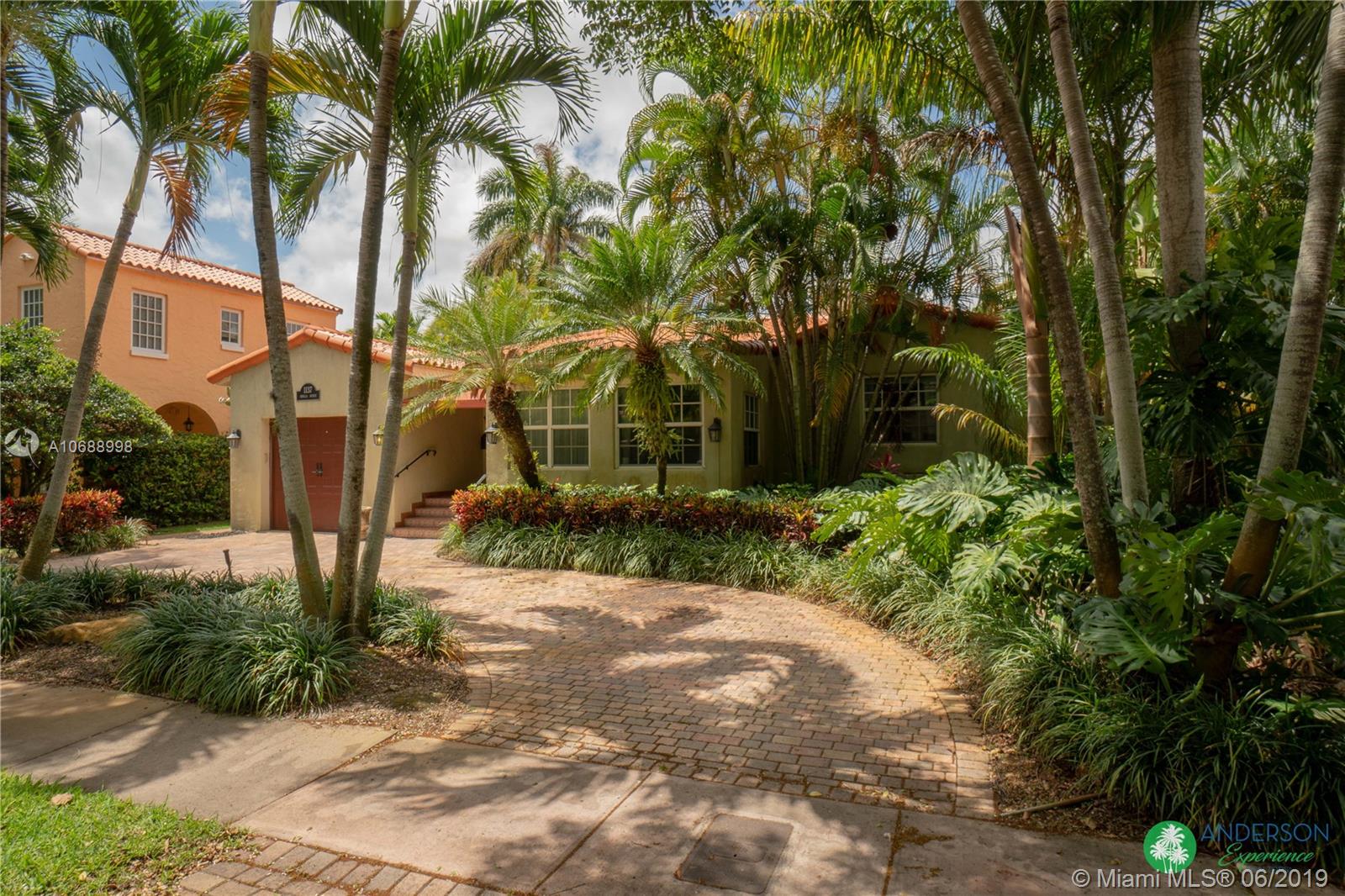 Great house to call home! Located a few blocks from Granada Golf Course and the Coral Gables Country Club. Built in 1944, this charming Art Deco home sits on a beautiful tree lined street w/ a circular driveway and a 1-car garage. The living room has beautiful Art Deco features in the ceiling & mantel of the working fireplace. The home is a split plan 3b/3b. The master bedroom features a walk-in closet & master bath w/ his n’ hers sinks. From the living room, French doors open to a huge screened in patio w/ wood beam vaulted ceiling, wet bar, serving station, and plenty of room for a dining table and seating area. Sparkling salt water pool with brick paved deck area, tropical landscaping, detached gazebo.