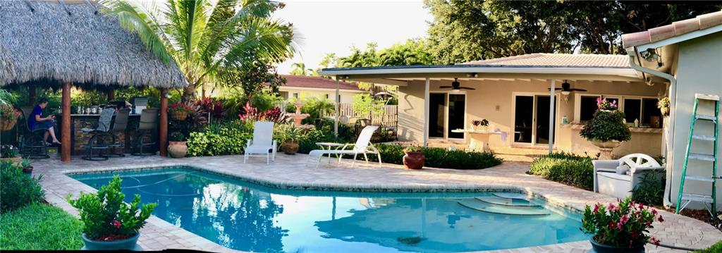 recently painted. gorgeous water views. large tiki hut with electric and built in grill, refrigerator and bar. paver pool deck. extra wide paver driveway. large paver patio. updated kitchen with top of the line stainless steel kitchen aide appliances. granite countertops. updated bathrooms. new air conditioner with warranty. updated electrical panel interior and exterior. hurricane impact sliding doors. storm panels. security camera. alarm system.