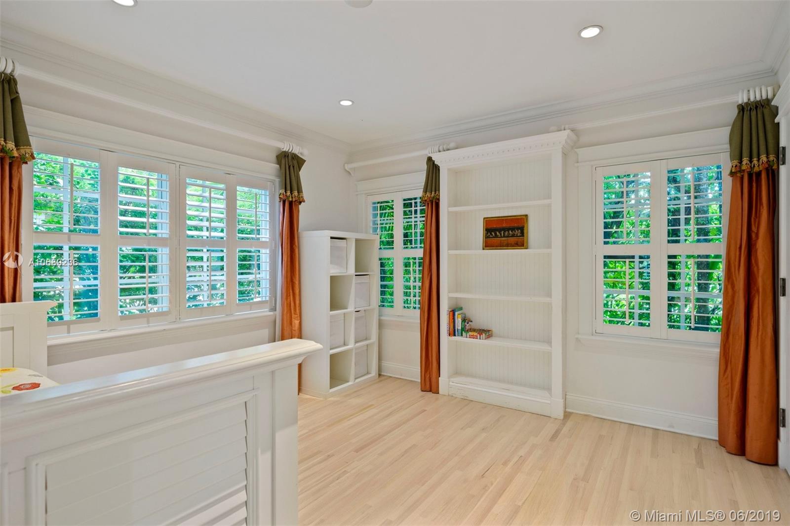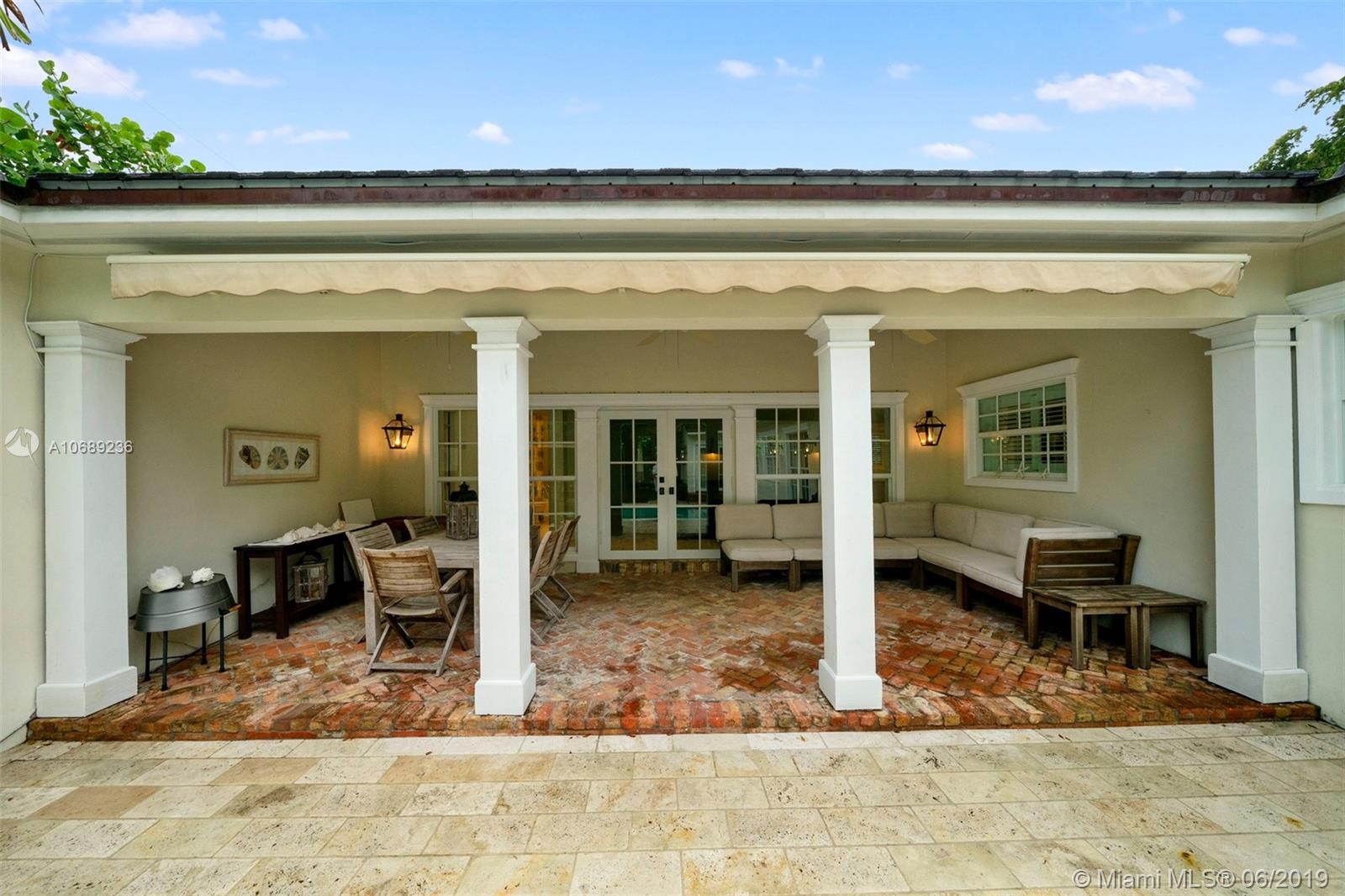 Charming, remodeled, 4 bdm/ 2.5 bath Coral Gables home w/ gorgeous details. Spectacular crown molding, millwork, built-in cabinetry, vaulted, tongue & groove ceilings, whitewashed wood floors. Wonderful floorplan w/ 3-way, split bdrm set up. Spacious living spaces include open formal living & dining rm w/ adjacent sitting rm. The kitchen has crisp white cabinetry, complimentary quartz countertops, stainless steel appliances, eat in snack bar open to family rm. Impact glass except for classic front door. Private master w/ beautiful views of the backyard, sumptuous master bath w/ free standing soaking tub, rain shower. Fantastic backyard w/ brick paver patio, large swimming pool, private landscaping. Lovely curb appeal, covered front porch, Chicago brick driveway, rose garden. 1 car garage.