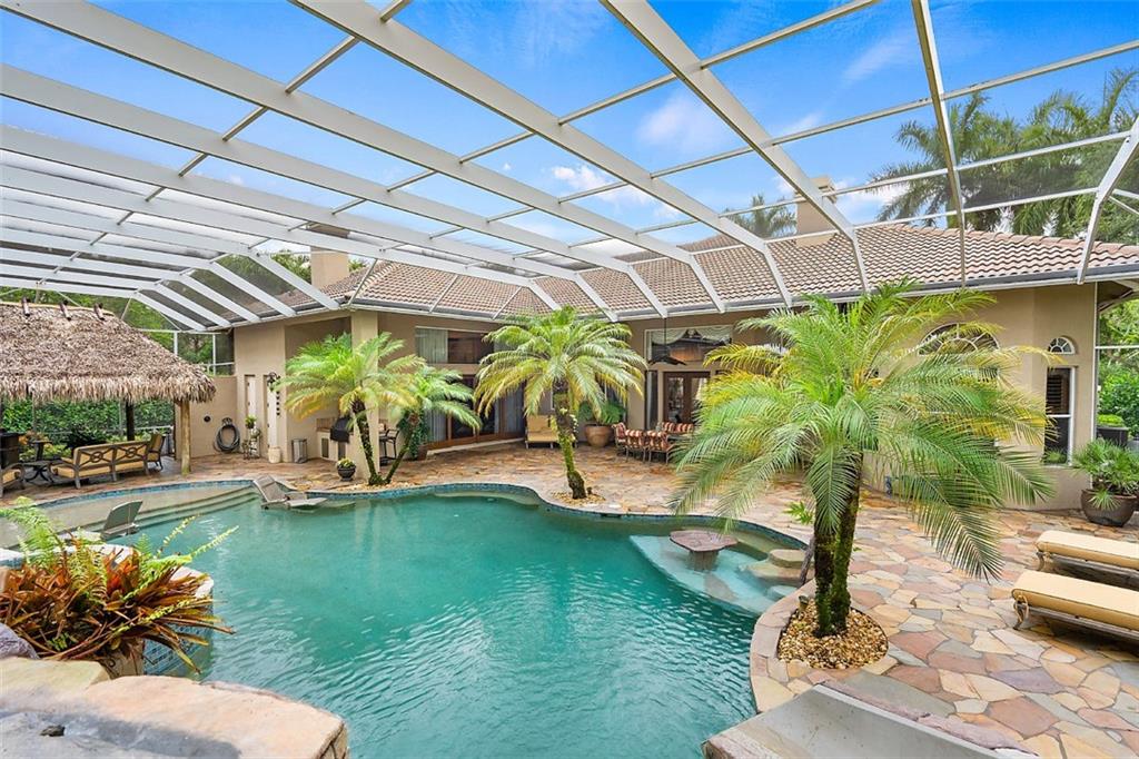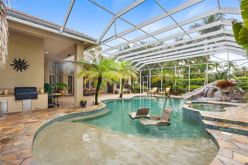 Nestled in one of south Florida's most sought after communities & on a magnificent corner lot is this beautiful estate! Upon entry via dramatic double glass doors, grand living areas are revealed! Floor to ceiling glass doors & windows, soaring ceilings, marble floors & an indoor/outdoor living design! Large island kitchen with beautiful cabinetry & clear glass subzero refrigerator! Large family room with fireplace! Beautifully appointed master suite with sitting area & fireplace, Jaw dropping closets with cabinetry, marble top vanities & shoe carousel! Splendid master bath with water closets, his & her vanity, spa tub & large shower. Children's wing with bonus room! Expansive screened porch with a huge tropical pool, spa, waterfalls, water features, slide & tiki bar! Perfectly maintained!