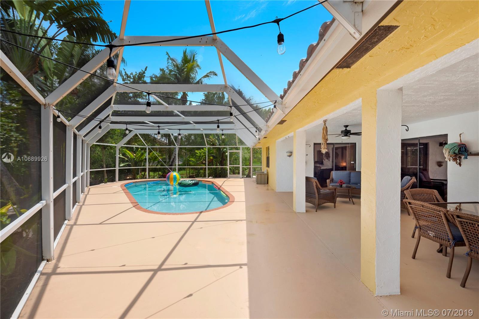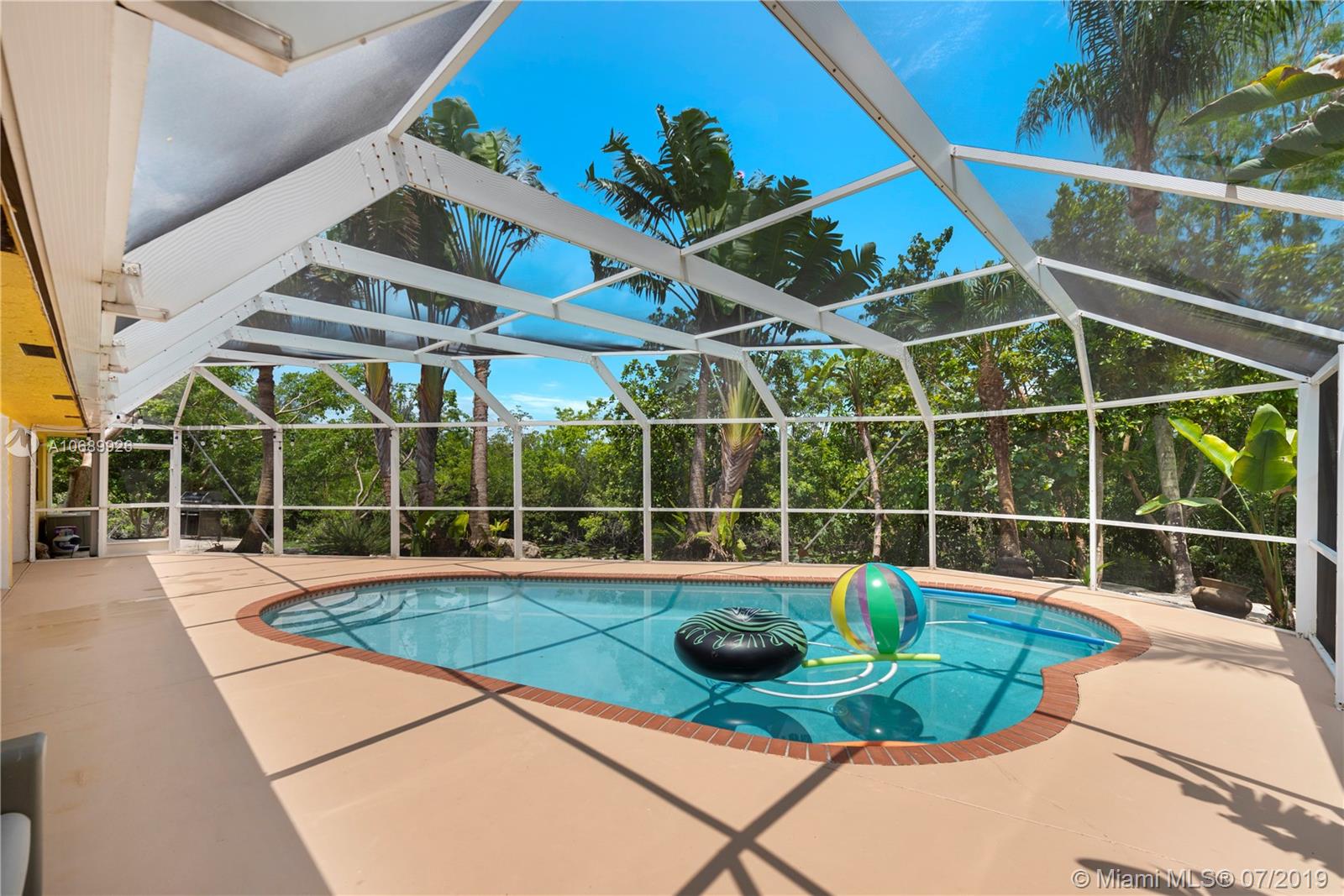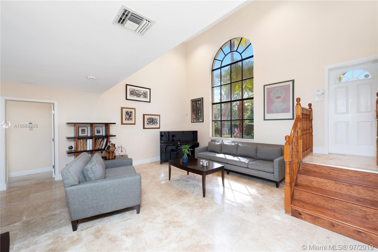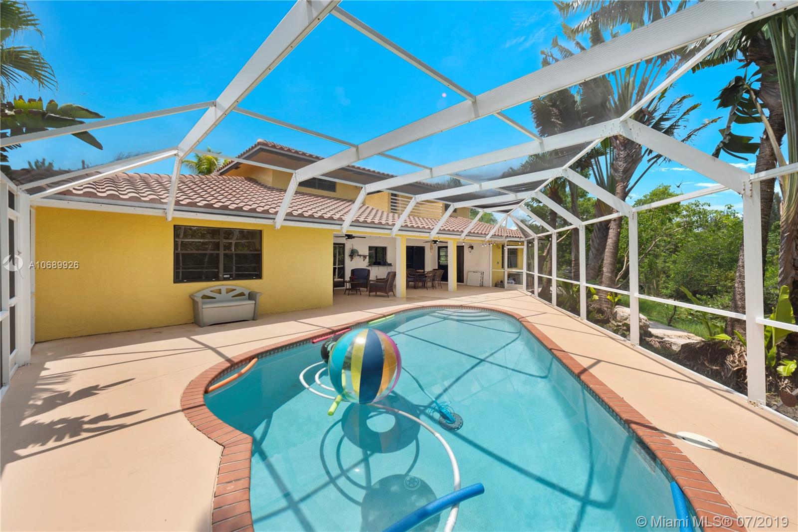 Beautiful two story Contemporary Mediterranean style house, with a lot size of almost 1 acre on a cul-de-sac in a quiet and very well maintained neighborhood of mostly acreage residential sites. 4 spacious Bed, 3.5 Bath and a loft that can be converted into another bedroom. Huge master bedroom downstairs, and a junior suite upstairs, walk-in closets, marble tile floors downstairs, laminated wood floors upstairs and the roof is new. Large covered terrace and screened enclosure back yard with a salt water system pool. Contemporary kitchen with all the appliances.3 new AC units and a power generator included. Two car garage and parking space for 4 -6 cars and a circle drive with a water fountain. Easy access to I-595.