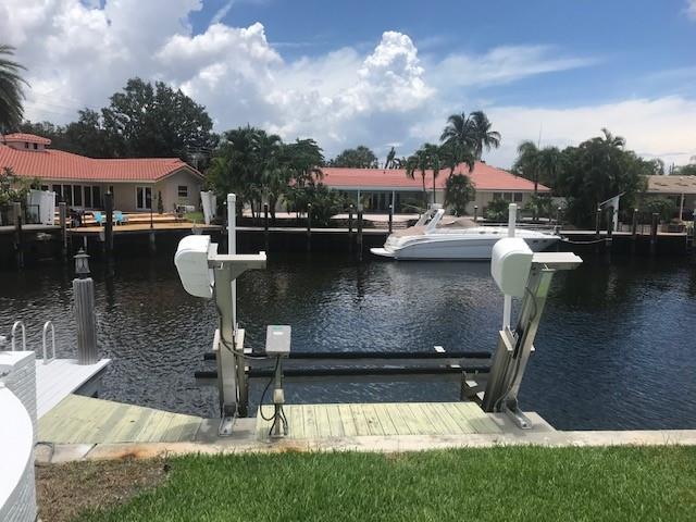 Waterfront in Coral Ridge Country Club. Impact glass, updated kitchen, garage converted to big family room, 10,000 lb boat lift included. Terrazzo floors. Liveable home with some retro features you have to see! Vacant and easy to show. Generator included too!!!!
