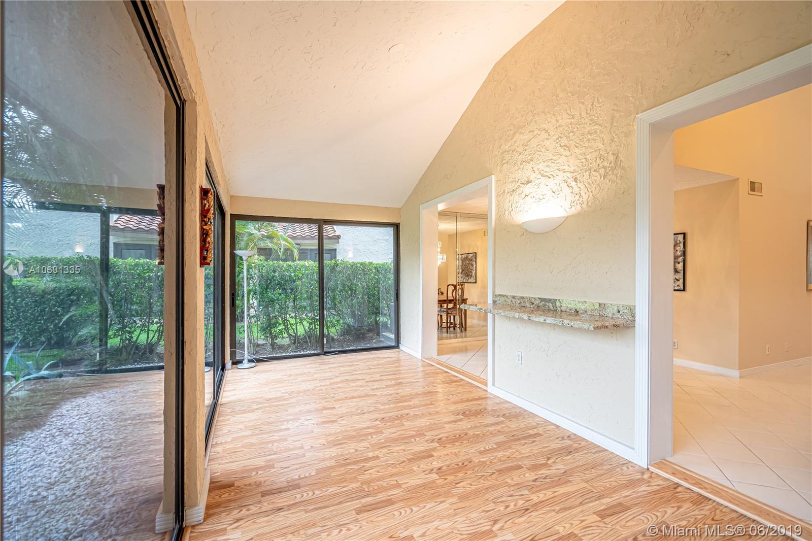 Nicely updated 3 bed, 2 ½ bath in La Mirada with 2 car garage. Ceramic tile throughout first floor and Laminate wood floors on second level. Large expanded living room leads to beautiful glass enclosed Florida room with expansive canal, garden and golf views. All bathrooms have been redone. A tropical oasis awaits you! Corner unit located in dul-de-sac like street, Light and bright!! This will sell quickly. Hurry! Membership optional.