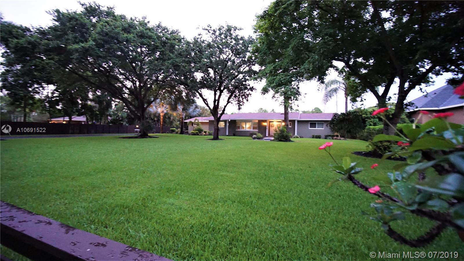 Finally a place to call Home! This Casual yet Sophisticated Property sits on just over an acre and is located in West Davie. The home has been well loved and completely renovated. It offers 4 bedrooms, 3 bathrooms, Formal Living Room, Formal Dining Room, Butler's Pantry, Large Family Room, Beautiful Laundry Room, and an Amazing Kitchen the Family Chef will love! All areas of the home have been remodeled with the most detailed care. The casing and molding woodwork throughout the home complement the beautiful wood floor and highlight the elegant-homey style of the house. The screened patio is perfect for outdoor gatherings, and the landscaped backyard provides endless possibilities for entertaining. It even includes your own "Secret Garden" and an outdoor building. New impact windows 7/2019