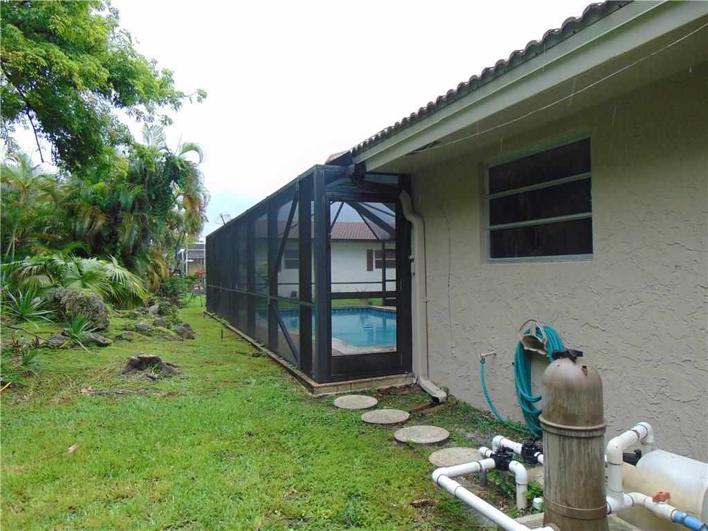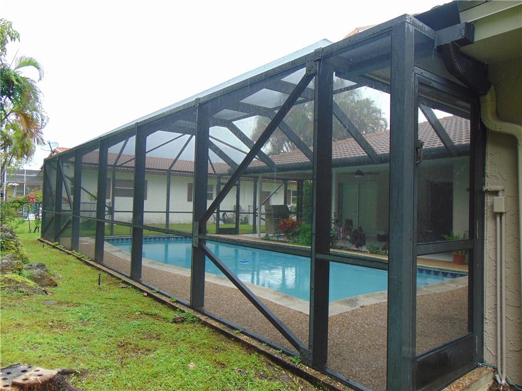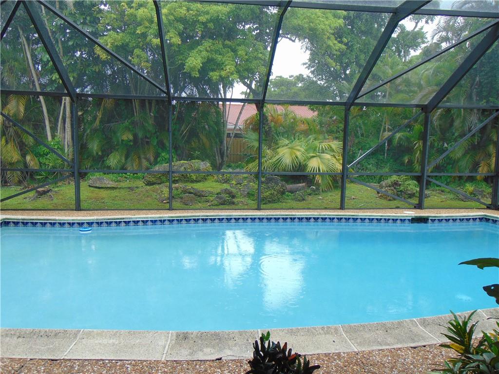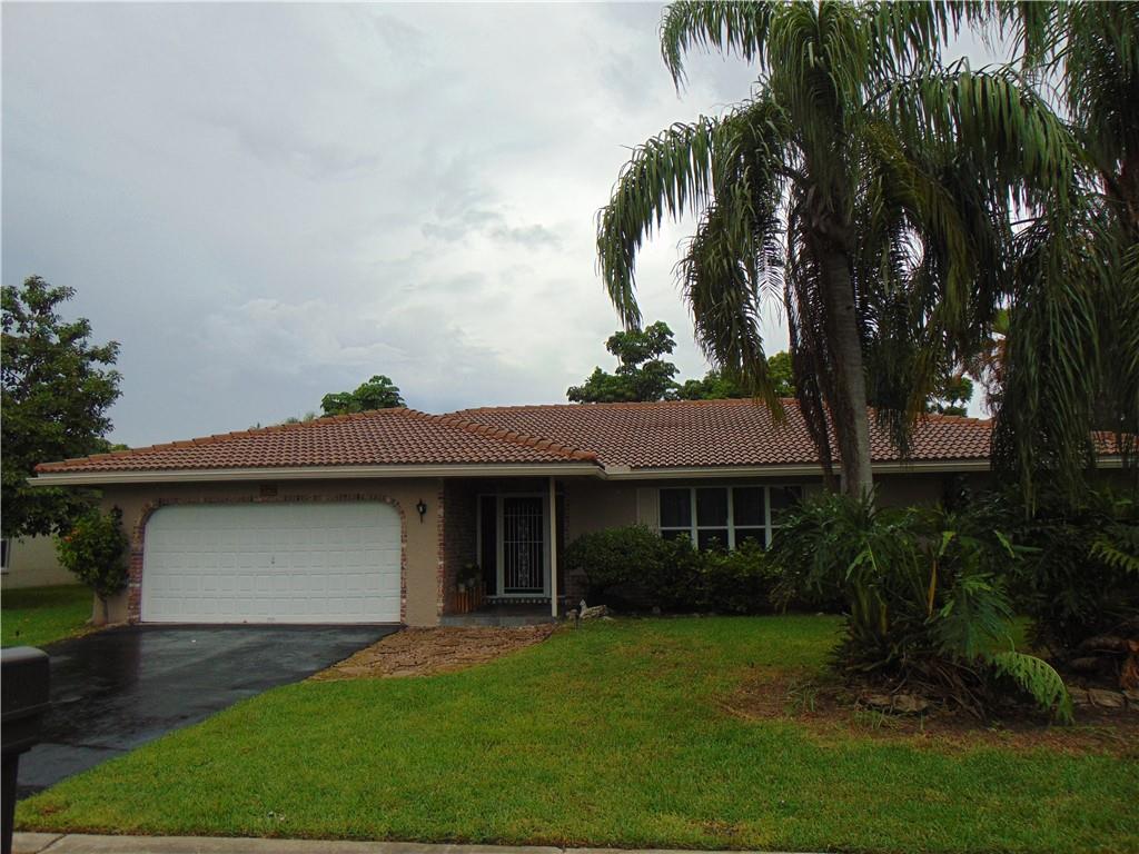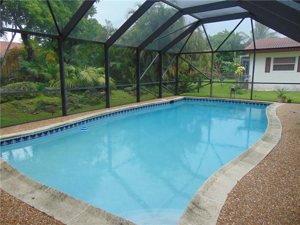 Beautiful 4 bedroom and 2 bath Pool home in a quiet neighborhood of Coral Springs! Split Floor plan living space. Split bedroom plan with master bedroom and bath on one side and 3 bedrooms and cabana bath on the other. Tile and carpet floors throughout. Washer and dryer in garage with automatic garage door. Huge pool with screened in pool enclosure. Great space for entertaining and relaxation. Fenced in yard. Sprinkler system works with well water. Close to schools, shopping, sawgrass etc. Won't last!