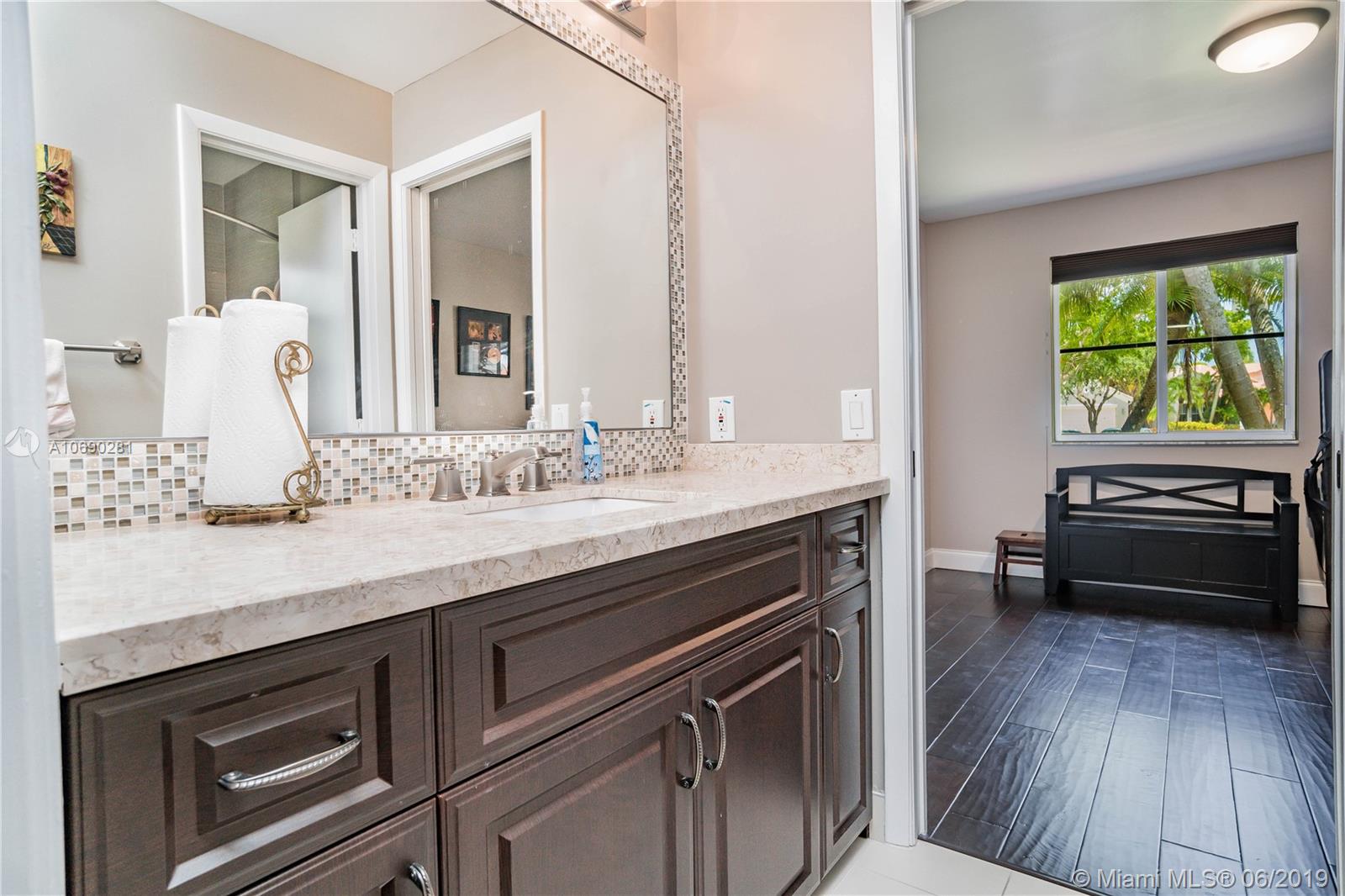 BREATHTAKING IS THE WORD- Impressive & expansive water views of this lake setting. We Challenge You To Find.. a home situated on a quiet cul-de-sac with a over-sized pie shaped lot .. your own SPACE and PRIVACY. This home consist of many PLUS features- porcelain tiles & beautiful hardwood floors, remodeled kitchen w/ quartz countertops, maple cabinets, designer island, chic remodeled master bath, soaring vaulted ceilings with recessed lighting, new Hunter Douglas window treatments, NEST smart thermostat, 400 Sq-ft porch with screen enclosure, recently painted exterior, fascinating SUNSETS on the lake, Kids' Special, Near & Zoned A+ Schools- EAGLE POINT, TEQUESTA TRACE, CYPRESS BAY. In Desirable "The Falls" gated community-heart of Weston-minutes from freeway. Come-A-Running on This One !