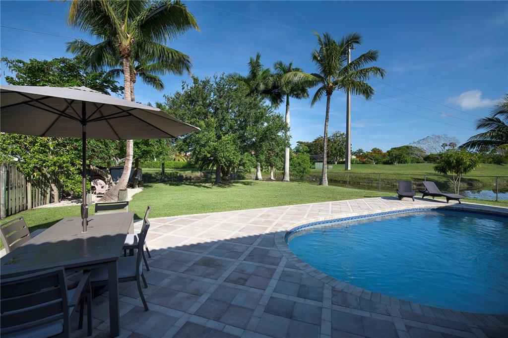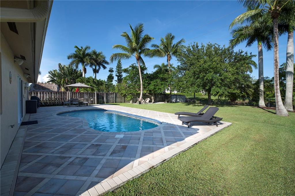 Have you been looking for an immaculate home with 4 brms,2 baths and the biggest backyard in WESTON? LOOK NO MORE! THIS IS YOUR HOME! Home boasts volume ceilings in living/greatroom and formal dining room, large master bedroom that features a walk in closet that overlooks your private oversized backyard. Lavish master bathroom with separate tub & shower.Split plan with 3 bedrooms opposite of the master! This entertaining home features an open kitchen with stainless steel appliances, granite, bar and an eat in breakfast area that is open to the family room. Backyard is like a tropical paradise ! It will leave you speechless! Enjoy the peaceful canal by your pool! 2017 Diamond bright, new pool pavers, and air conditioner. 2000 roof when home was built. A+ Schools! Home will not last long!