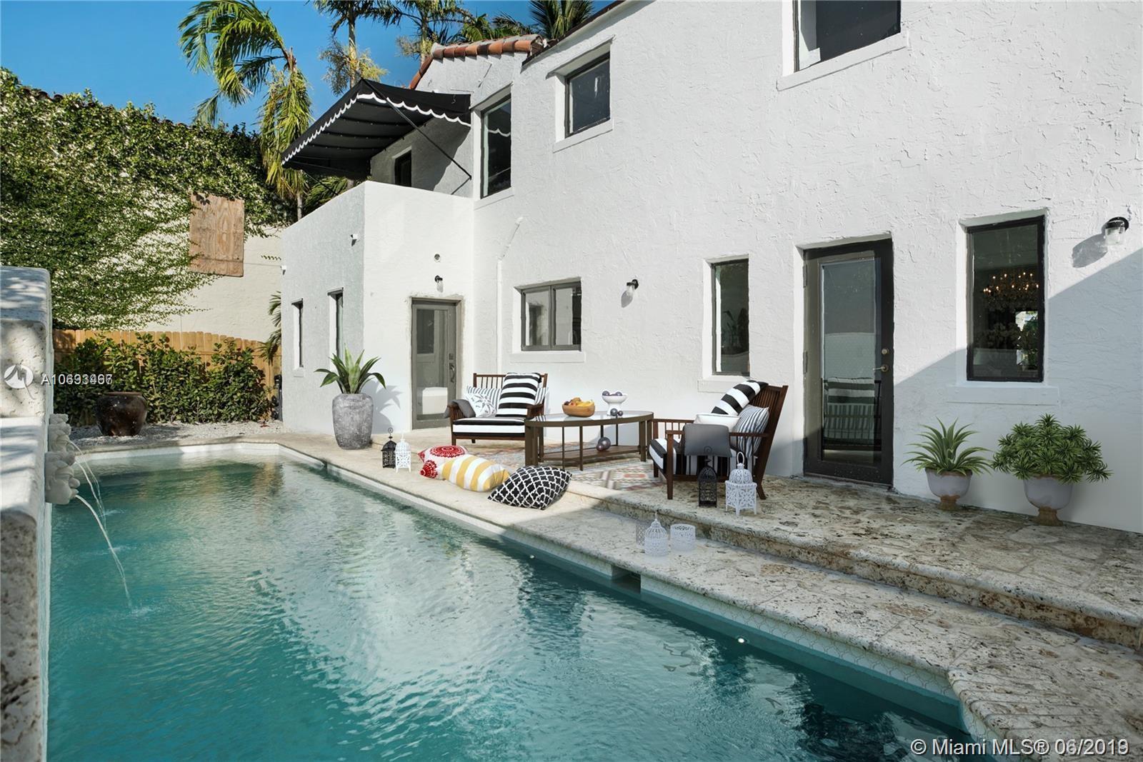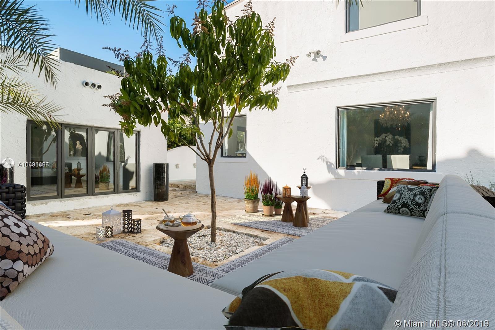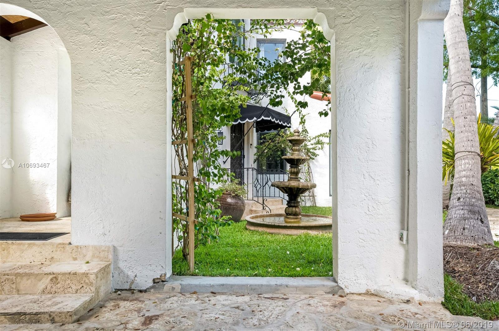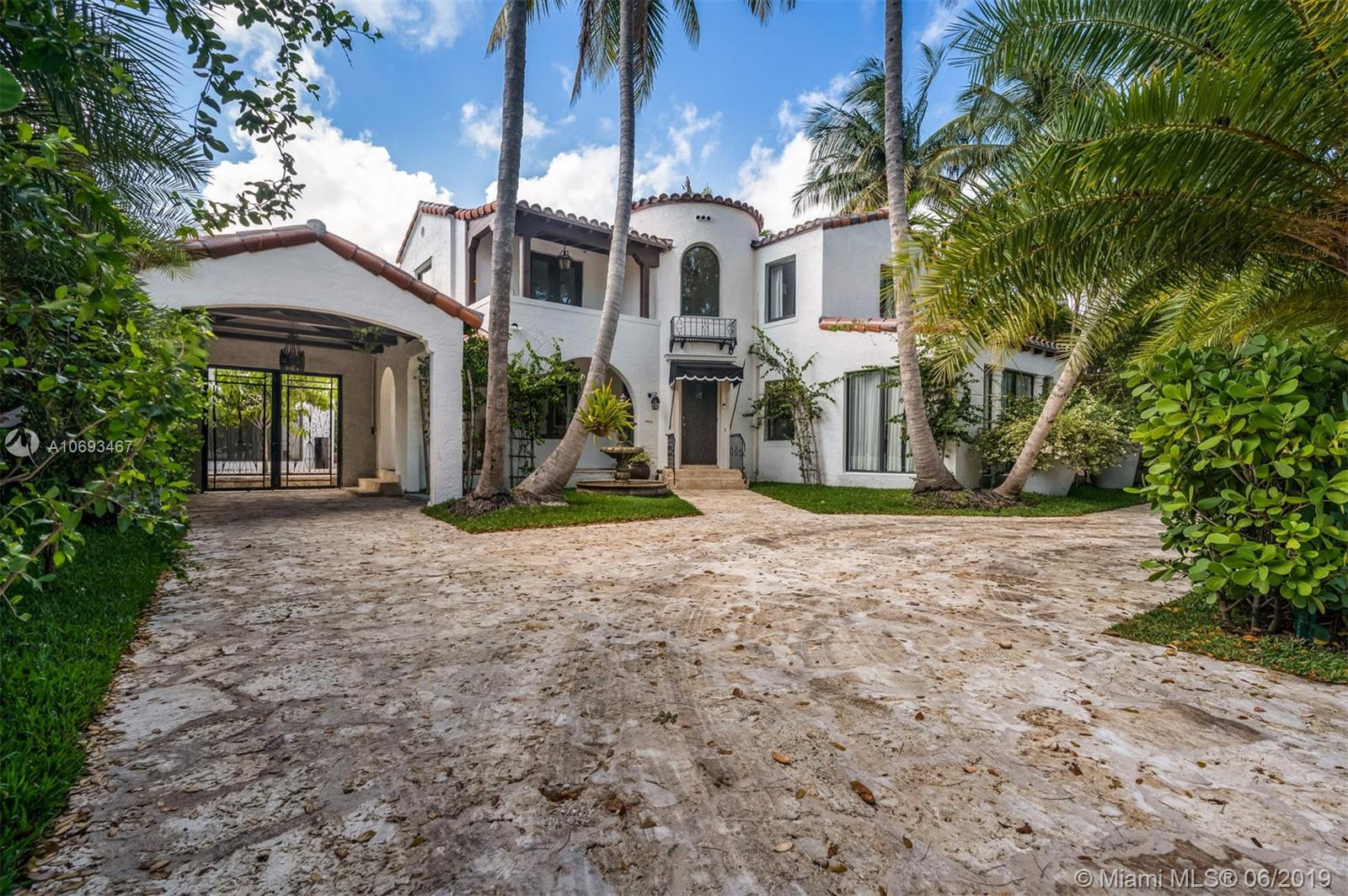 Stunning old Spanish style remodeled home with 3600+ square feet. Brand new barrel roof, impact windows, master bath, new custom kitchen, brand new Subzero fridge & La Cornue oven & hood fan combo. Huge living room w/ fireplace & hardwood floors. TV/media room off the living room. 1st floor bdrm (4th bdrm) or office with private side entrance. Brand new pool & patio areas. Guest home can be finished to the buyers needs (guest home/spa/office/5th bdrm- buyers choice. Three bdrms upstairs all very good sized. Balcony off the master (front) & balcony off the back bdrm. Circular driveway for easy in & out. Off street parking for 6 cars + carport. Master bath suite has solid copper soaking tub & separate dual heads shower room. This elegant home offers exterior patio/lounge area and private sec