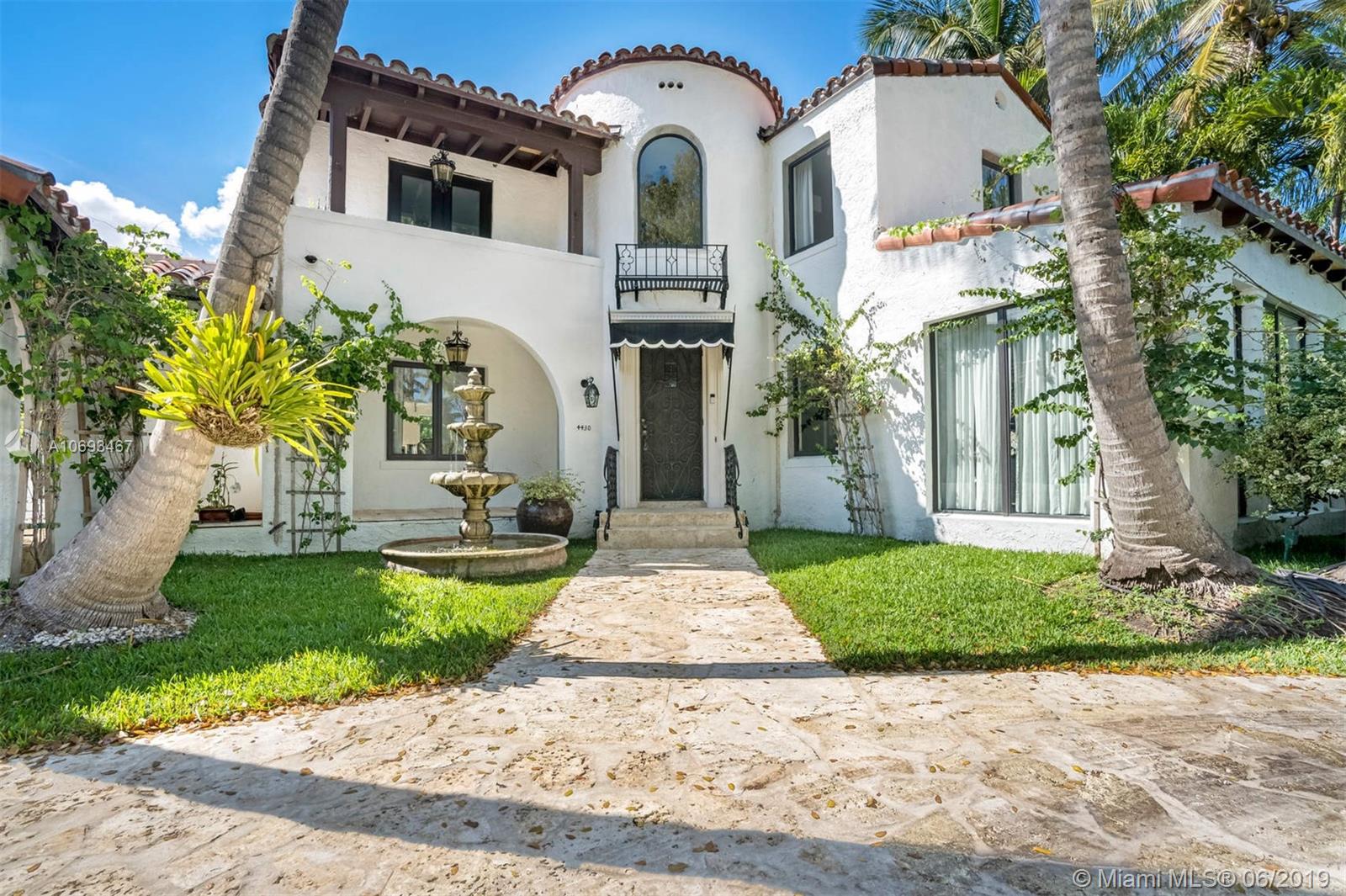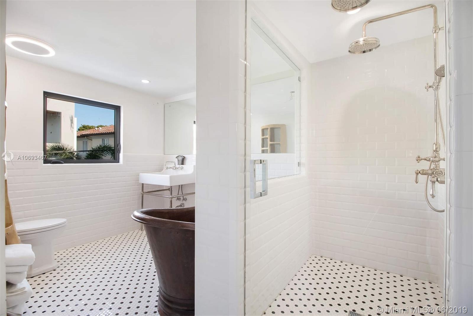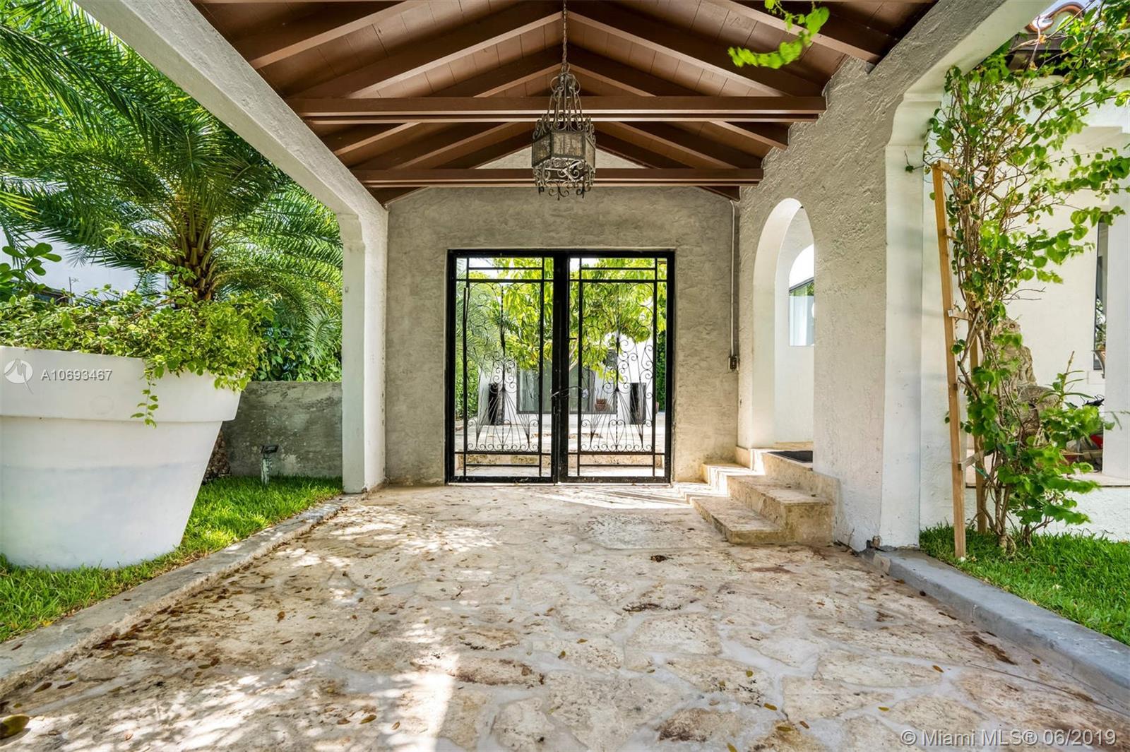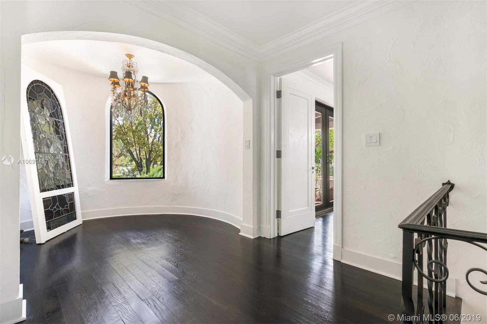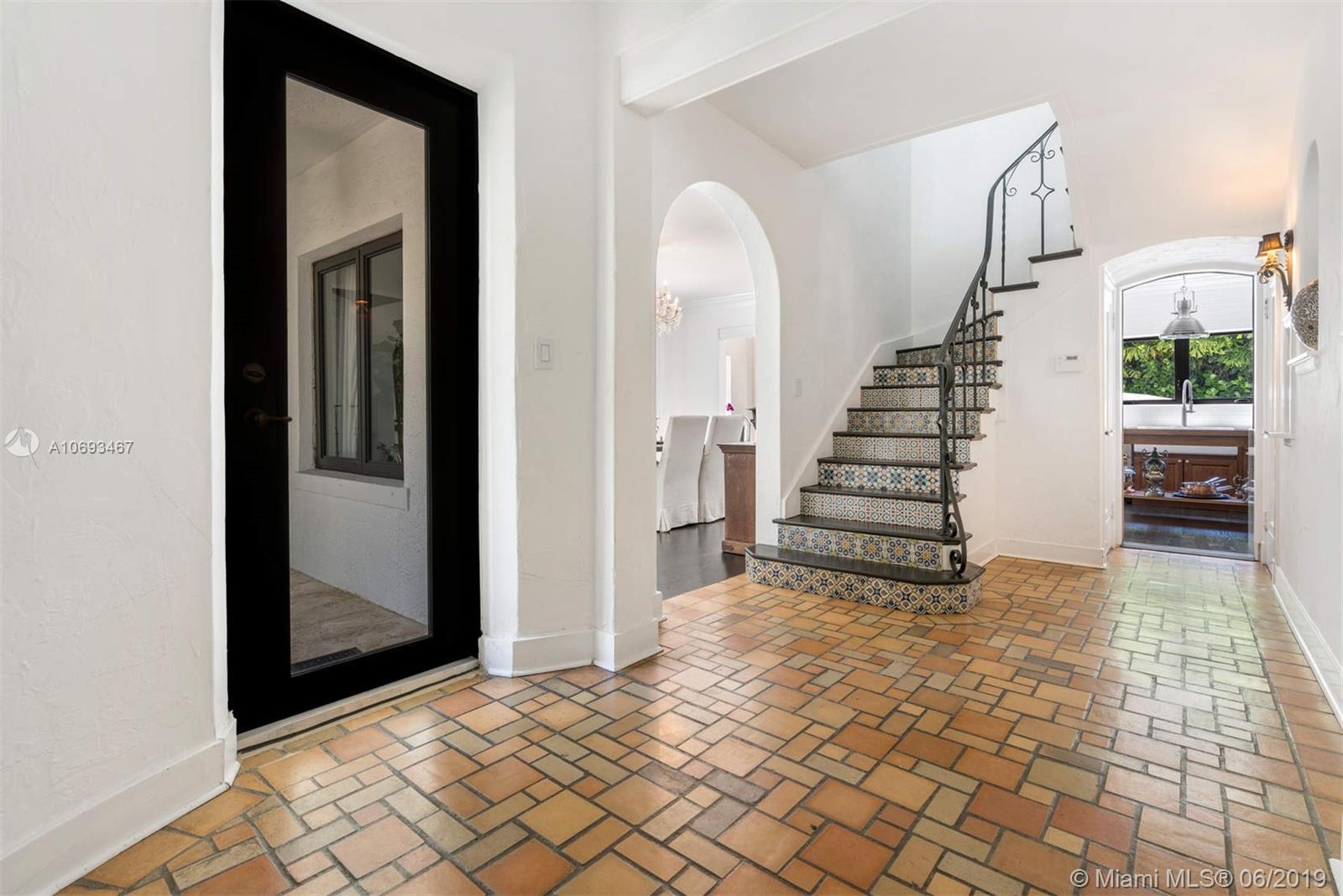 Stunning old Spanish style remodeled home with 3600+ square feet. Brand new barrel roof, impact windows, master bath, new custom kitchen, brand new Subzero fridge & La Cornue oven & hood fan combo. Huge living room w/ fireplace & hardwood floors. TV/media room off the living room. 1st floor bdrm (4th bdrm) or office with private side entrance. Brand new pool & patio areas. Guest home can be finished to the buyers needs (guest home/spa/office/5th bdrm- buyers choice. Three bdrms upstairs all very good sized. Balcony off the master (front) & balcony off the back bdrm. Circular driveway for easy in & out. Off street parking for 6 cars + carport. Master bath suite has solid copper soaking tub & separate dual heads shower room. This elegant home offers exterior patio/lounge area and private sec