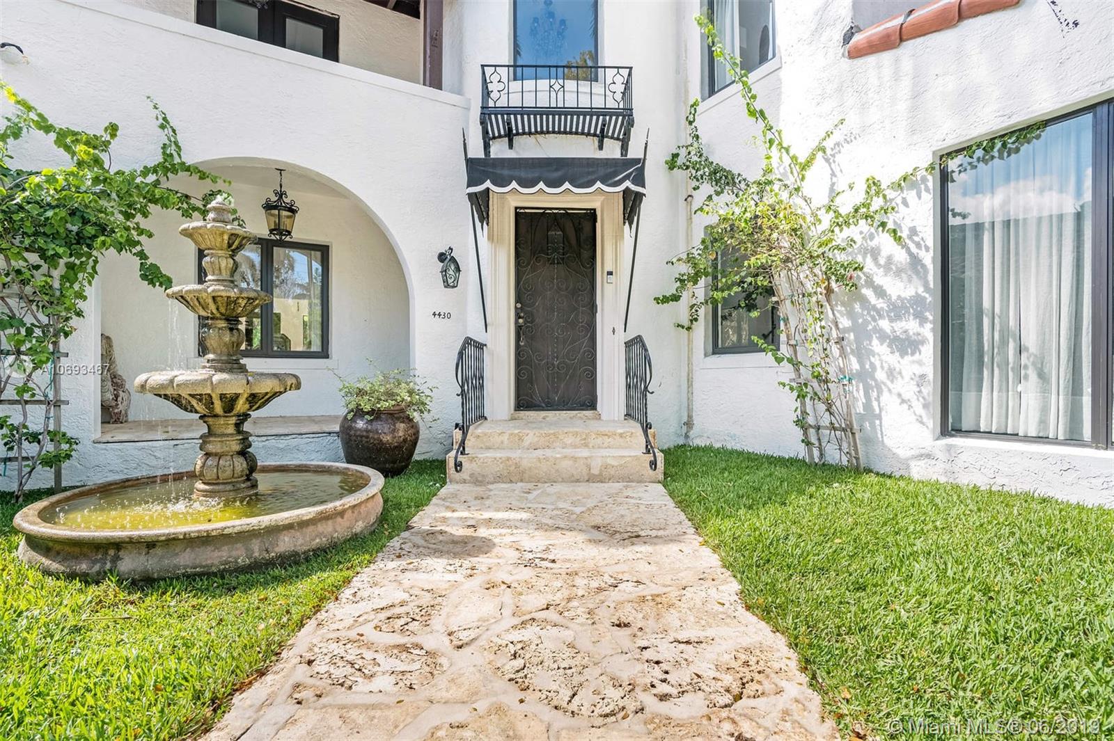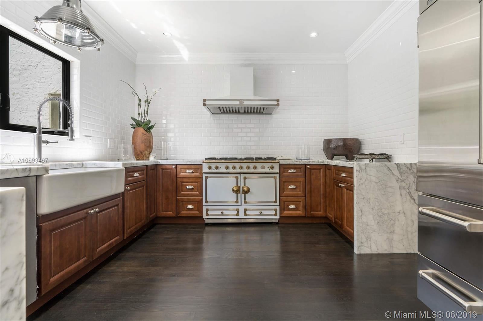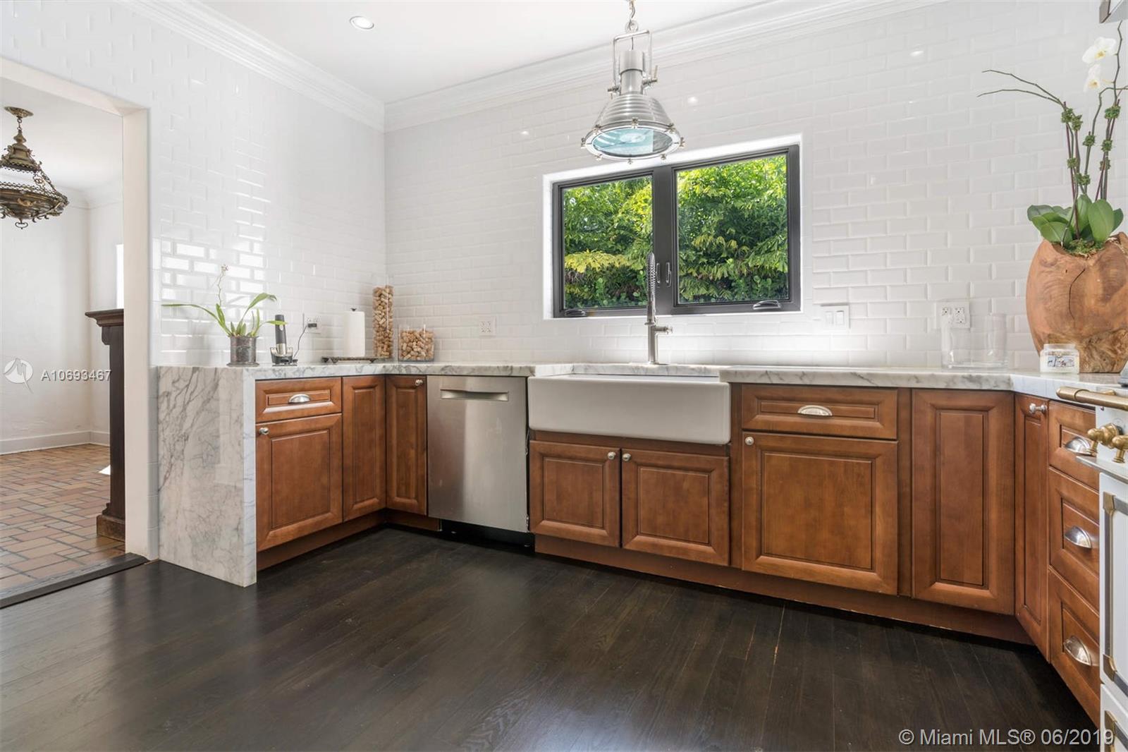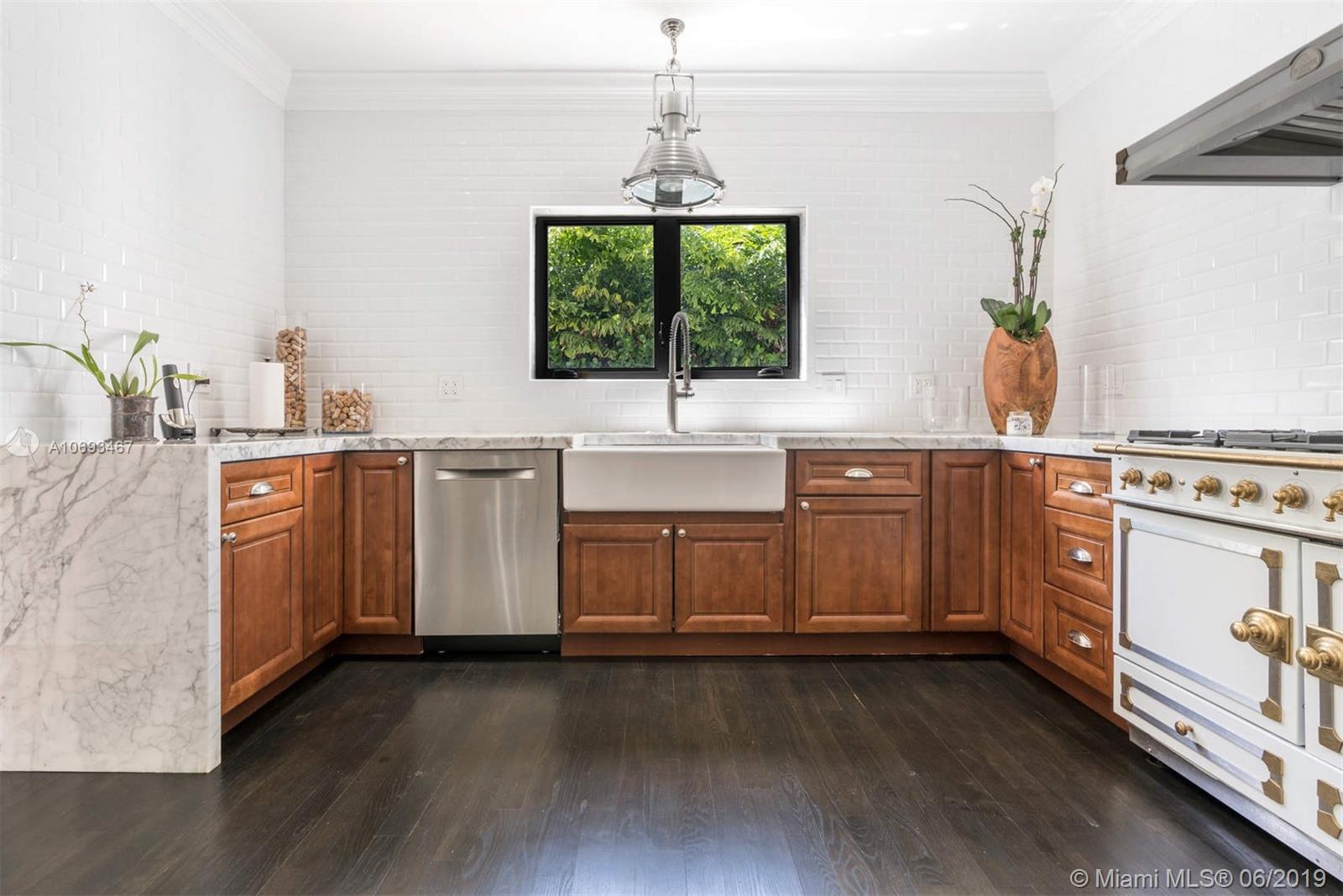Stunning old Spanish style remodeled home with 3600+ square feet. Brand new barrel roof, impact windows, master bath, new custom kitchen, brand new Subzero fridge & La Cornue oven & hood fan combo. Huge living room w/ fireplace & hardwood floors. TV/media room off the living room. 1st floor bdrm (4th bdrm) or office with private side entrance. Brand new pool & patio areas. Guest home can be finished to the buyers needs (guest home/spa/office/5th bdrm- buyers choice. Three bdrms upstairs all very good sized. Balcony off the master (front) & balcony off the back bdrm. Circular driveway for easy in & out. Off street parking for 6 cars + carport. Master bath suite has solid copper soaking tub & separate dual heads shower room. This elegant home offers exterior patio/lounge area and private sec