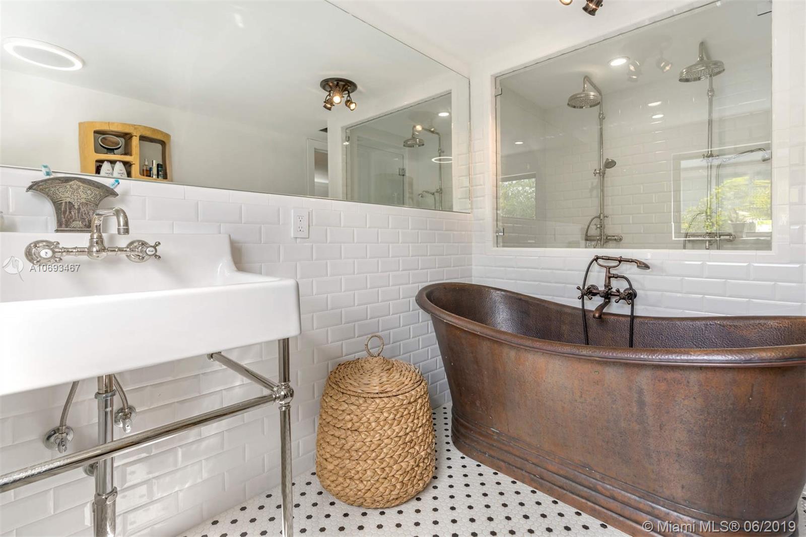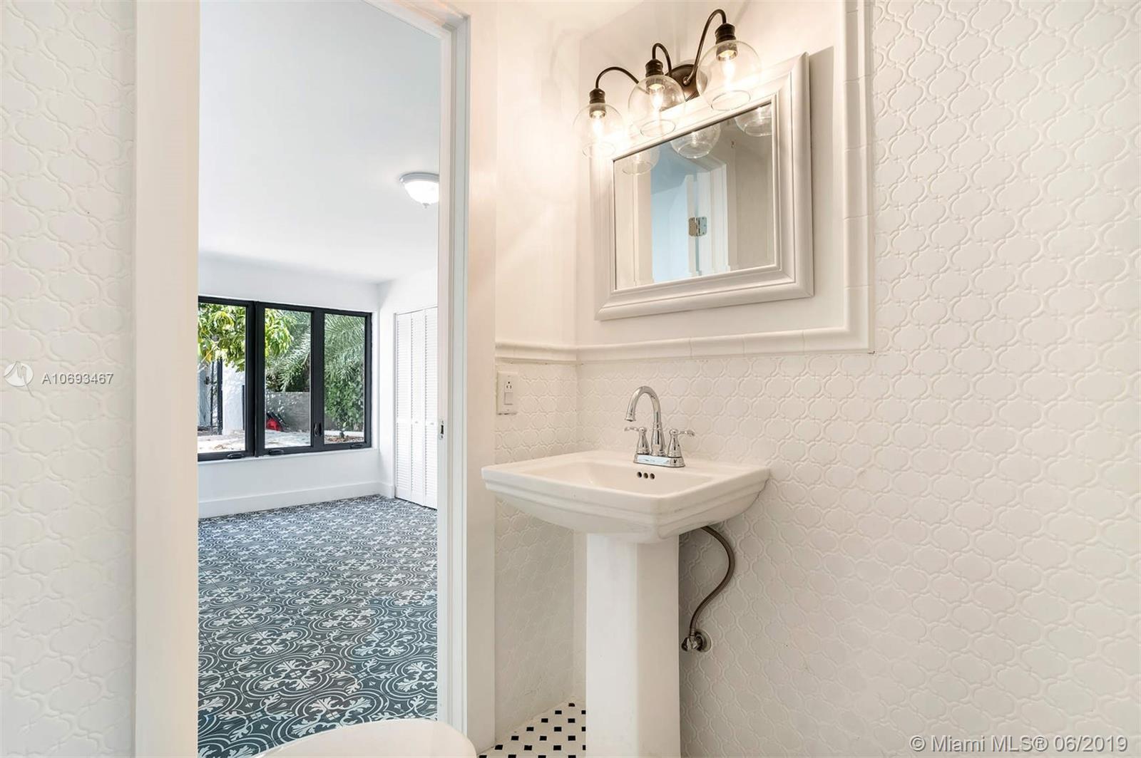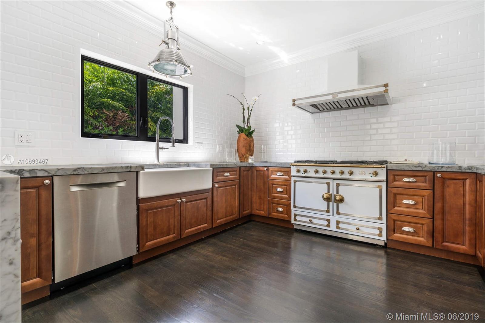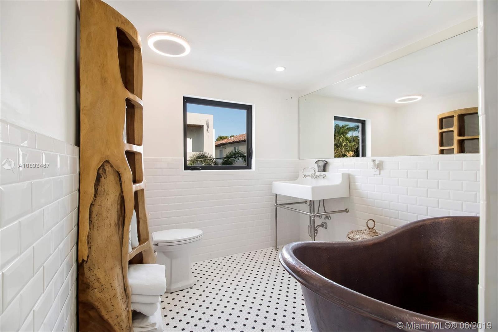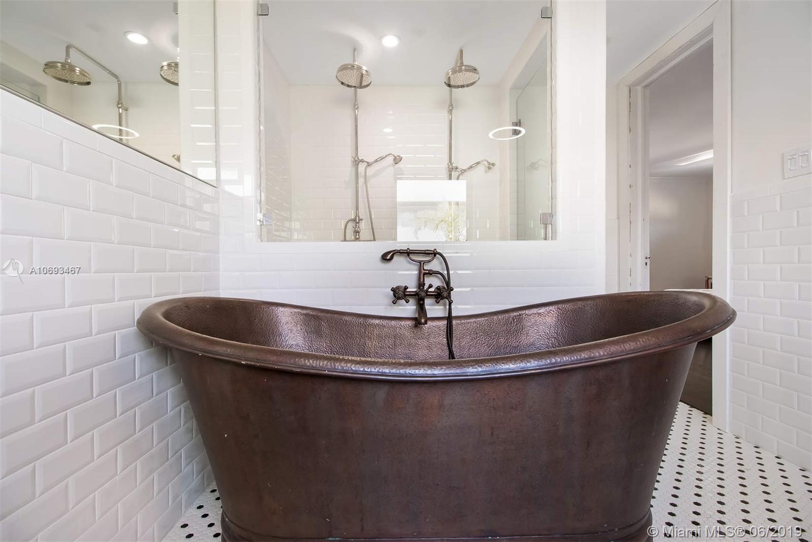 Stunning old Spanish style remodeled home with 3600+ square feet. Brand new barrel roof, impact windows, master bath, new custom kitchen, brand new Subzero fridge & La Cornue oven & hood fan combo. Huge living room w/ fireplace & hardwood floors. TV/media room off the living room. 1st floor bdrm (4th bdrm) or office with private side entrance. Brand new pool & patio areas. Guest home can be finished to the buyers needs (guest home/spa/office/5th bdrm- buyers choice. Three bdrms upstairs all very good sized. Balcony off the master (front) & balcony off the back bdrm. Circular driveway for easy in & out. Off street parking for 6 cars + carport. Master bath suite has solid copper soaking tub & separate dual heads shower room. This elegant home offers exterior patio/lounge area and private sec
