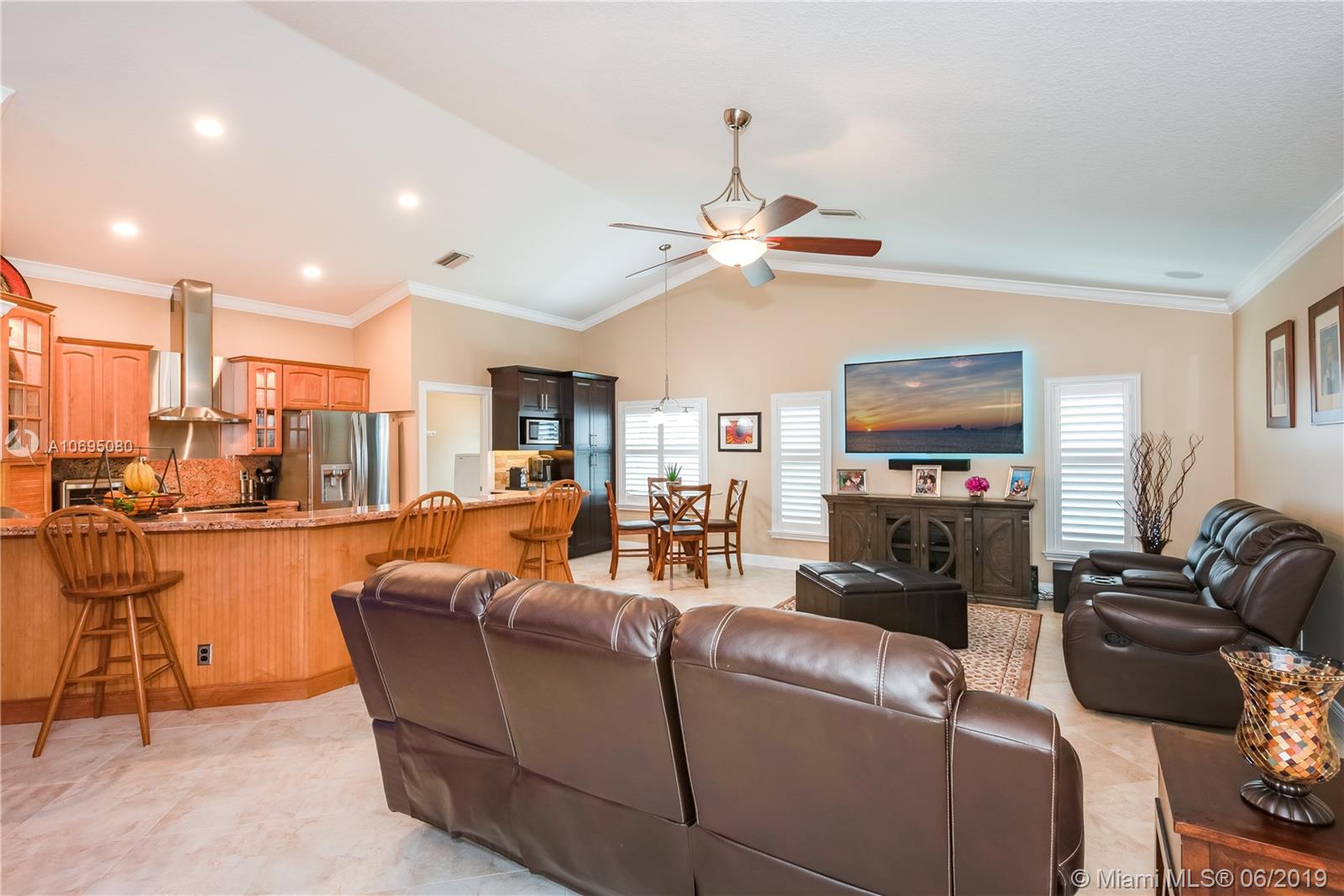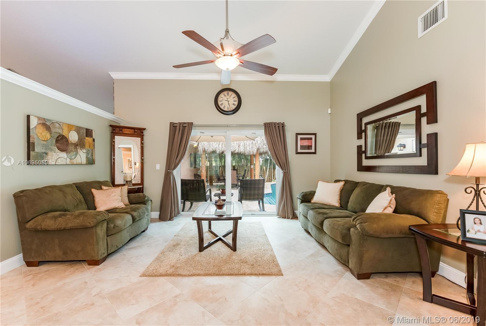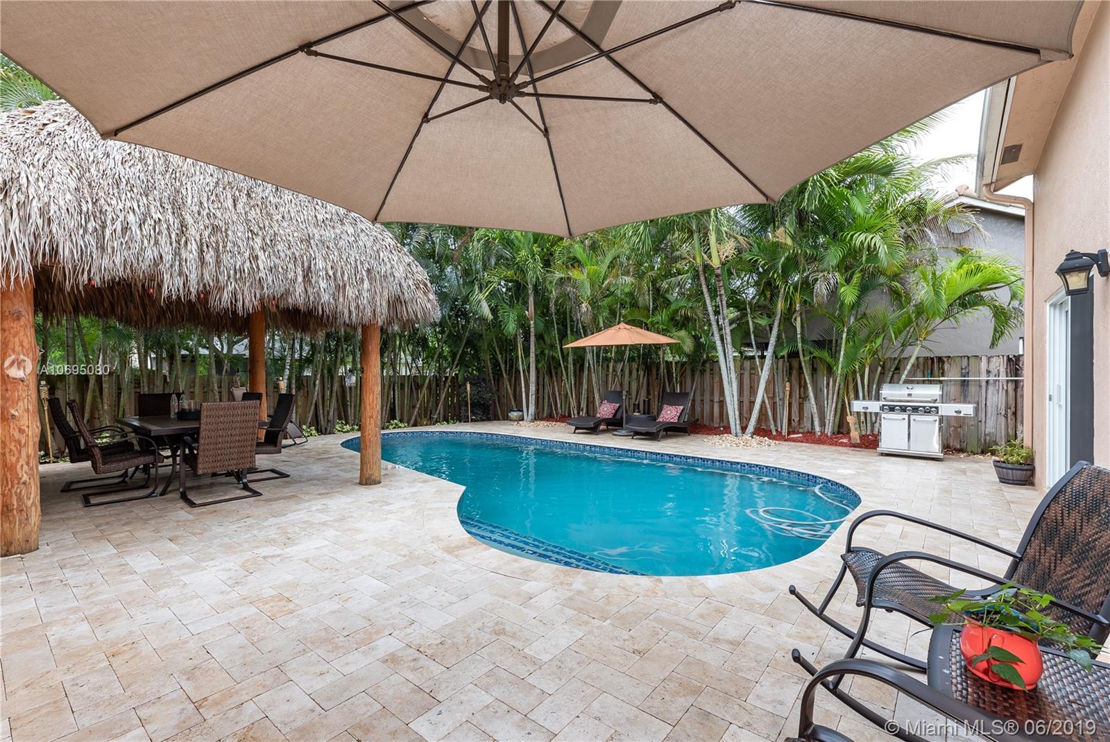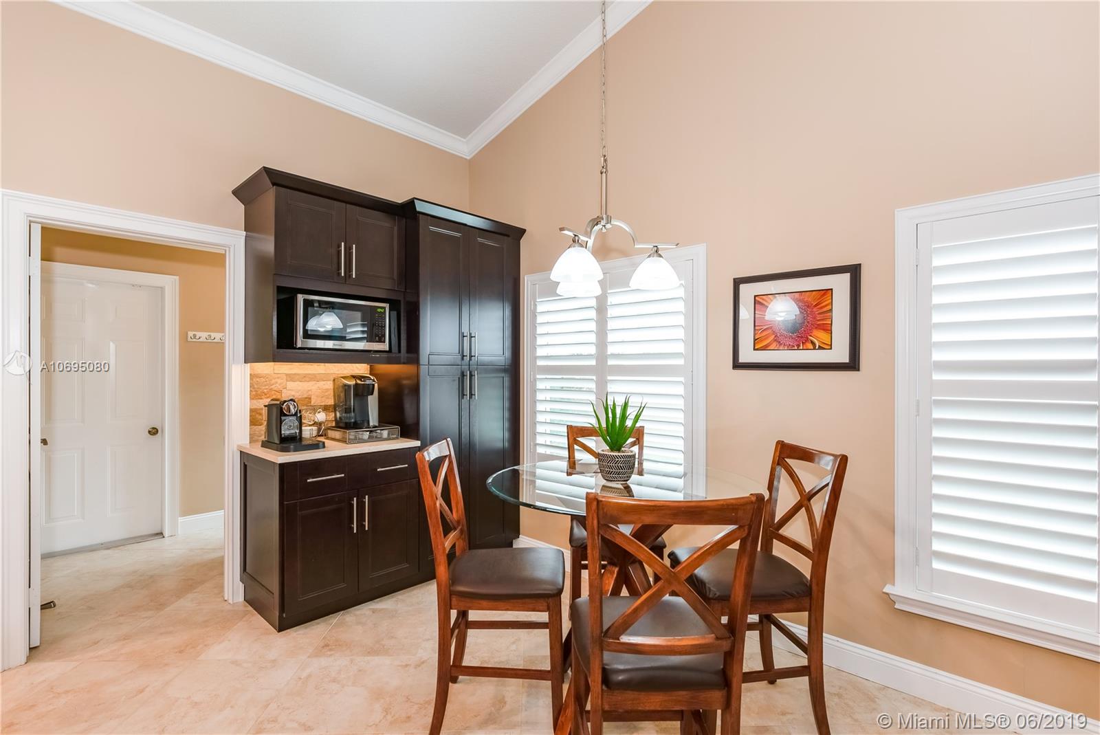 Wow! Over $95,000 in upgrades in this 4/2.5 Davie pool home. HIGH END features include all impact windows & doors, crown molding & baseboards, plantation shutters with moldings, gorgeous door frames & more. Handy Coffee bar with pantry and Airstone backsplash Phenomenal wine bar with cabinet & Airstone tile wall. Kitchen is remodeled with stainless stovetop hood & kenmore elite appliances. Walk outside to a perfect Florida patio complete with travertine deck, remodeled salt water pool & wired Tiki hut. Open concept floor plan is drenched in natural lighting from the abundant windows & high ceilings. Updated 1/2 bath. Pristine condition throughout this turn-key home. Arboretum is a friendly neighborhood located close to highways shopping & restaurants. Excellent Davie schools. Must see!