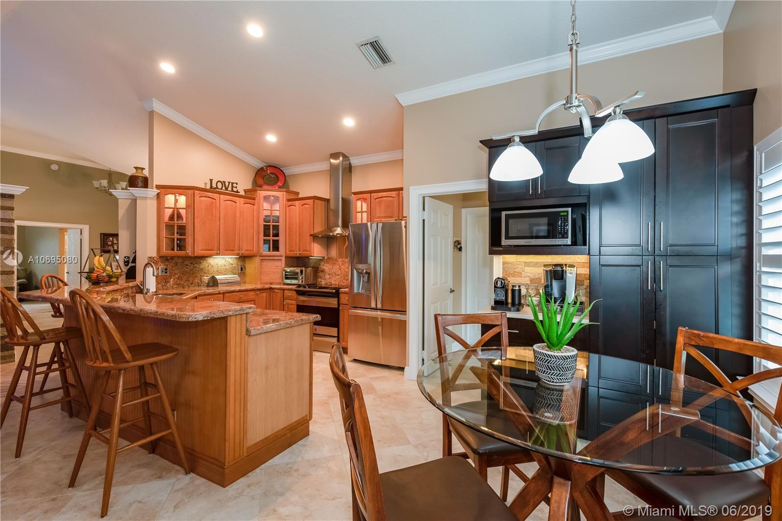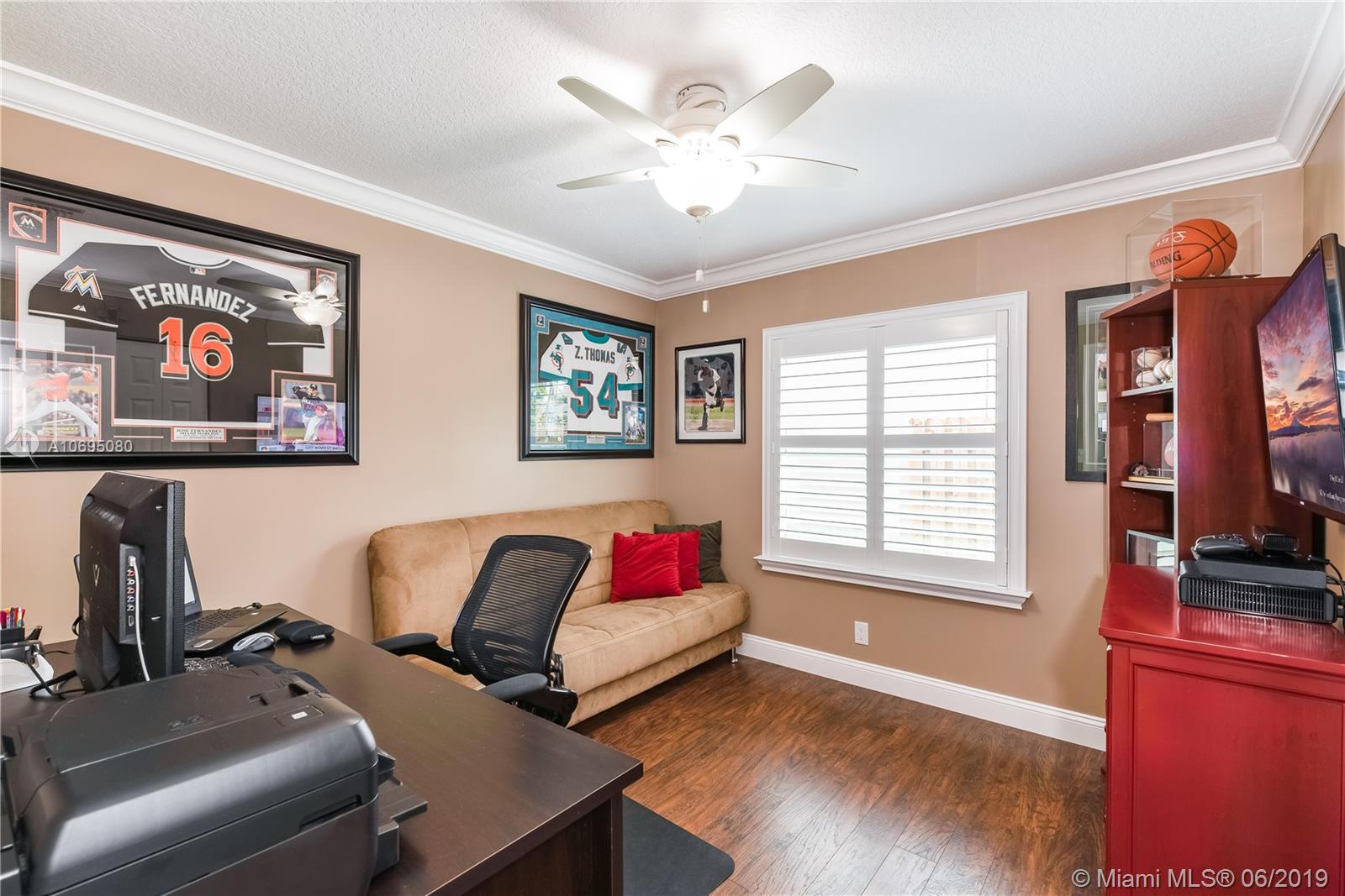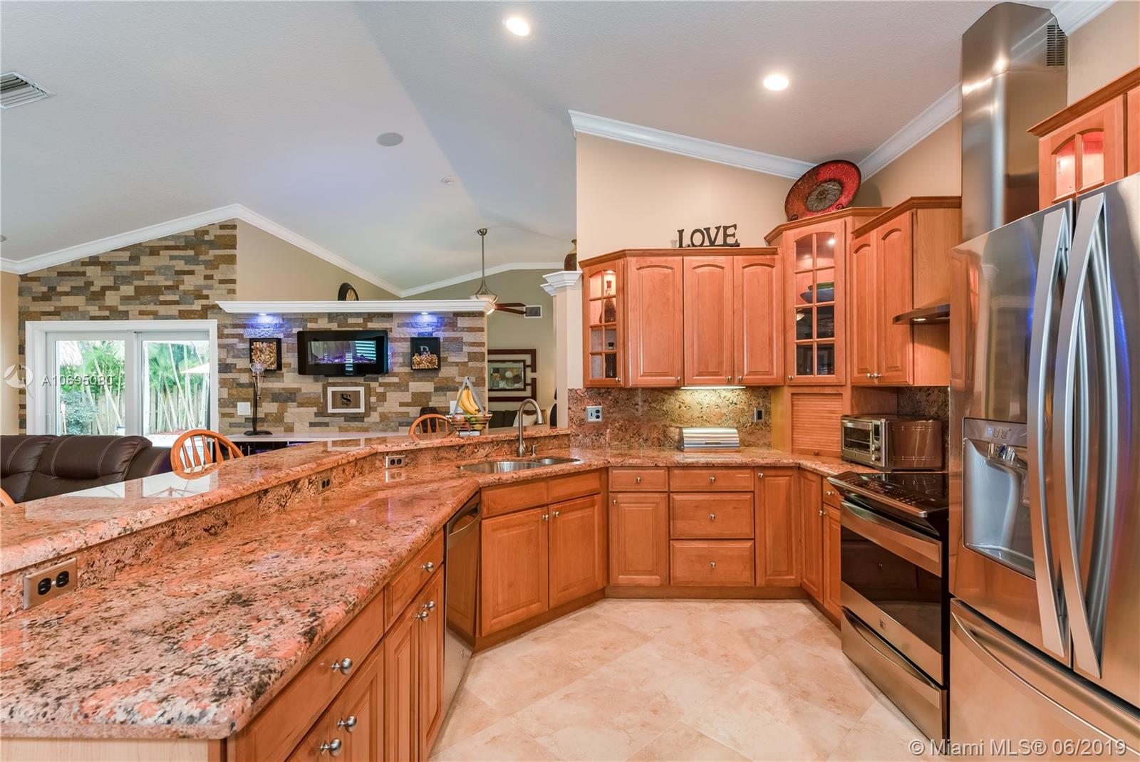 Wow! Over $95,000 in upgrades in this 4/2.5 Davie pool home. HIGH END features include all impact windows & doors, crown molding & baseboards, plantation shutters with moldings, gorgeous door frames & more. Handy Coffee bar with pantry and Airstone backsplash Phenomenal wine bar with cabinet & Airstone tile wall. Kitchen is remodeled with stainless stovetop hood & kenmore elite appliances. Walk outside to a perfect Florida patio complete with travertine deck, remodeled salt water pool & wired Tiki hut. Open concept floor plan is drenched in natural lighting from the abundant windows & high ceilings. Updated 1/2 bath. Pristine condition throughout this turn-key home. Arboretum is a friendly neighborhood located close to highways shopping & restaurants. Excellent Davie schools. Must see!