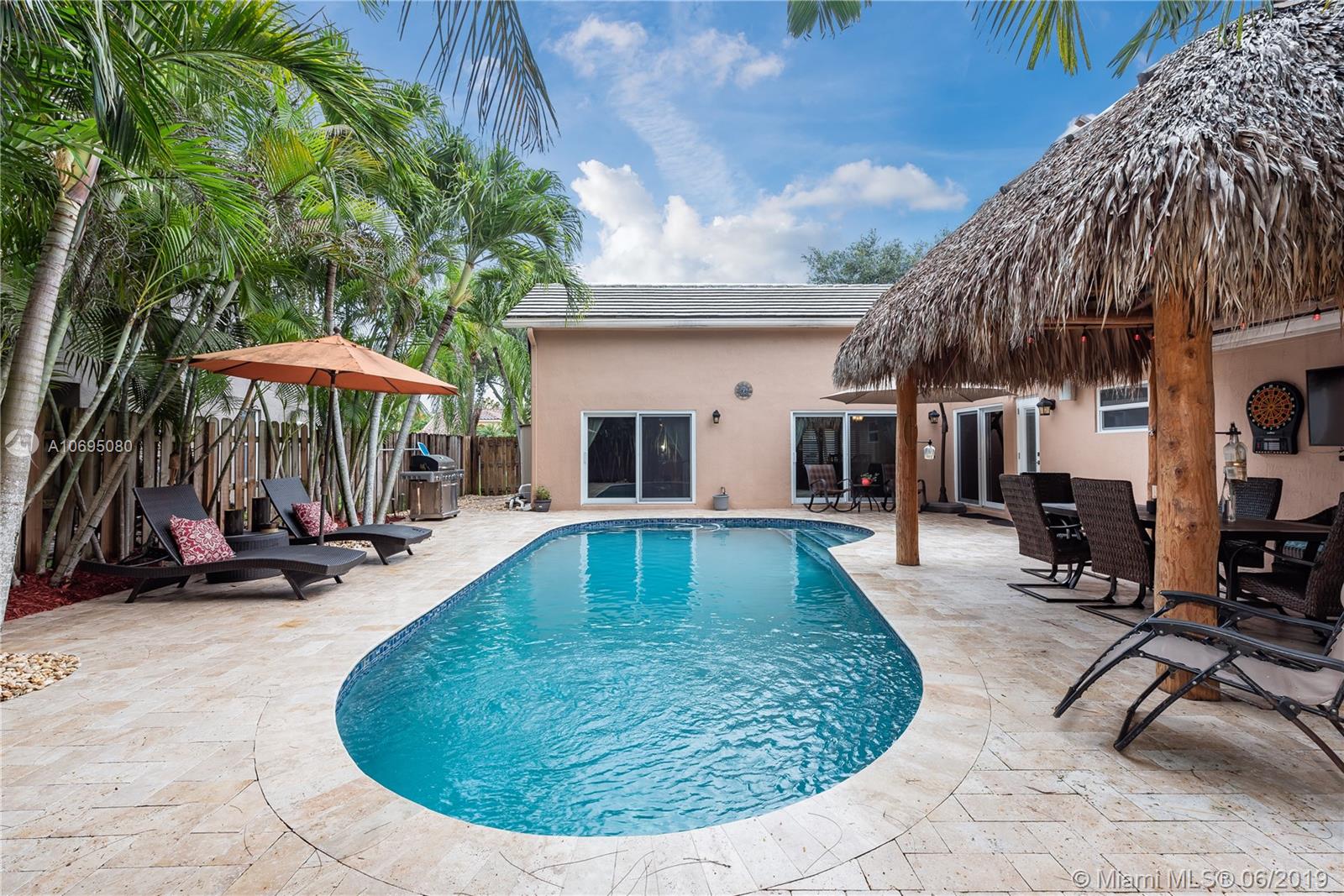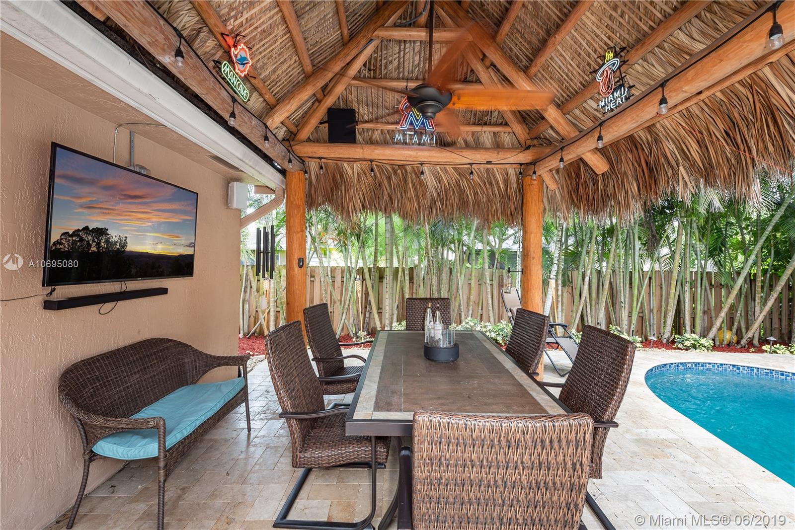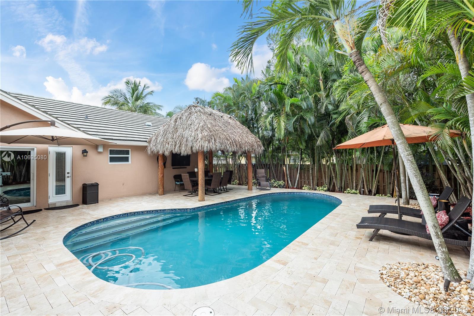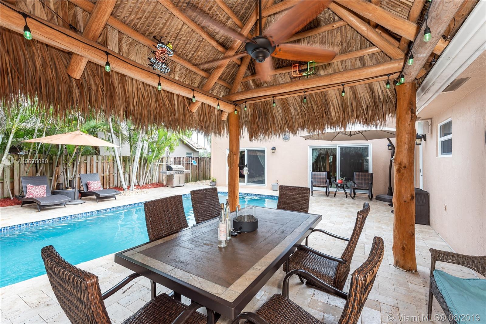 Wow! Over $95,000 in upgrades in this 4/2.5 Davie pool home. HIGH END features include all impact windows & doors, crown molding & baseboards, plantation shutters with moldings, gorgeous door frames & more. Handy Coffee bar with pantry and Airstone backsplash Phenomenal wine bar with cabinet & Airstone tile wall. Kitchen is remodeled with stainless stovetop hood & kenmore elite appliances. Walk outside to a perfect Florida patio complete with travertine deck, remodeled salt water pool & wired Tiki hut. Open concept floor plan is drenched in natural lighting from the abundant windows & high ceilings. Updated 1/2 bath. Pristine condition throughout this turn-key home. Arboretum is a friendly neighborhood located close to highways shopping & restaurants. Excellent Davie schools. Must see!