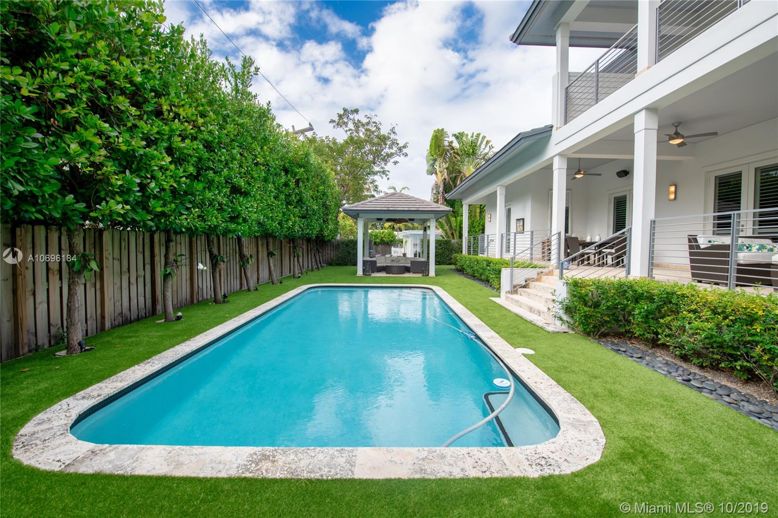 Come see this beautiful, modern home built in 2012. Home includes six bedrooms and five bathrooms with elegant, marble floors throughout. Home has lots of natural light. Dreamy, open chef kitchen offers top of the line appliances perfect for cooking and entertaining. Open floor plan features large living, dining and family room plus a cozy wet bar area with a wine fridge and ice maker with Sonos speakers installed in every room. High ceilings, large bedrooms and bathrooms offer the perfect floor plan fit for comfort, privacy and space. Quality impact windows and doors, heated pool, artificial turf, charming gazebo, and a large covered patio in the backyard for further space for entertaining. Carport for two cars, private staff quarters, and more.
