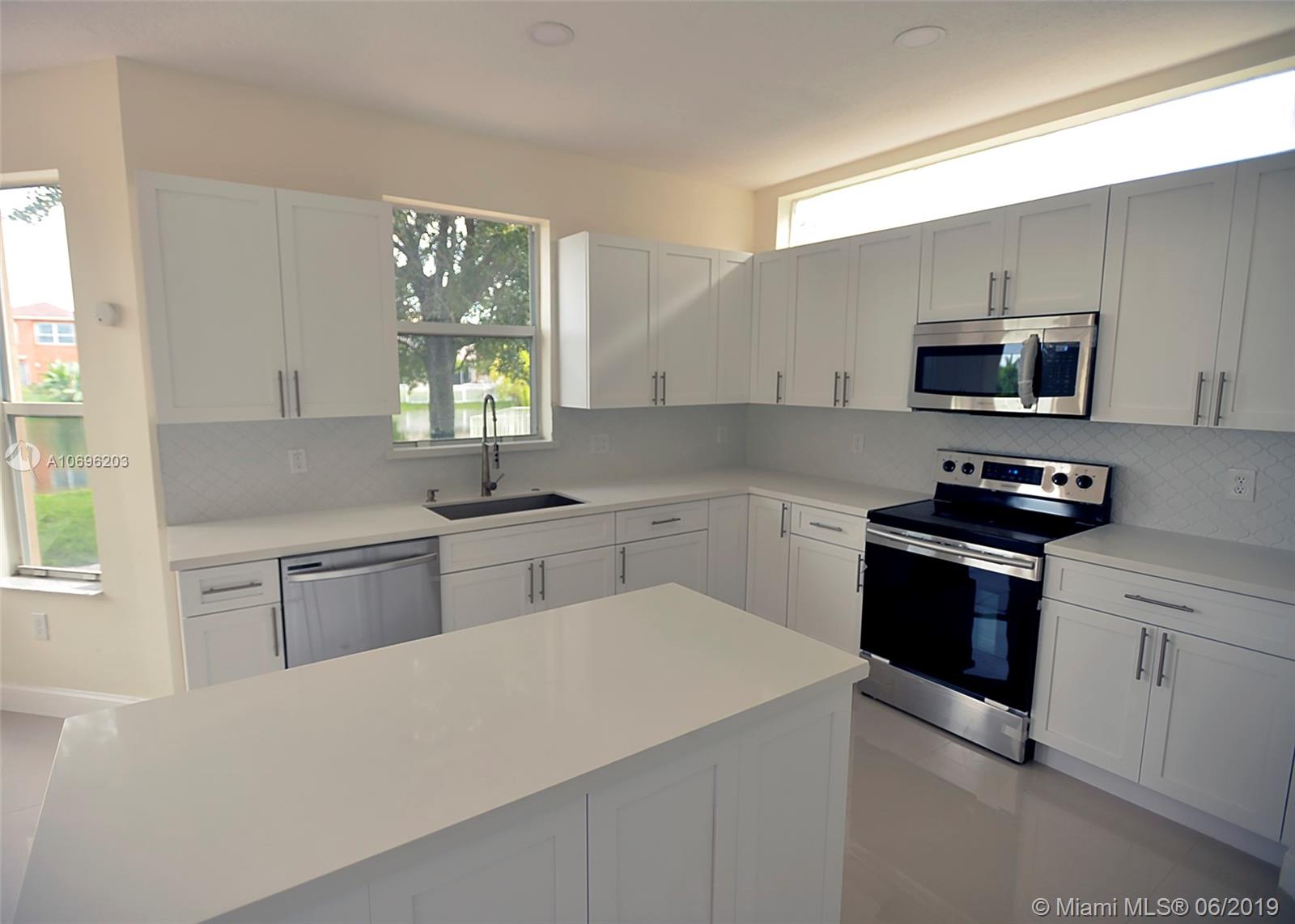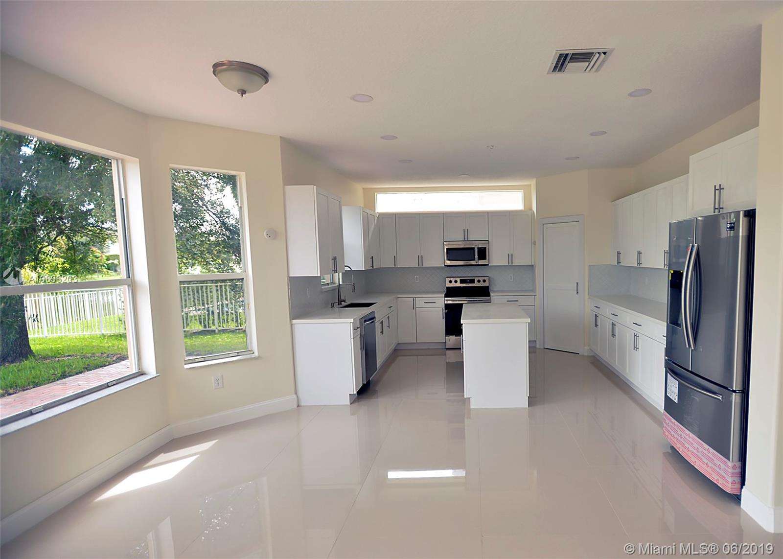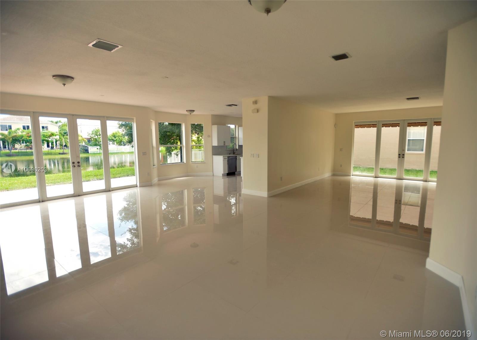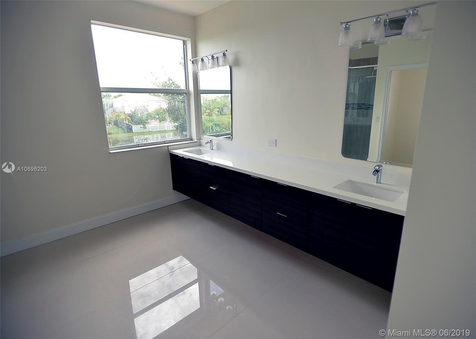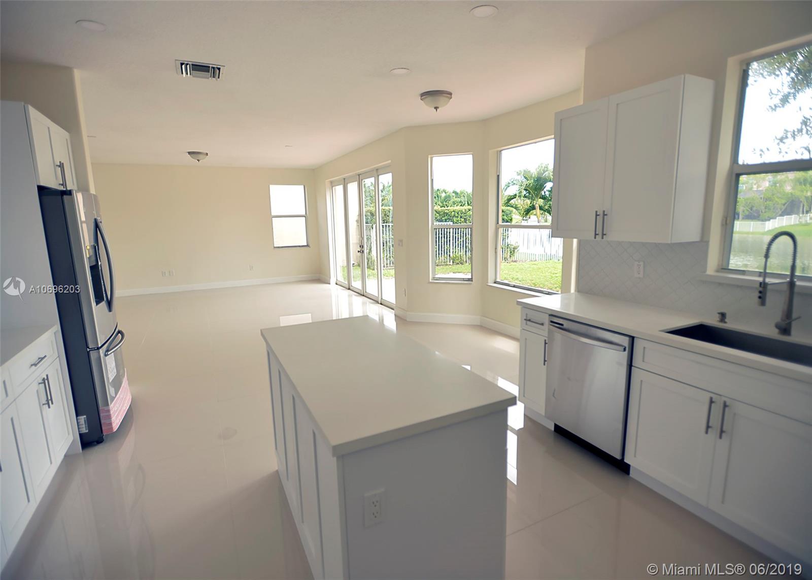 Gorgeous, lake view 2 story home in Riviera Isles. Remodeled, large 5/3.5, 2 car garage with den off of Master. Open floor plan with high ceilings. New kitchen with Quartz counters and stainless appliances. Stunning new floors throughout. Master bedroom upstairs with over sized walk-in closet, glass enclosed shower, and dual sinks. Bedroom on 1st floor with full bath. Laundry room with cabinets, and storage. Enjoy the lake view from the over-sized patio. Shutters on all windows. HOA fee includes: Two 24 hour guard gates, resort style pool, kid's play area, 2 tennis courts, 3 basketball courts, clubhouse & fitness room. Close to shopping & major highways.