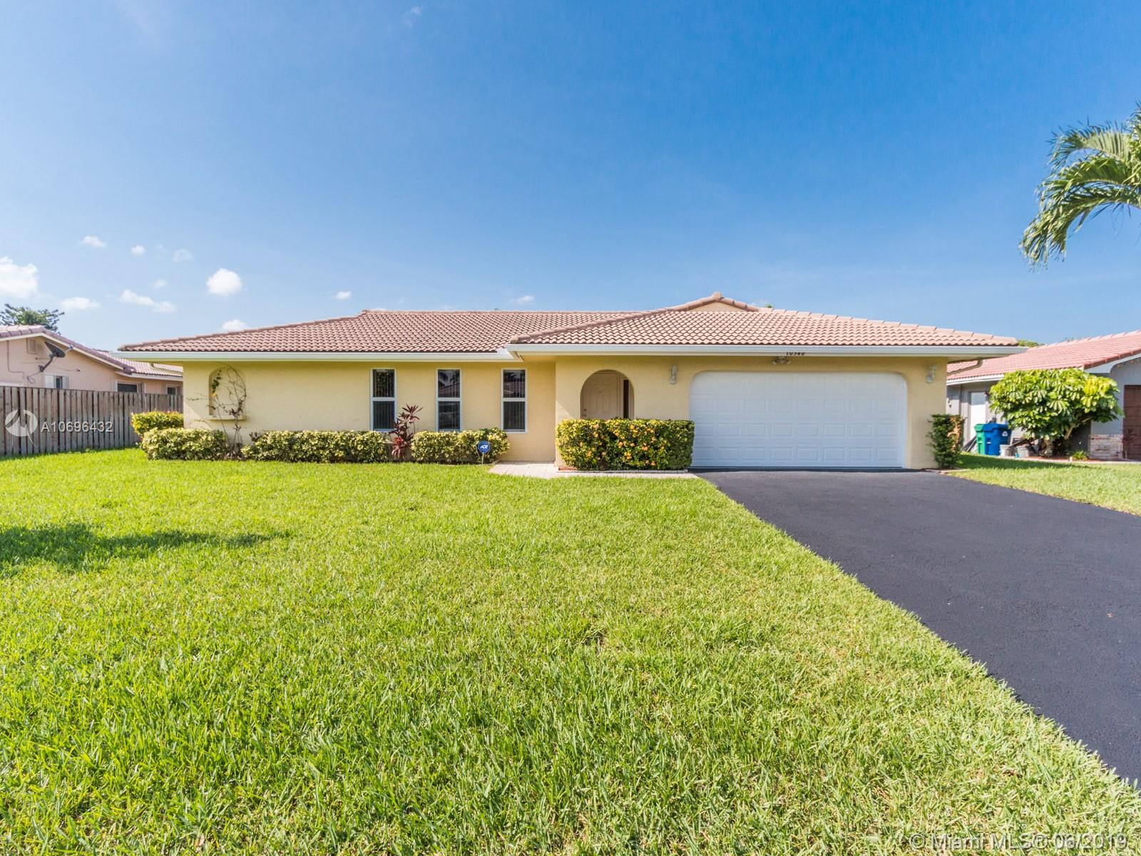 WOW! Just a well-kept and move in ready 4/2 split Single-family one-story home in Coral Springs. Brand new kitchen with quartz counter top, marble back splash and updated recessed and LED lighting. 20” tiles in kitchen, foyer and family room. Impact windows and doors throughout. Walk-in closet in master and good size bedrooms. Enjoy the nice large screened patio (with a pass thru bar area from the kitchen for great entertainment) that looks out on to a lovely backyard with space for pool and play area. Of course, the "A" rated Coral Spring schools are nearby together with many parks, recreation and the aquatic complex for your enjoyment. Home is located the near the end of a cul-de-sac. Bring all offers. Call me now for a showing!
