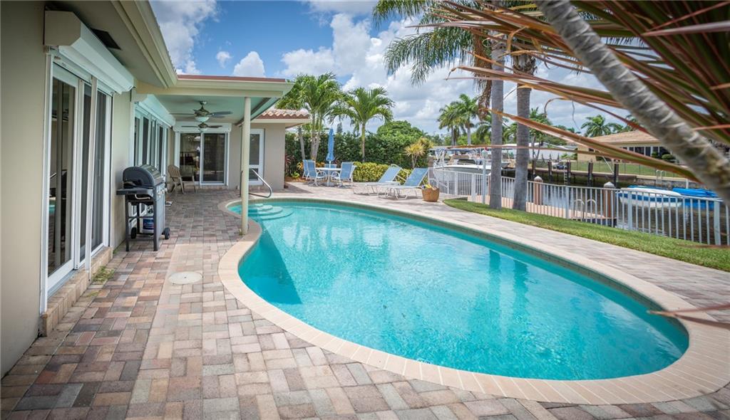 A picture perfect house. Completely redone! Beautiful long canal views with a pristine pool, pavered patio and large yard. Ocean access waterfront & new dock. Circular pavered driveway, mature landscaping, Impact windows & sliders, neutral 24” tile throughout, new bathrooms and organizational storage shelving throughout! Open kitchen with stainless steel appliances, granite and entertainer’s island. A very low maintenance home. Great location. Near numerous schools, easy access to I-95 and the beaches. Can be purchased furnished.