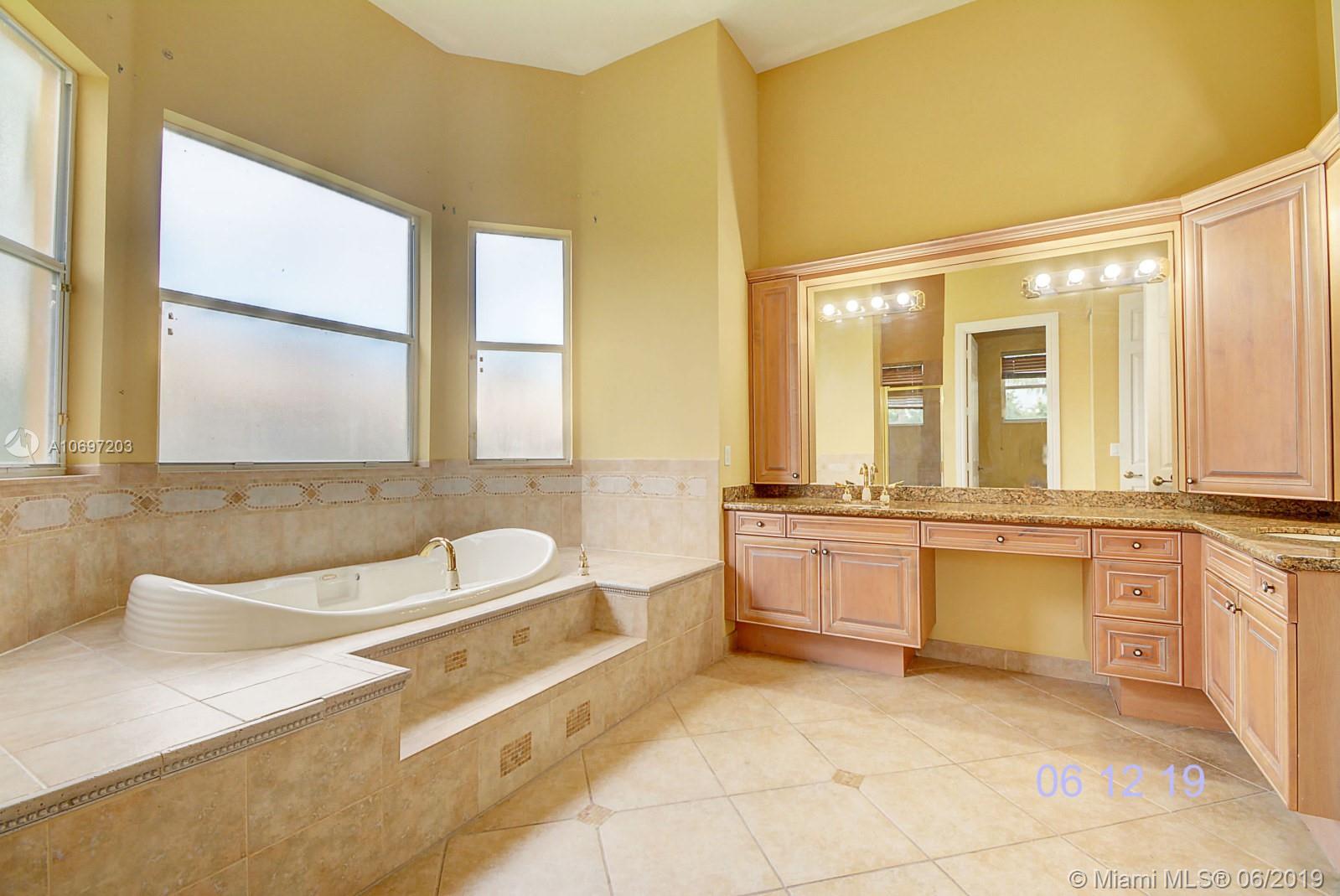 Large 6 bed/6.5 bath pool home w/3CG located on a builder’s acre in the central section of Plantation Acres. Every bedroom has its own bathroom. Large 2nd story Casita w/1 bedroom/1 bath & its own living room area. Tri split design makes it a great layout for the entire family, in-laws and visiting guests. Large covered patio area with built-in grill with beautiful pool view. Home has crown molding, 3 zone AC design, butler pantry, laundry room with tub, large courtyard area, fenced yard, circular driveway, etc. Home needs some repairs but has great potential.Great location w/American Heritage school nearby.All offers must be submitted by the buyer’s agent using the online offer management system via info in the Broker Remarks.
