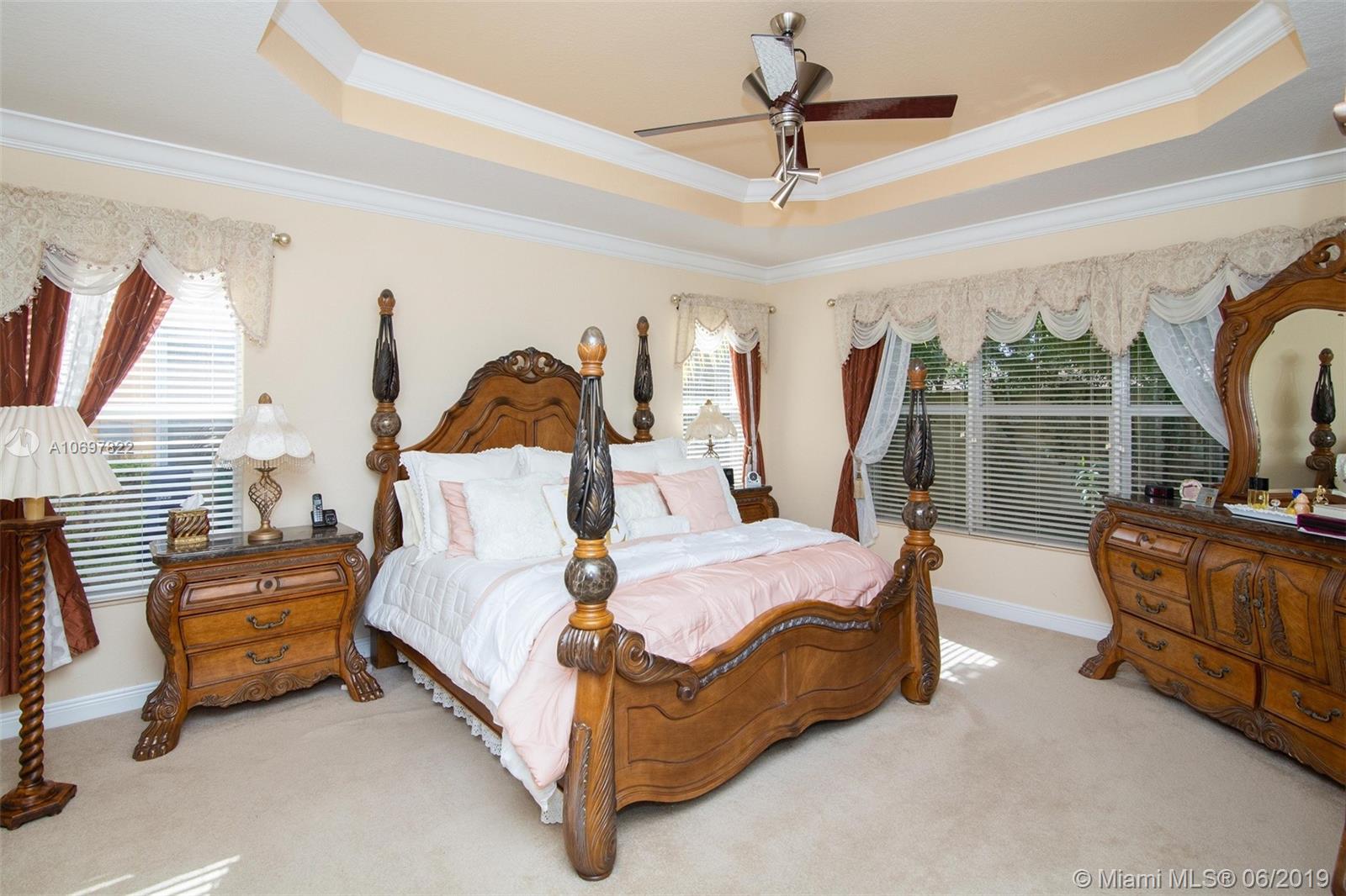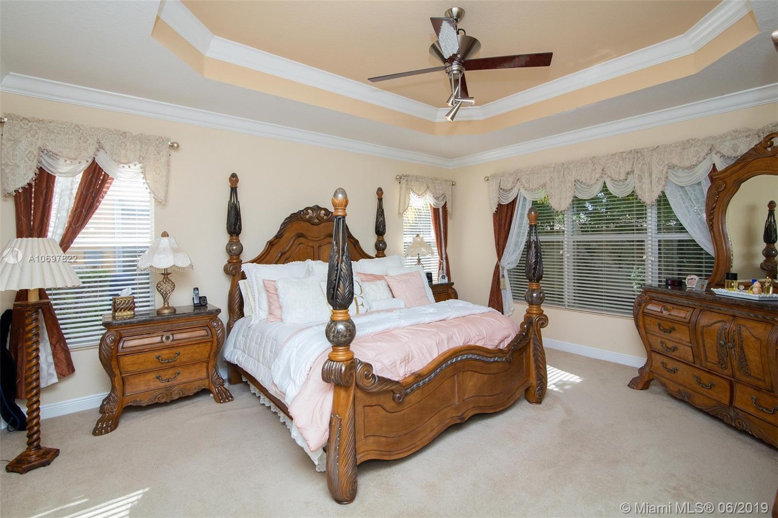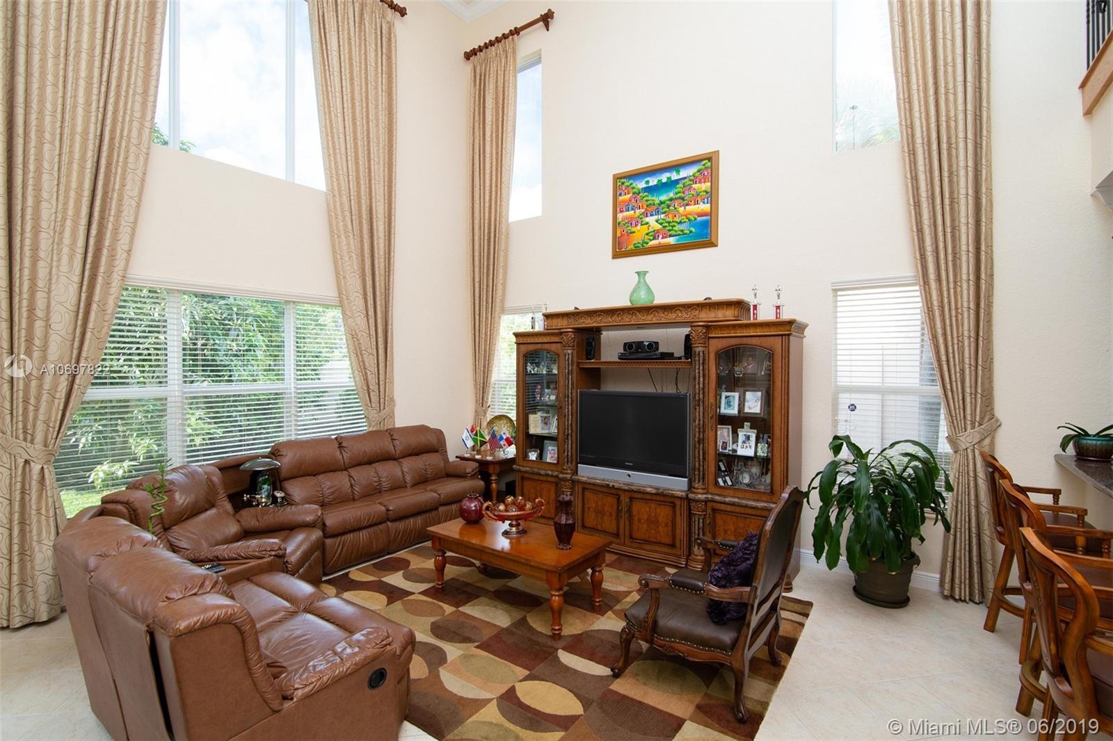 NEWLY PRICED FOR A QUICK SELL!!! Stunning mini mansion located in highly sought-after Sunset Falls Community. Spacious 2 story, 3 car garage, 5 bdrms 3 ½ bathrms. Large Master Suite downstairs. Endless custom upgrades throughout. No expense spared. Gorgeous Gourmet Kitchen, SS appliances, Brand new refrigerator, Granite countertops, wooden cabinets & double oven gives this kitchen the ultimate elegant look & perfect atmosphere to entertain family & friends. Family room & additional spacious sitting areas throughout, including an extra Loft area upstairs. Property encompasses high-end accordion hurricane shutters, designer window treatments, crown moldings, upgraded staircase & much more. State of the art 7 camera-surveillance system & Formal Dinning Chandelier Excluded