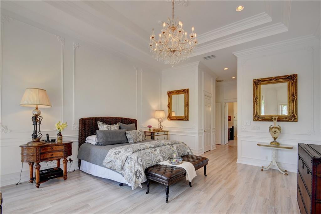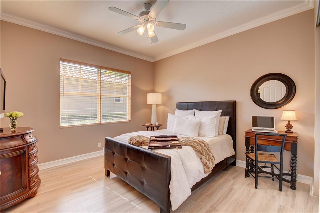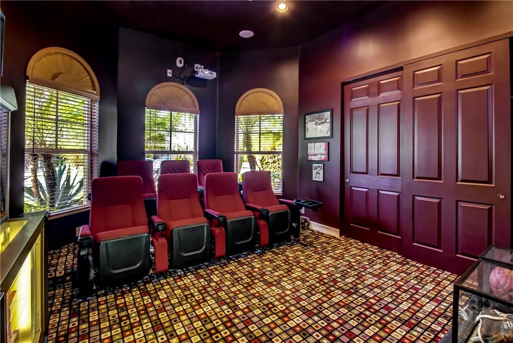 Amazing Waterfront Golf Views In This Popular Tri-Split 5 Bedroom, 4 Bathroom Pool Home w/3-Car Garage! Newer A/C Units, New Laminate Floors In All Beds, High Ceilings w/Crown Molding. Entertain In Style In The Spacious Covered Patio Area w/Resurfaced 2018 Glass Tile Salt Water Pool & Spa Overlooking Golf Course & Lake. Custom Kitchen w/Granite Counters & Island & Newer Stainless Steel Appliances. 5th Bed Converted To Full 7-Seat Movie Theater w/Authentic Built-In Seating, Commercial Grade Theater Carpeting, & Illuminated Candy Counter - Can Easily Be Converted Back to 5th Bedroom or Office. Master Suite w/Sitting Area & Crown Molding, Wainscoting, Built-In Closets, Separate Shower & Jetted Tub! Enjoy Resort-Style Amenities, 24-Guard Gated Community, & A-Rated Schools, Must See!