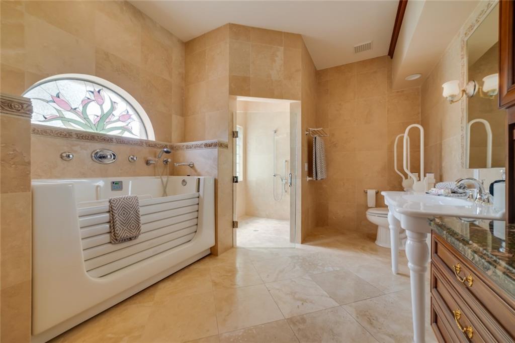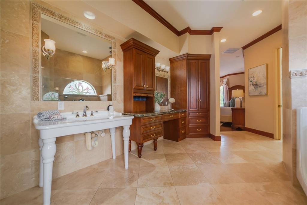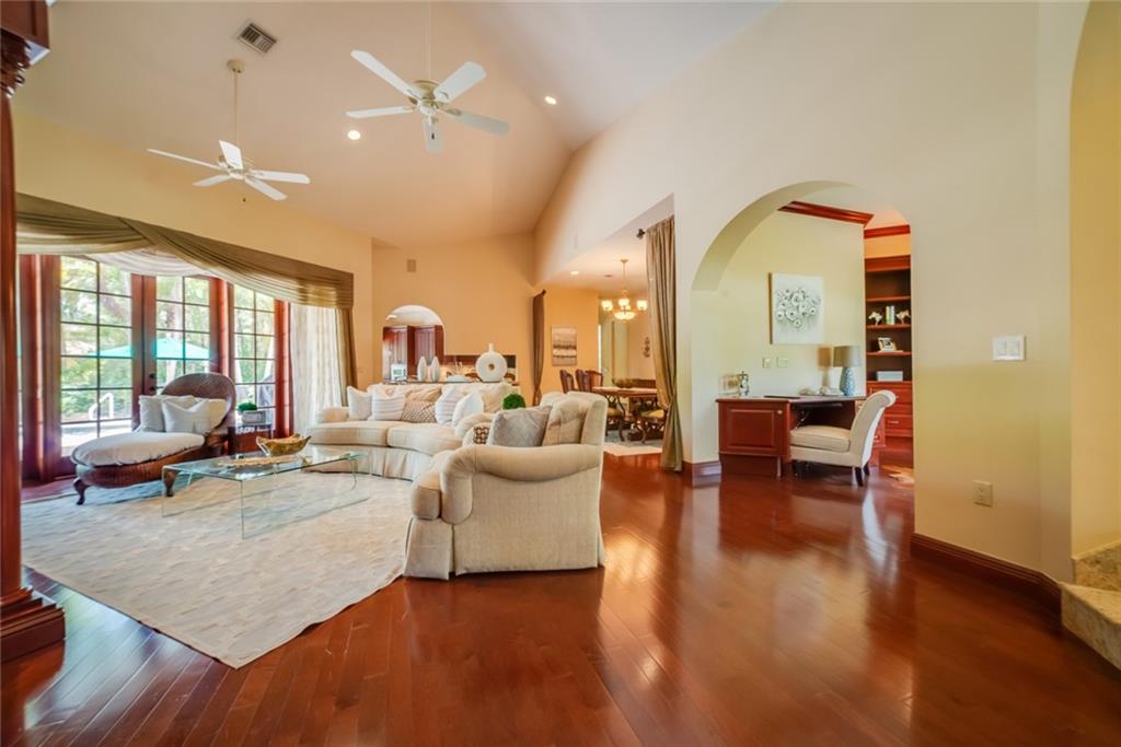 Welcome home to this generously spacious residence.Open floor plan encompasses 3 spacious bedrooms and 3 bathrooms. Warm cabinetry in the chef’s kitchen complete with Newer S/S app,Gas dbl oven,Granite counters w/ vaulted ceilings.Owner’s suite sits privately on the east side of the property & offers an over sized bathroom with separate tub/shower.Walk in closet(can host over 1000 shoes)Additional Bedrooms equipped with walk in & step in closets. Jack and Jill bathroom connecting and access to outside pool area.The expansive living room is great for entertaining or relaxing while looking over the tropical pool setting.Outdoor area offers a grilling station( gas )& paved walk ways to multiple sitting areas for relaxing.Enjoy all of your days swimming in the refreshing salt treated pool.