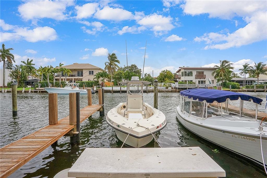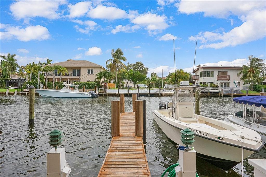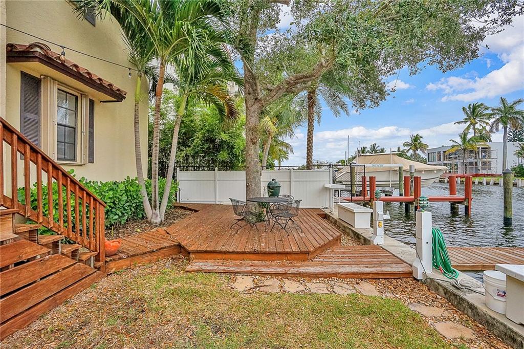 Gorgeous 2 bedroom 2.5 bath townhouse on the water, with deeded 35 foot dock and no fixed bridges. Only 6 units in this quaint complex, walking distance to the Lauderdale Yacht Club! Updated flooring throughout, this home boasts large bedrooms on the 2nd floor, with on suite baths. Half bath is conveniently located downstairs for guests while entertaining. Perfect location in sought after Rio Vista! Two common deck patio areas to use at your leisure. Tandem parking space and plenty of guest parking. Full size side by side washer and dryer located downstairs. Upgrades to the grounds including new turf grass and pavers coming soon! This is a must see as it will not last long!