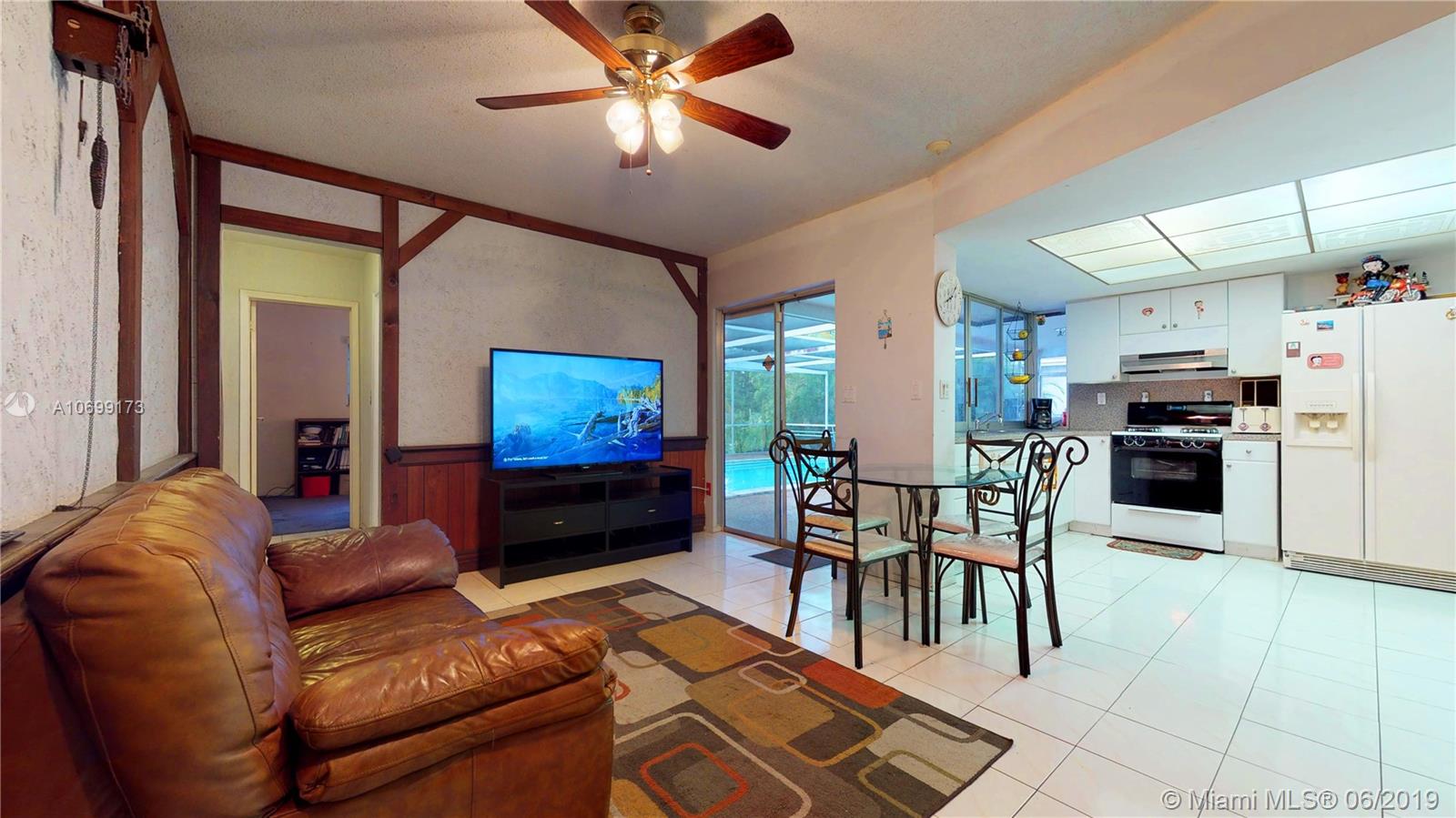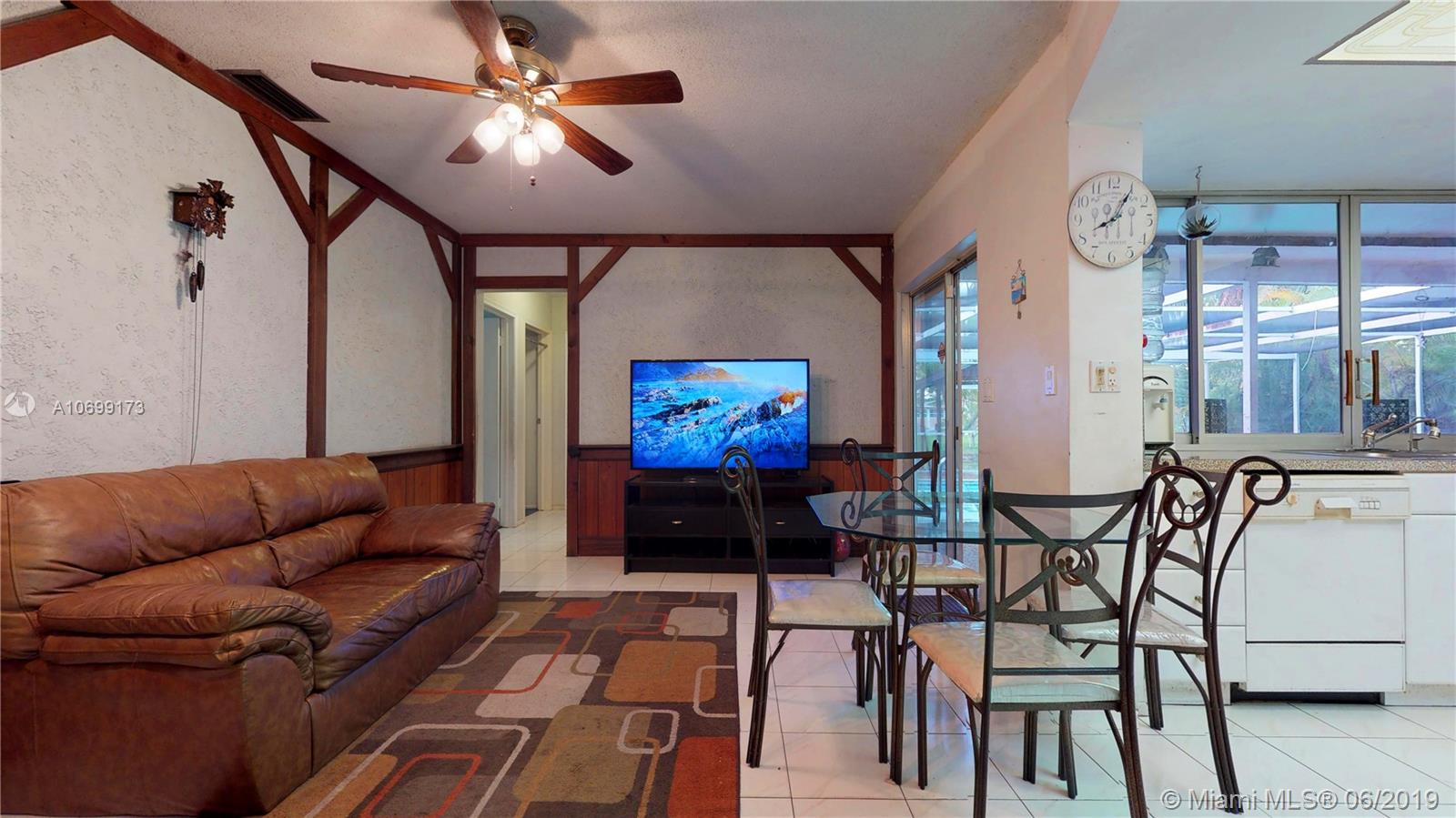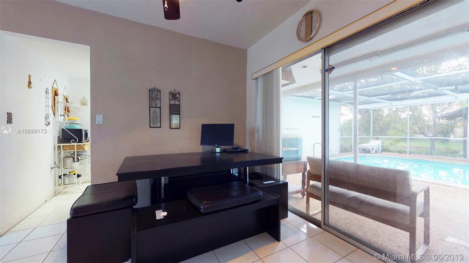 Great spacious family home on a large lot with screened in pool. Location, location, location. This home is blocks away from the Elementary school, nearby shopping center and easy access to highway. Up and coming area, so great opportunity to buy into a great area. New driveway (under 2 yrs.), both bathrooms remodeled, garage door replaced, pool view throughout the home, swimming pool floor resurfaced, water heater replaced (under 2 yrs.), A/C HVAC replaced (under 7 yrs.). Property has a Thailand mango tree, a Florida native mango tree, a Naseberry tree and a coconut palm tree.