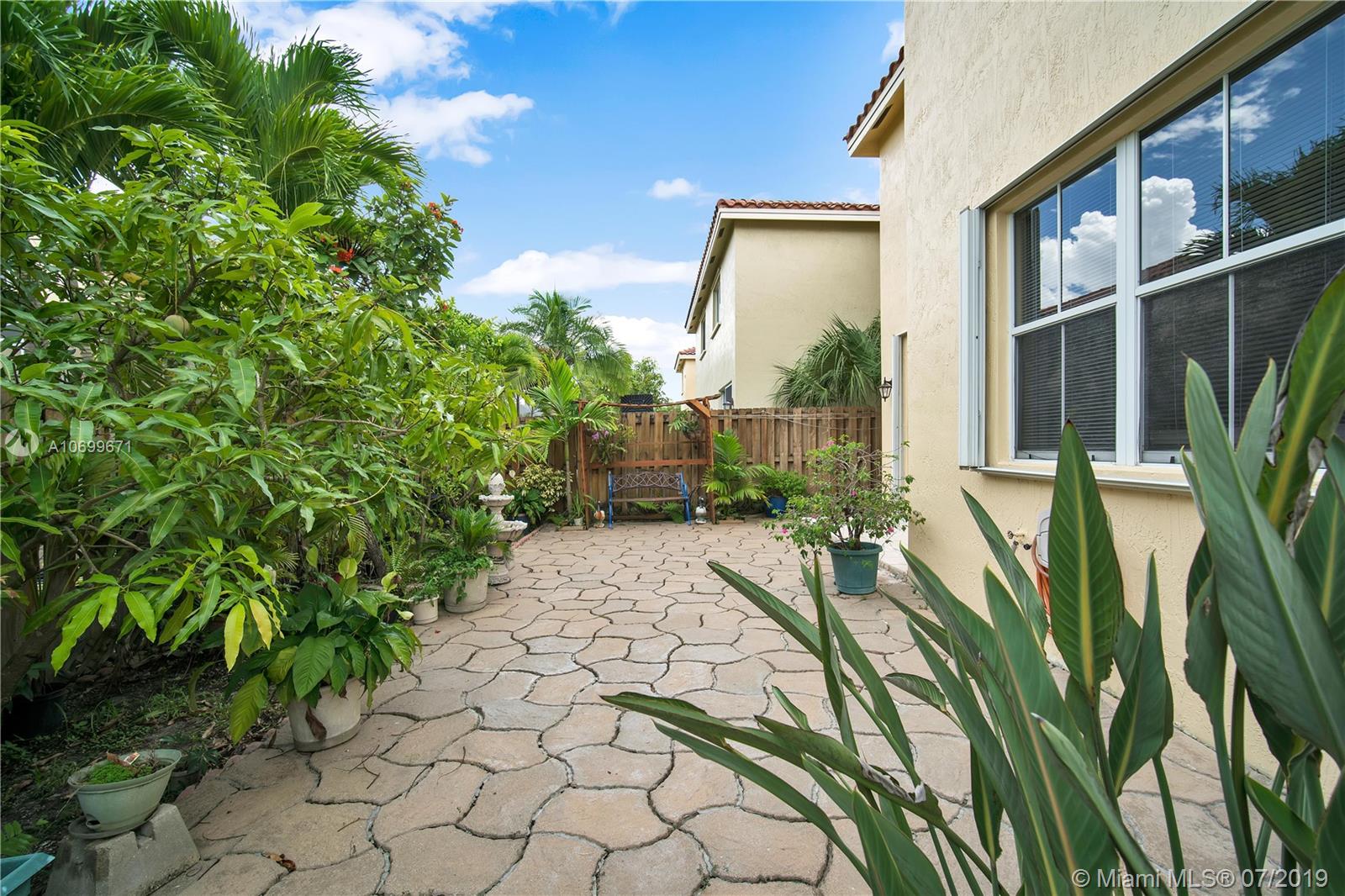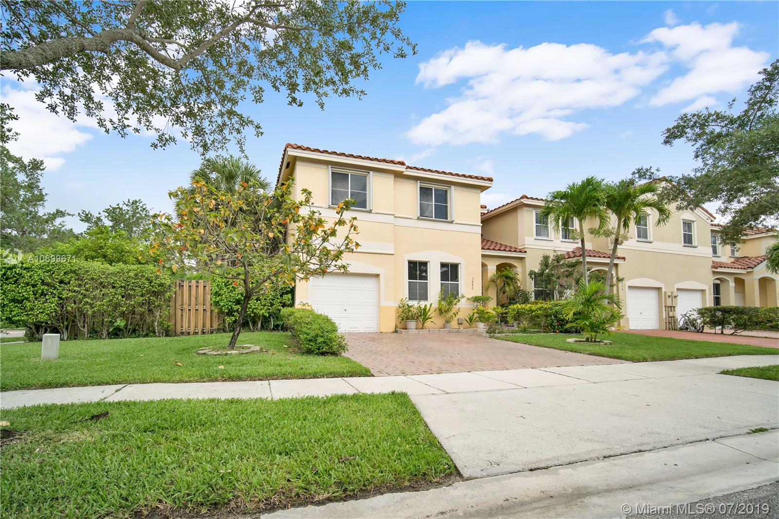 THIS CORNER TOWNHOME LOOKS LIKE A SINGLE FAMILY HOME. IT SITS IN THE HEART OF MUCH DESIRED CITY OF MIRAMAR IN THE PRESTIGIOUS GATED COMMUNITY NAUTICA. BEST VALUE FOR 3 BED/2.5 BATH & A LOFT THAT CAN BECOME 4TH BED. LARGE 1 CAR GARAGE & DRIVEWAY BIG TO PARK 2 CARS. BEAUTIFUL BACKYARD GREAT FOR ENTERTAINMENT. 1ST FLOOR TILE THROUGHOUT 2ND FLOOR NEW WOOD LAMINATE. ALL ROOMS IN 2ND FLOOR. MASTER ROOM HAS WALK IN CLOSET. HOME HAS NEW VANITIES, NEW AC, NEW WATER HEATER, SECURITY ALARM, ACCORDION SHUTTERS, CEILING FANS, STAINLESS-S APPLIANCES, CROWN MOLDING, VOLUME CEILINGS, SPRINKLER SYSTEM, LOTS OF CLOSET SPACE. LOW HOA 222 MONTHLY & NO APPLICATION FEE. COMMUNITY HAS KIDS PLAY AREA, POOL, GYM, PARTY ROOM, 2 TENNIS COURT, 1 BASKETBALL COURT & PETS ARE WELCOME. A MUST SEE EASY TO SHOW.