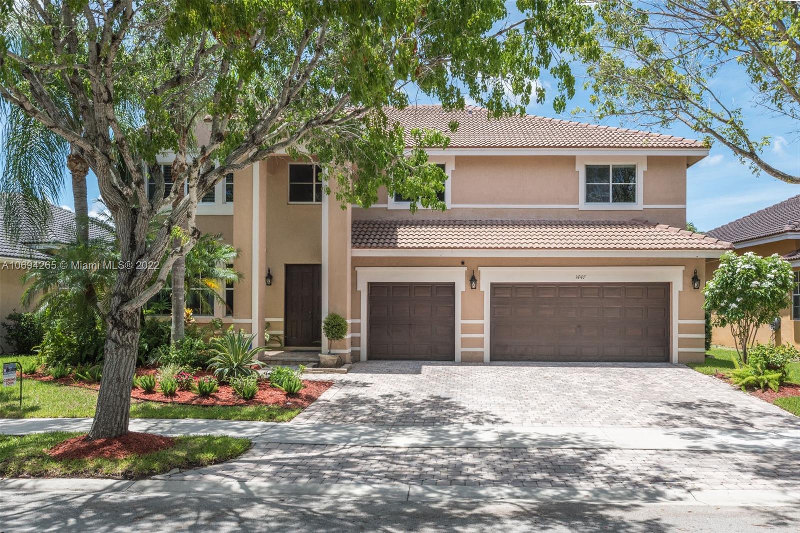 Spacious 2 story home on a quiet street with 5 spacious bedrooms plus a sitting room/den off master suite. White kitchen cabinets with Granite counter tops, Brand New White contemporary master bath with vessel tub, white quartz countertops, dual sinks and seamless shower. Freshly painted in today's neutral colors in living areas. Paver driveway leads to double door entry with private porch. Tiled floors first level with expansive family room with slider to private ficus hedged yard with covered patio. White Kitchen with granite countertops. Formal living and dining room. Loads of storage and closets. Shows beautiful! Walk to state of the art community pool and A+ schools.
