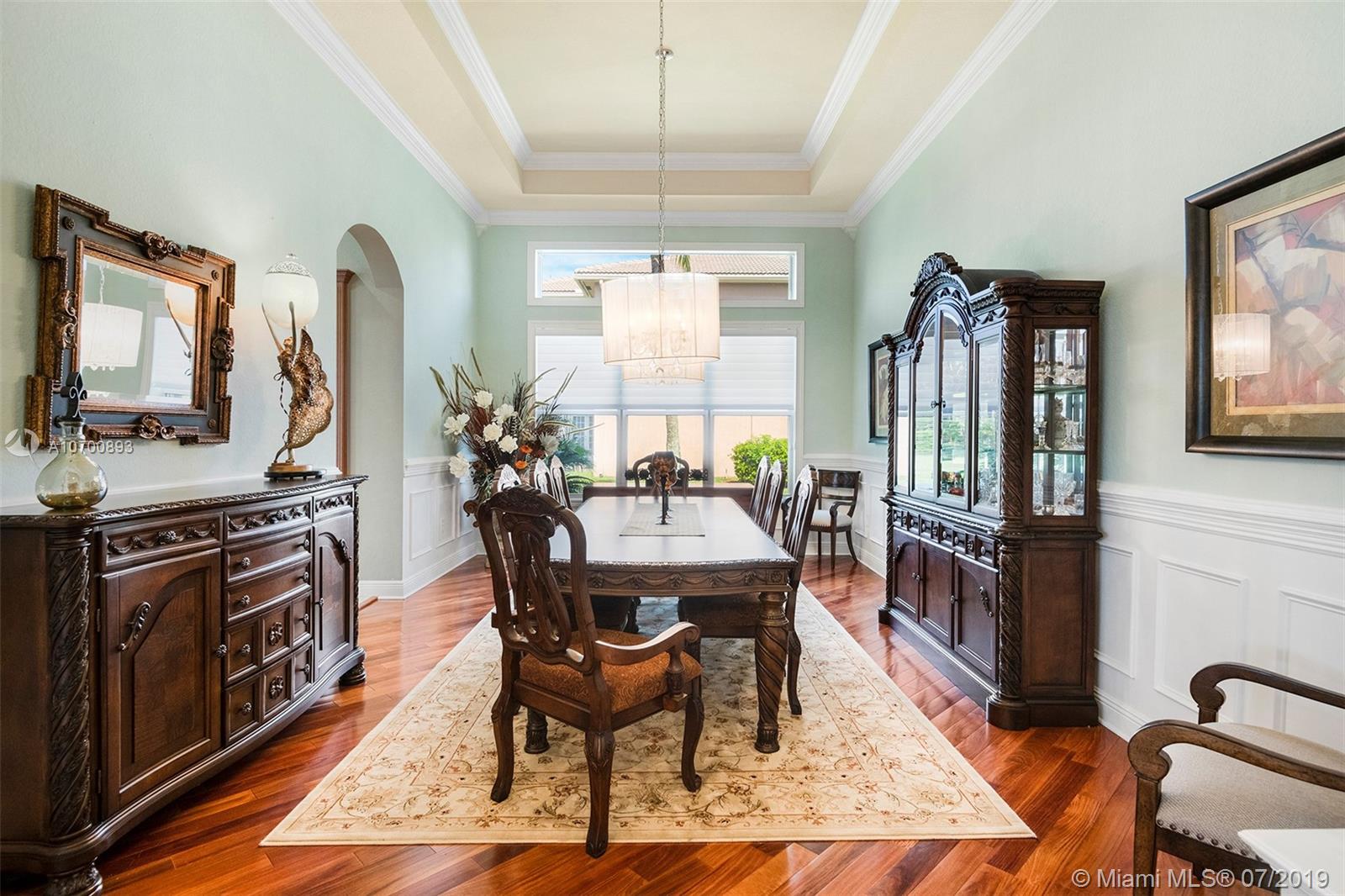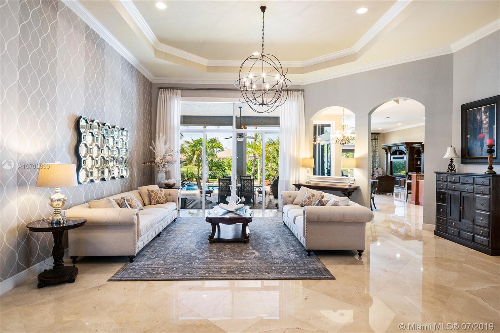 Stunning Residence Six (largest floor plan) in Davie's Riverstone community. 5 bedrooms (1 used as bonus/play room), separate office & separate man-cave/music/work-out room, 4.5 baths (his/hers mstr baths & closets), 3 car garage. Triple split plan. Desk area in foyer outside secondary bedrooms. Large indoor laundry room. Stunning polished marble floors in living areas, real wood floors in master bedroom & office. Tile & engineered wood in other bedrooms. Custom paint, wall finishes, drapes, plus plantation shutters, crown molding, throughout the home. Meticulously maintained & cared for. Enter into a backyard tropical oasis, with heated spa and waterfall. Relax in the shade of the patio or the trees and enjoy the tranquil lake views. Complete accordion hurricane shutter system.