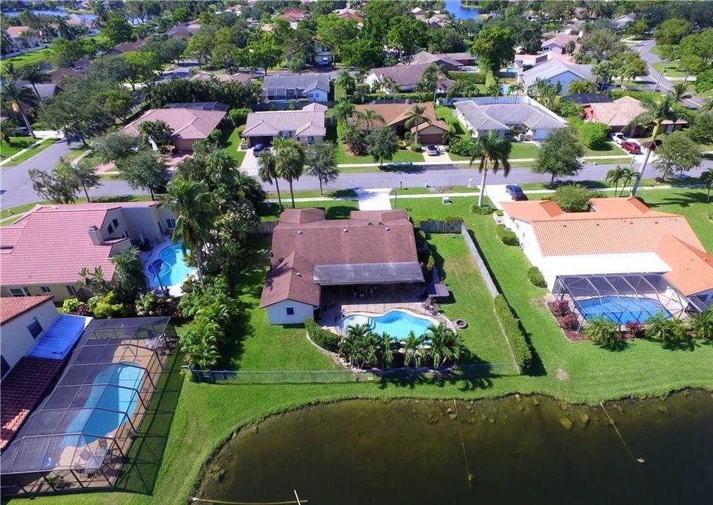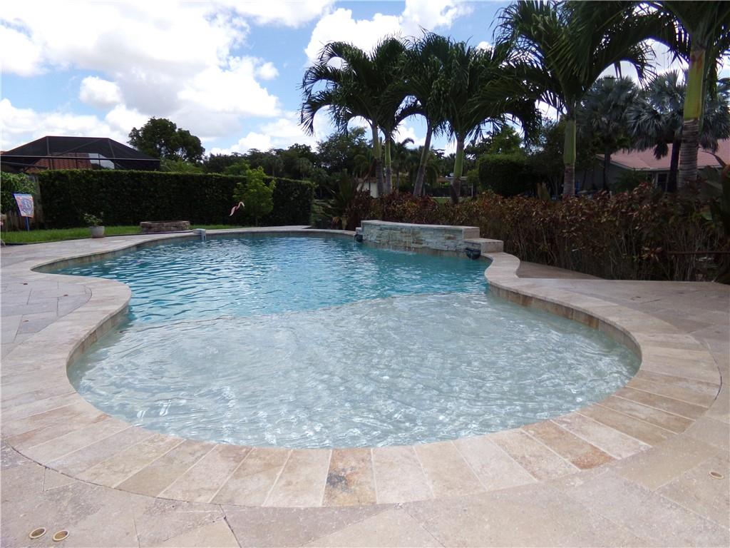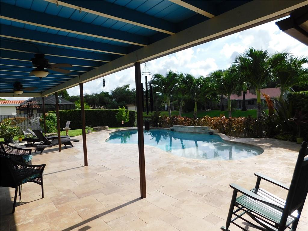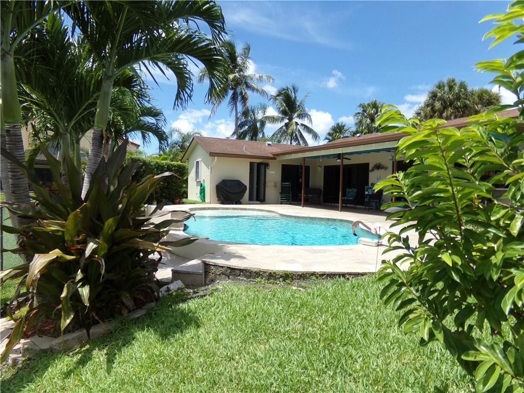 This is the move-in ready & substantially remodeled 4 bed 2 bath home that you've been waiting for. Located in the Exclusive Community of Jacaranda Lakes, this amazing home is situated on an Over-Sized Lot facing a Canal. Every interior detail of the home has been upgraded in recent years from the Top down, including Crown Molding, Custom Paint, Flooring, Custom Cabinetry, and High-end Counter Tops in the kitchen and both baths. All windows and all doors are Impact Rated. The Pool area is like a tropical resort, complete with its own Sun Shelf & Waterfall. Surrounded by beautiful Palm Trees and plenty of assorted Fruit Trees. There is even a Kids Playhouse (or Greenhouse) as well as a fully functional two-car garage with its own self-contained AC unit