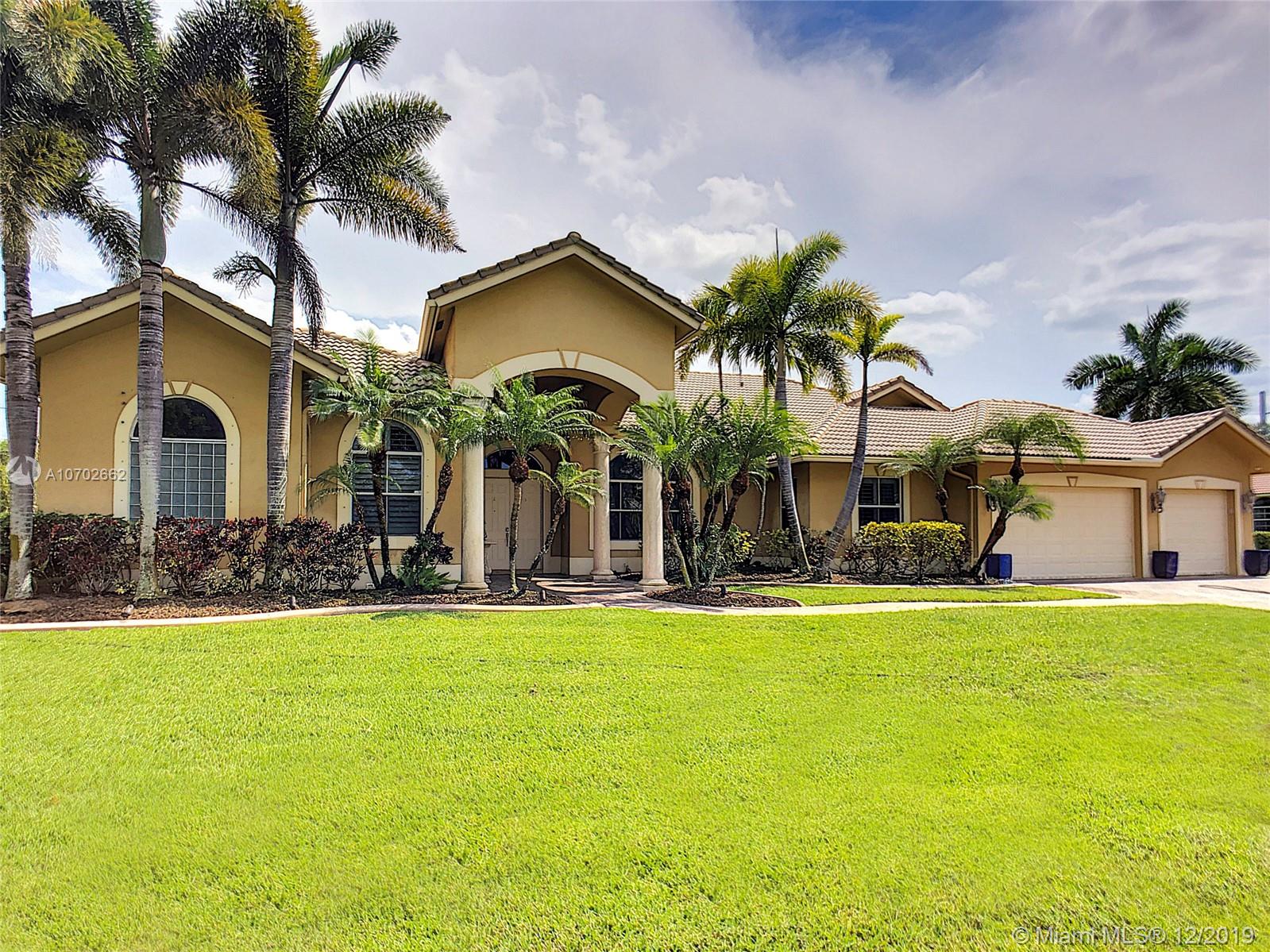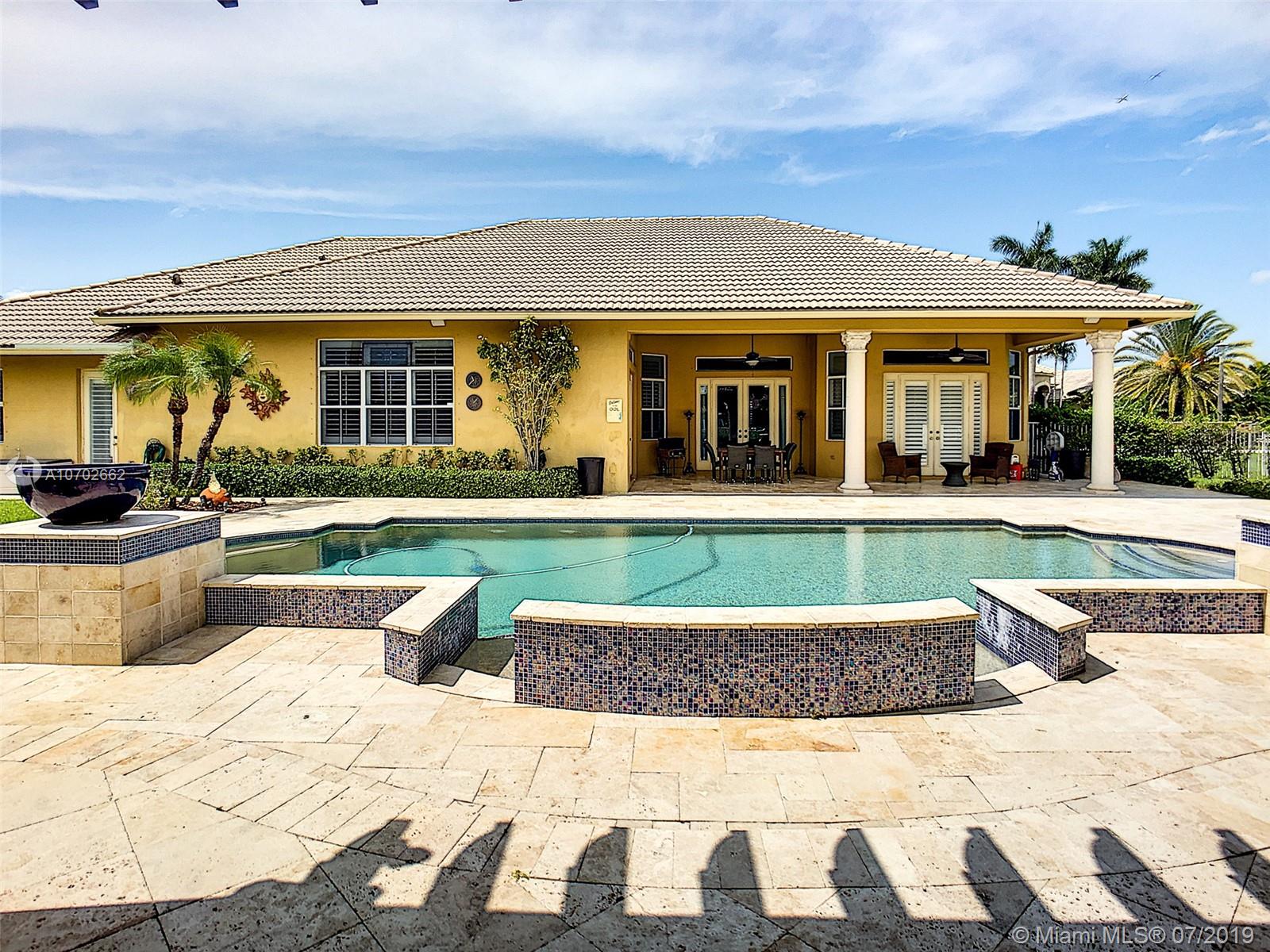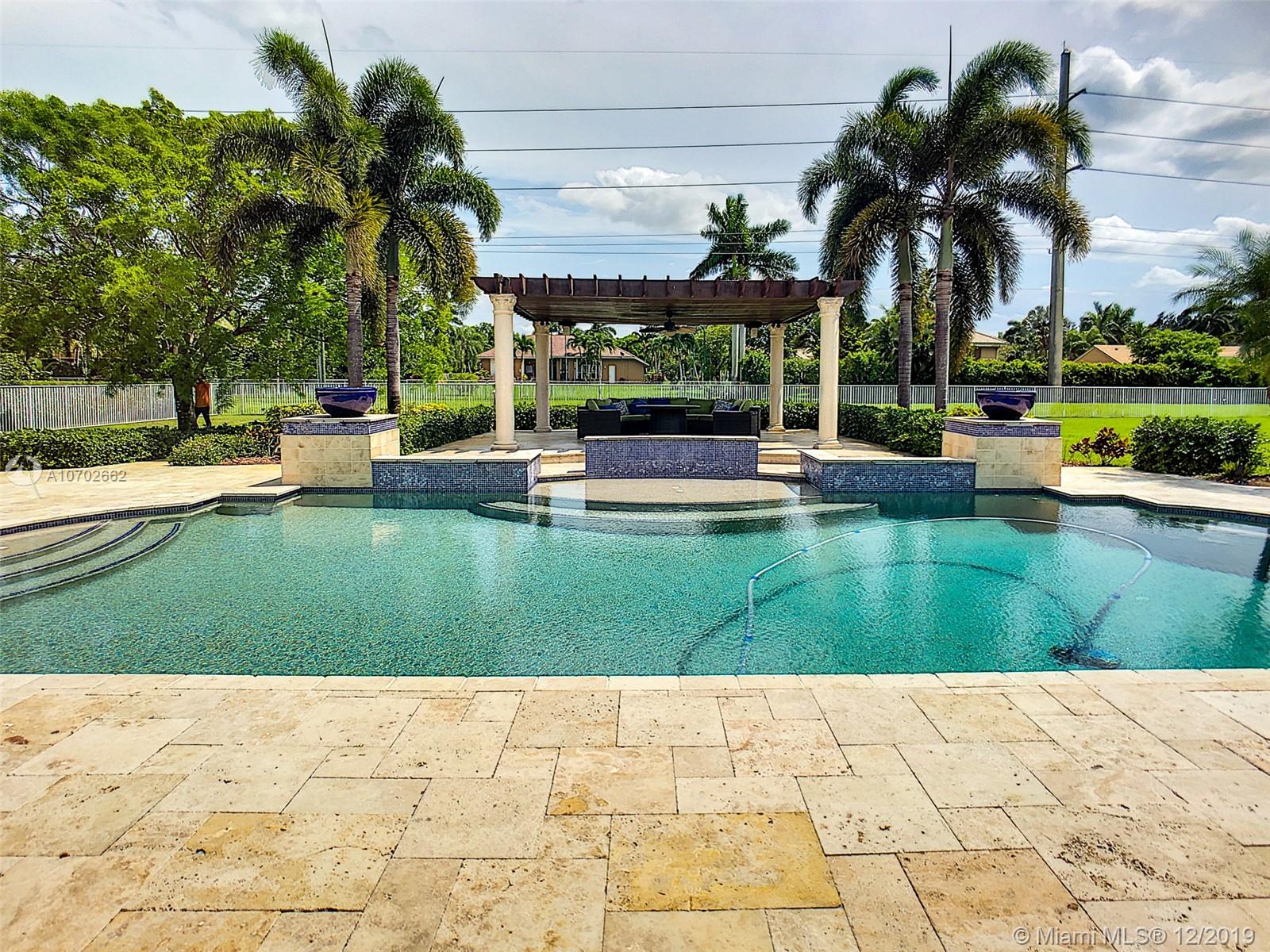 COME HOME TO YOUR OWN OASIS LOCATED IN EMERALD ISLES ESTATES IN DAVIE. THIS BEAUTIFULLY APPOINTED 5/3 ESTATE HOME IS LOCATED ON A BUILDER'S ACRE. MASTER BEDROOM HAS GORGEOUS EN-SUITE MASTER BEDROOM WITH 2 WALK-IN CLOSETS & LUXURIOUS MASTER BATHROOM WITH SOAKER TUB, TOP OF THE LINE BATHROOM FIXTURES AND DESIGNER WALL. MASTER HAS FRENCH DOORS THAT OPEN TO YOUR PRIVATE PARADISE INCLUDING A COVERED PATIO, CUSTOM HEATED SALT-WATER POOL WITH 4 WATERFALLS & FOUNTAIN, BASKETBALL COURT, GORGEOUS PERGOLA, STONE PAVERS AND LUSH TROPICAL LANDSCAPING GIVING A TRUE RESORT FEEL... PERFECT FOR ENTERTAINING AND FAMILY GATHERINGS.