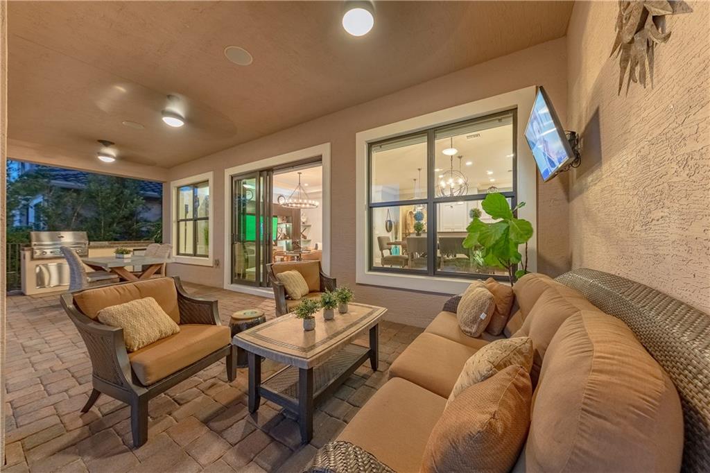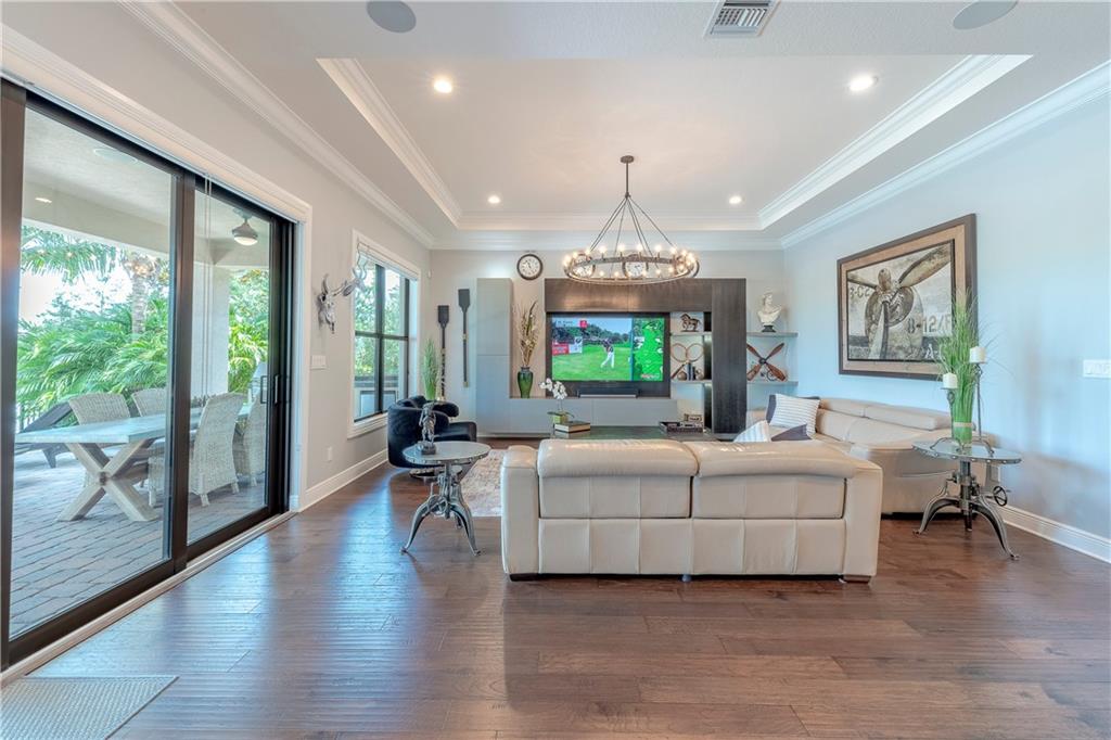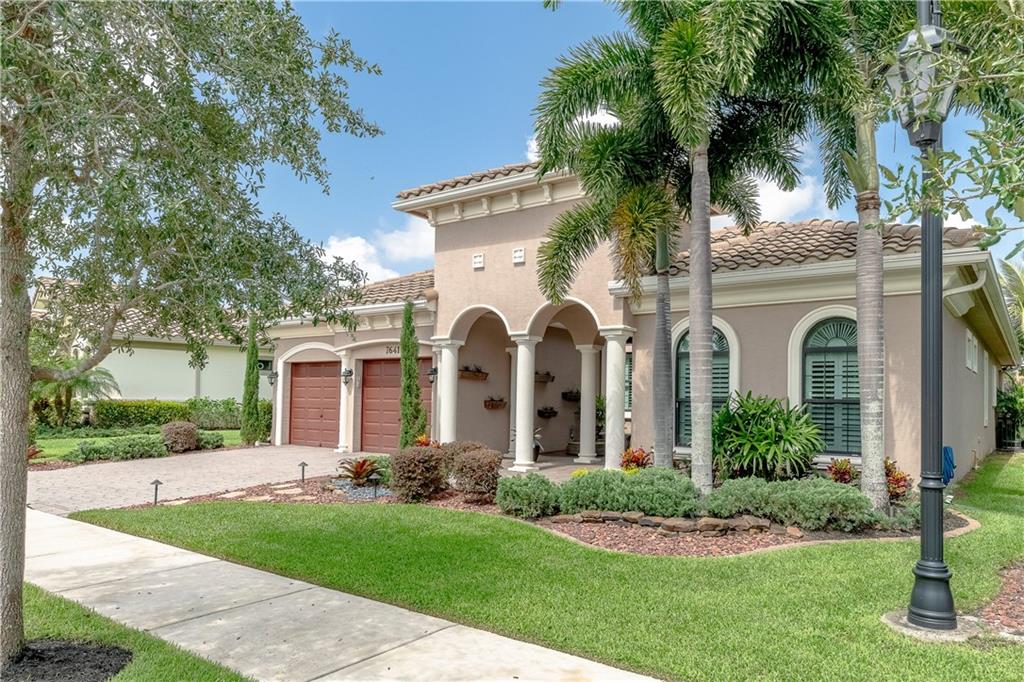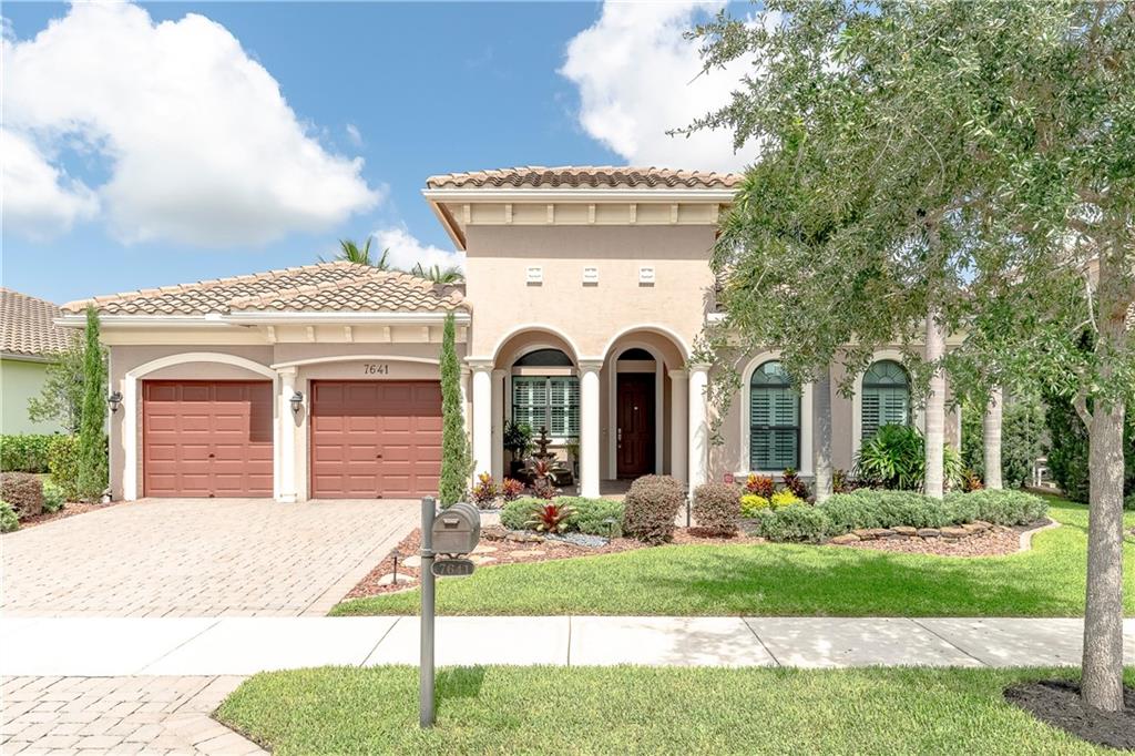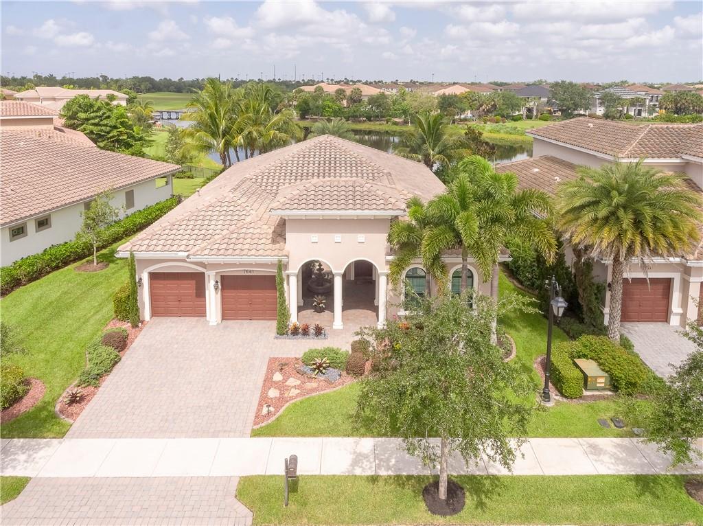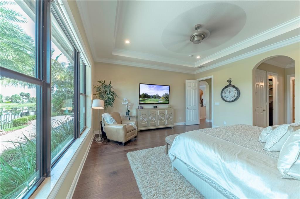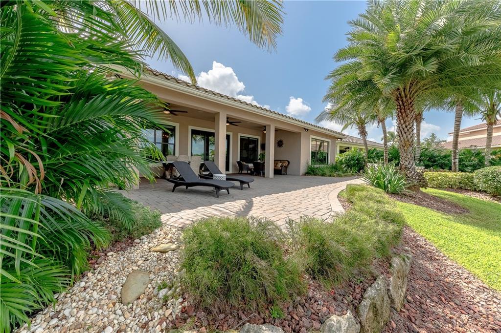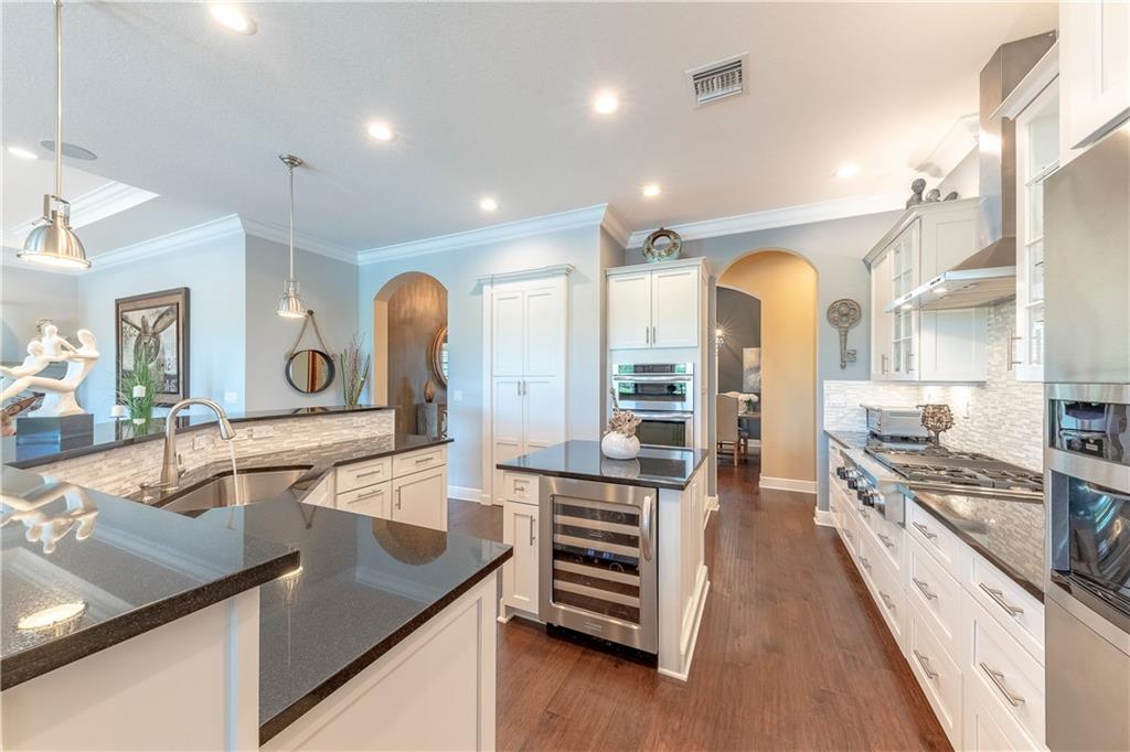 Beyond Beautiful! This 3 bedrooms, 3 bath home has it all. Fully upgraded modern kitchen to die for. Featuring Gas oven, wine refrig. ss appliances, nice size pantry, 42" wood cabinets, granite and more. The oversized master bedroom has built-in closets. Crown molding and wood floors throughout. Large patio with summer kitchen, upgraded landscape, fountain, overlooking the 18th fairway, and water. Exterior landscape lights, gutters, impact window and doors. This stunning home is move in ready. A must see