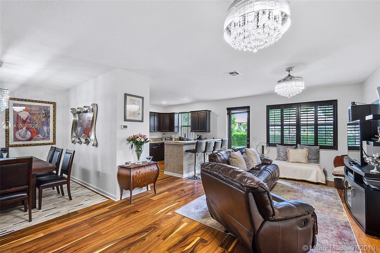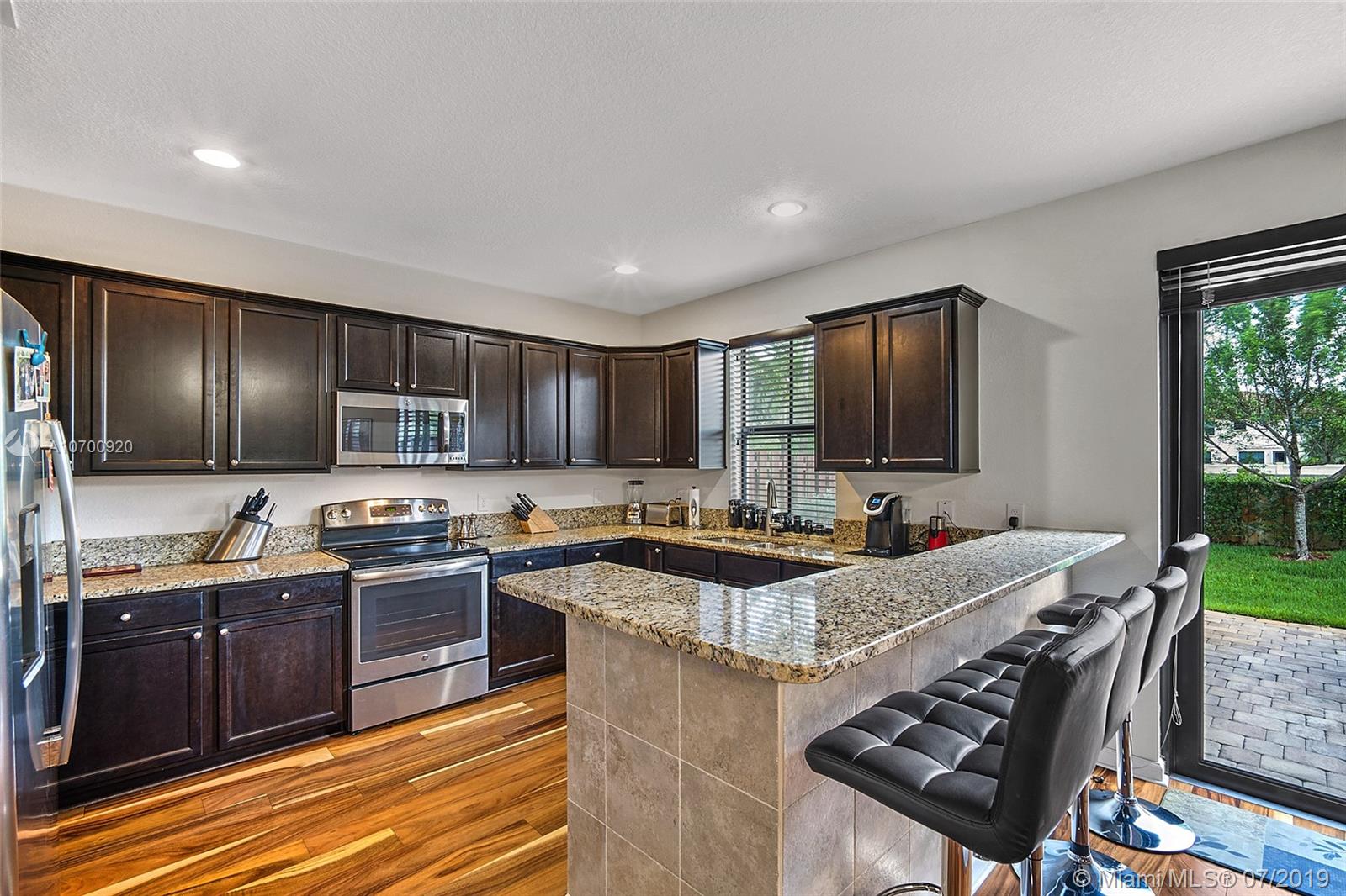 Beautiful and rarely available 2-Story corner unit townhouse located in the prestigious & gated community of Vaquero Trails in Davie. This home features a nice open floor plan, 3 Bedrooms, 2.5 Bathrooms, 2 Car Garage stunning wood floors throughout the downstairs & carpeting upstairs, custom granite countertops in kitchen, master bath & powder room, stainless steel appliances, designer lighting & ceiling fans, keyless garage door & front entry, high volume ceilings throughout, elfa custom closets, plantation shutters, washer & dryer upstairs, French door leading out to extended pavers patio with lots of green space. The community features a modern clubhouse with a swimming pool and is centrally located near excellent schools, Sawgrass Mills mall, great restaurants & MUCH more