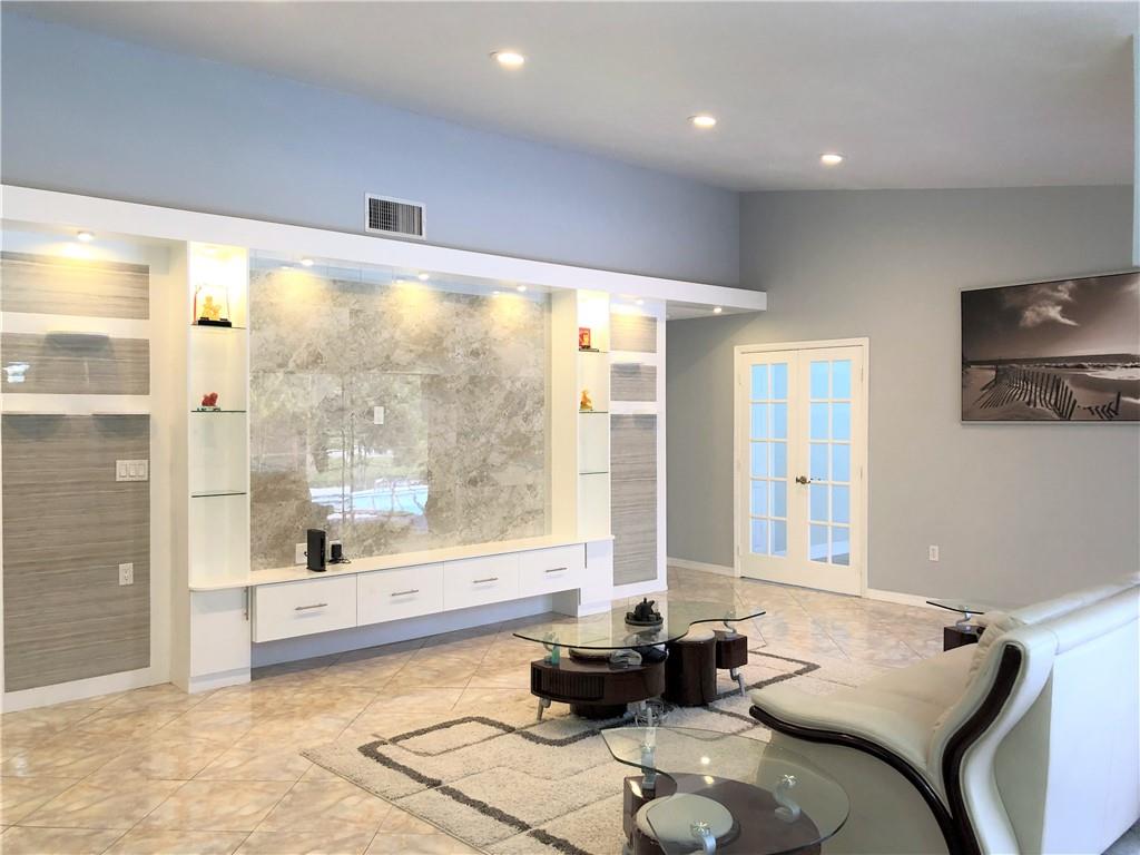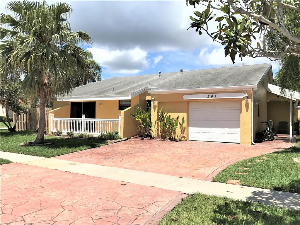 Motivated Seller! Beautiful 5Bed/3.5Bath in a quiet neighborhood w. rear lake & pool. Oversized corner lot w. new installed fence & fruit trees. Recent upgraded interior w. contemporary design includes high gloss cabinet, Quartz countertop, marble backsplash,undermount sink,SS appliances,decorative walls & built-in TV shelves. A Home theater by adding a curtain & a projector. Pass-thru window from kitchen to dining w. breakfast bar top. Jacuzzi Tub & separate shower in master. Additional guest suite. New laminate flooring in bedrooms. Stone pavers driveway for 4+ cars. No HOA. Low $285 annual mandatory membership of Bonaventure Club,which includes tennis, pool, gym, bowling, library, movie theater & social areas. Excellent assigned schools. Hurricane Shutters. A Highly Sought After Area!
