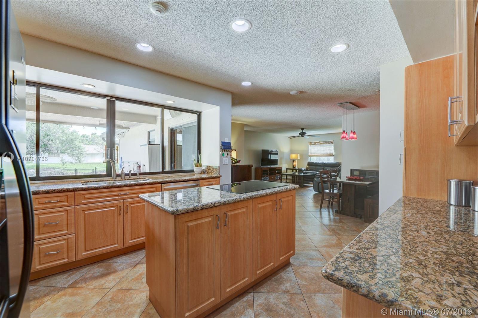 Spacious home in Windward Isle in west Sunrise features 3 bedrooms (split floor plan), 2 completely remodeled bathrooms, 2-car garage, new roof (2018) with transferable warranty, and a pool and spa overlooking a tranquil water view. Additional features include updated kitchen with granite countertops and island cook-top open to the family room and overlooking the patio and pool area, separate living and dining rooms, tile and wood flooring throughout, partial impact windows, partial shutters, fully fenced yard, spacious covered patio area for outdoor entertaining, newly painted exterior and interior, new outdoor landscaping and landscape lighting, and no HOA. Conveniently located just minutes from Sawgrass Mills Mall, major expressways, Sunrise Athletic Complex and Welleby Park.