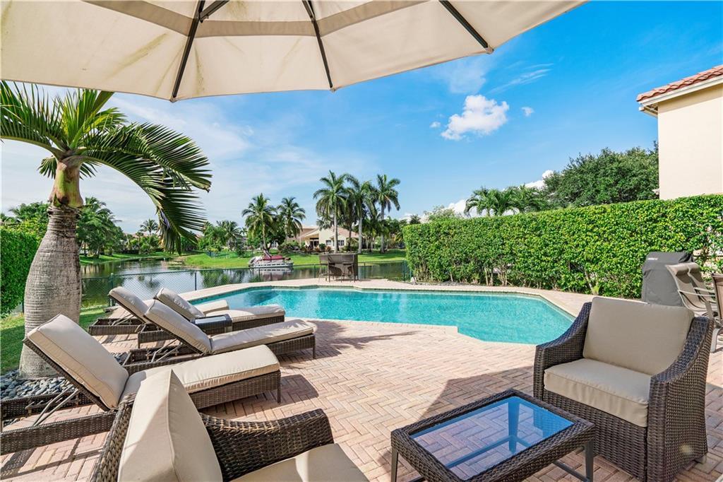 LOOK NO FURTHER!!! Magnificent 4BR/2.5 waterfront pool home. Immaculate condition. Spacious center island upgraded new kitchen with quartz counters, SS appliances and wine cooler. Luxurious flooring and Crown molding throughout with new interior light fixtures. Large Walk-in Master closet. Built-ins in all closets. All bedrooms upstairs. Shows like a model. Large patio overlooking the beautiful pool and lake. Inside large laundry room area. Roof is 2006 and complete with hurricane panels. Private, gated community with great schools. DO NOT MISS THIS ONE!
