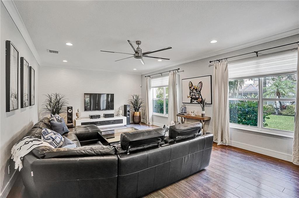 A SENSATIONAL MIX OF CONTEMPORARY ELEMENTS BLEND SEAMLESSLY INTO THIS PROFESSIONALLY DESIGNED 5BD/3BA/3 CAR GARAGE GRAND RESERVE HOME. The designer's choice interior infuses tasteful textures & custom comforts. Modern glamour displays sophistication awash in hues of white & gray. A premium was placed on high-quality materials used. The open kitchen showcases white cabinets, an oversized island, quartz tops & SS appliances bringing a modern elegance to the streamlined culinary space. Tranquility prevails in the master & its spa-like bath w/notable design details such as framless shower & stunning freeform tub. Other feat. incld: 1st floor bed/bath, laminate floors, accordion shutters, new Carrier A/C’s, new water heater, generator, & fully fenced landscaped yard. 24hr Guard Gated Community!