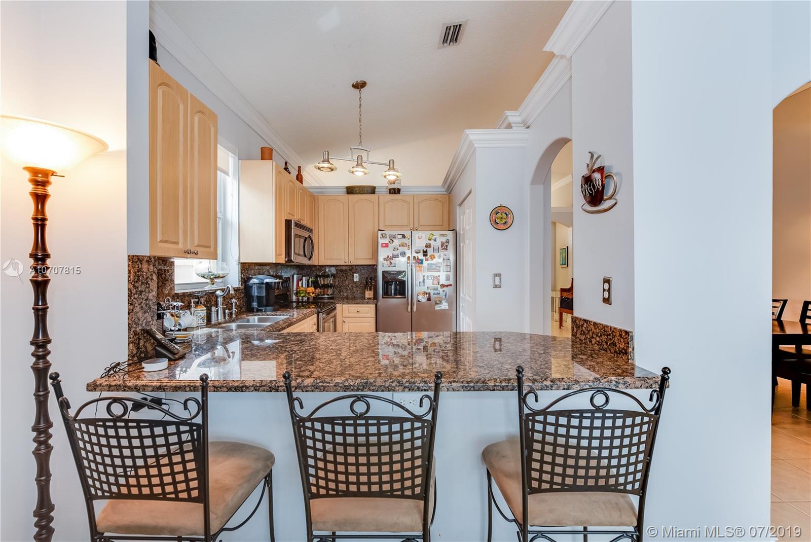 Beautiful 3/2 single family home one story located at Vizcaya, Camelot Subdivision. The Community is Vizcaya with a security entrance to the Subdivision. The house has upgrades that you will love :Crown moldings, roller shades for the windows, and black out for the rooms, granite kitchen,with all new appliances, gorgeous patio with pavers that you will enjoy day or night. PLUS!!! You have access to the Vizcaya Park with amenities , soccer, Basketball court, Community Center etc.