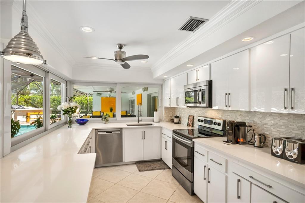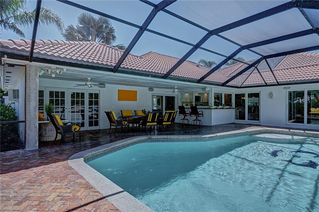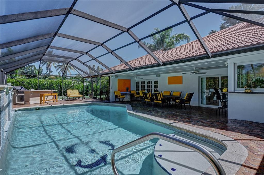 PRICE REDUCED! Magnificent Coral Ridge home on extra large 11,286 sf lot! Completely renovated kitchen & bar area w/ new appliances. Meticulously maintained 4 bedroom split, 3 bath pool home. Beautiful Salt Water solar HEATED Pool w/ custom water feature, summer kitchen, covered patio area & screened enclosure. Light, open & modern living & entertaining areas throughout. Huge master suite & bath w/ plenty of closet space. New office space w/ built in's. Tile & wood flooring, recessed lighting, stacked stone accents, crown moldings, wired sound system & much more. No detail overlooked! Freshly painted & landscaped, impact windows/doors, fenced yard, storage sheds, putting green, security systems, two car garage w/ electric vehicle charging. Recent upgrades and new landscaping.