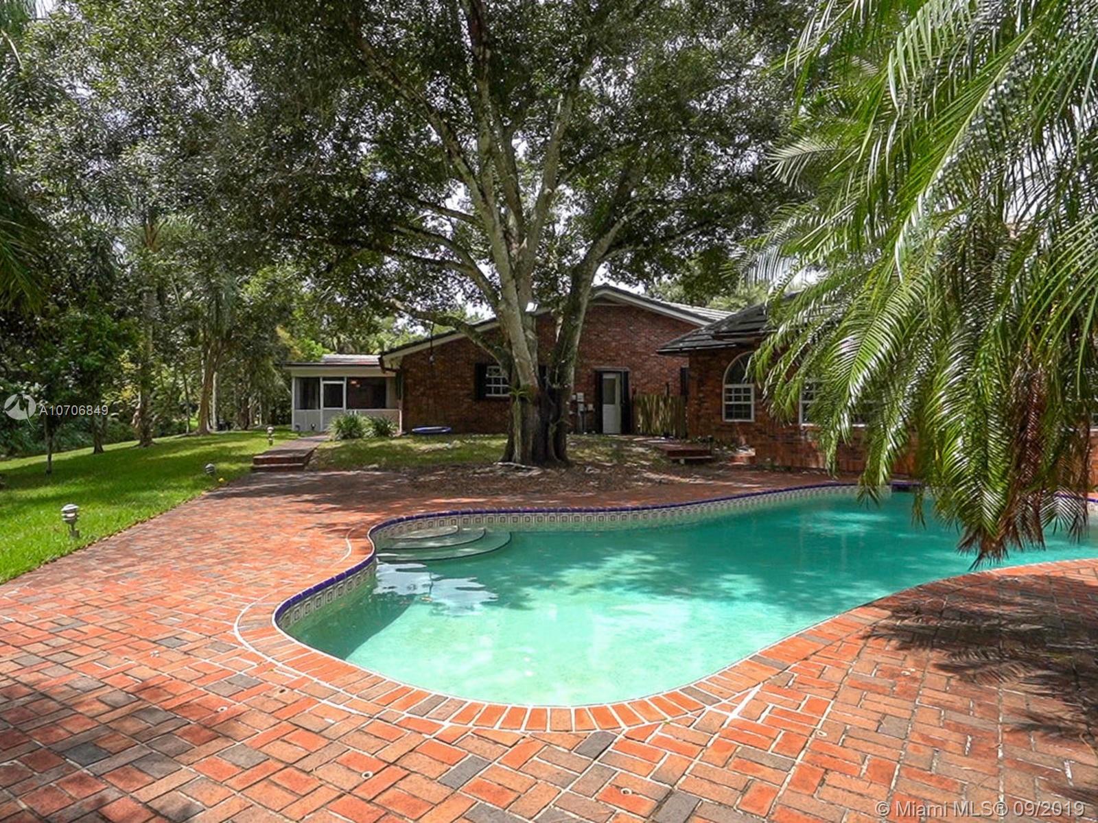Contemporary brick home, 5 bed,3.5 bath, office, oversize 3-car garage, triple-split floor plan, open concept floor plan located in Plantation Acres. New modern double island, soft gray & white kitchen w/ stainless steel appliances, cook-top, dual sinks & double wall ovens. 36" white porcelain floors in living room, dining room, kitchen & family room, hardwood flooring throughout rest of home. Remodeled bathrooms in soft white & grey tones, and sauna. Warm up your gatherings with a wood burning fireplace. $60K full-house generator, IMPACT windows in front, & accordions in back. Perfect for entertaining with a screened porch, over-sized patio, 16x38 heated pool, and Summer kitchen with bbq area. 1 bedroom w/ separate entrance. New roof 2011, 3 of 4 AC's new, interior freshly painted.
